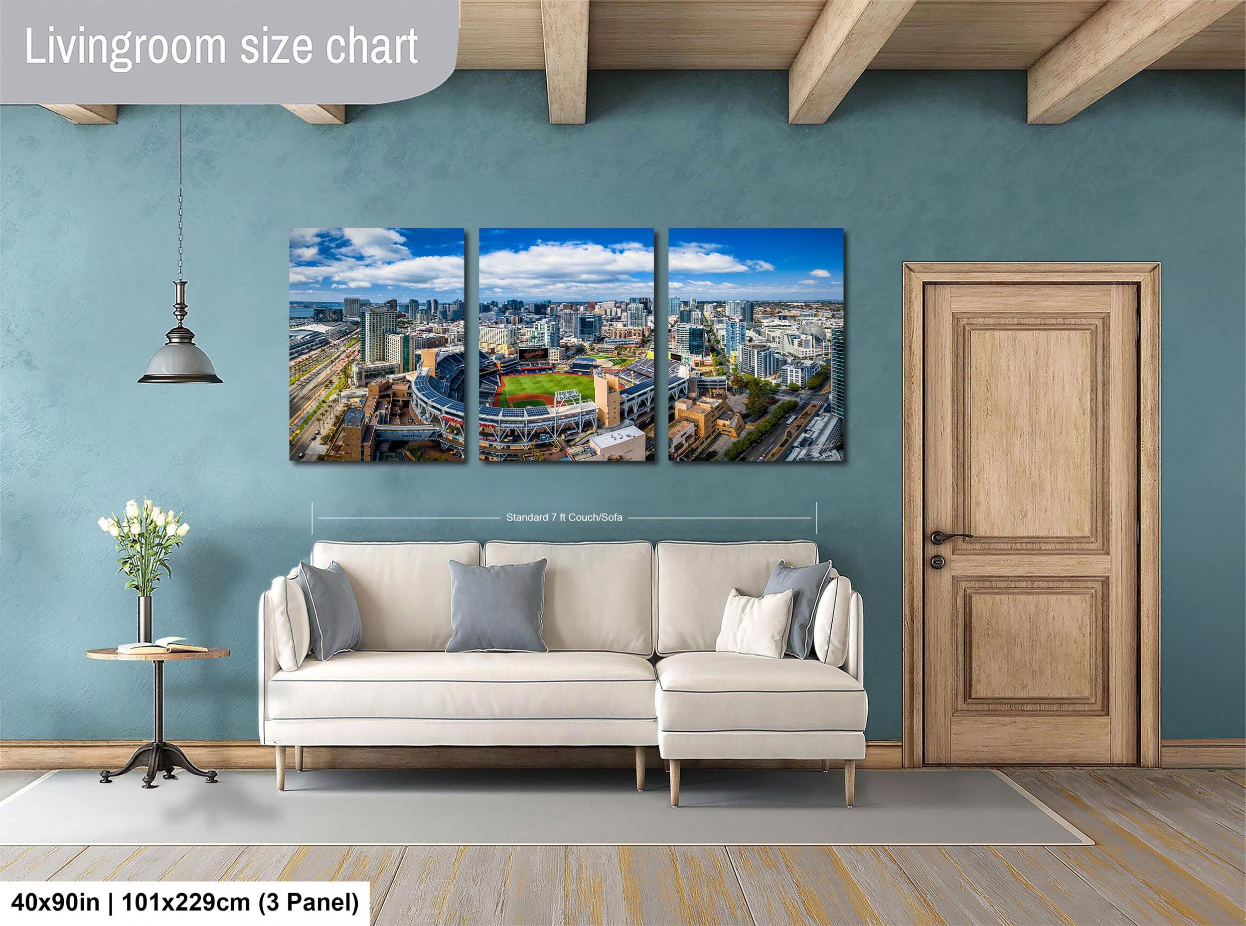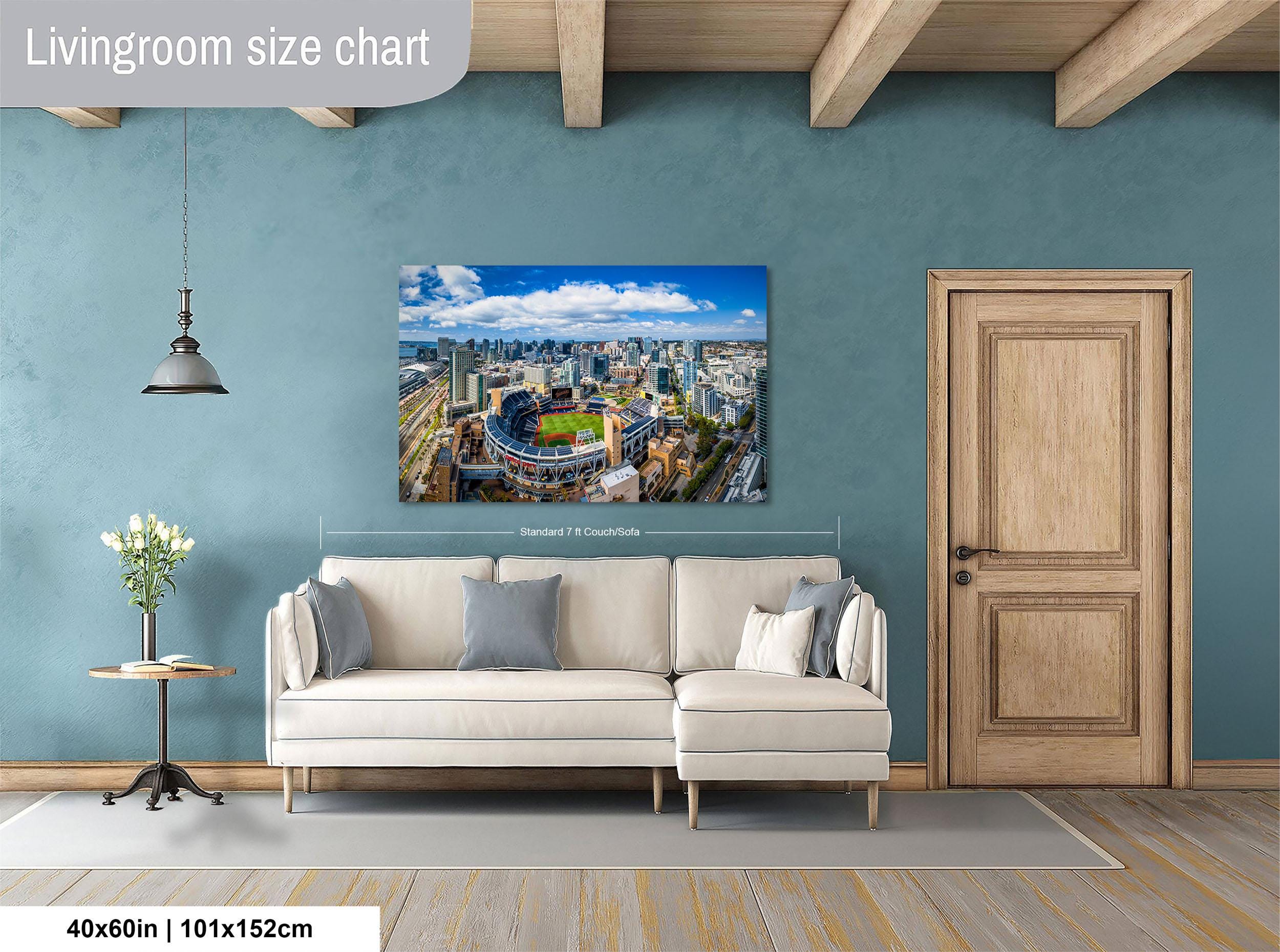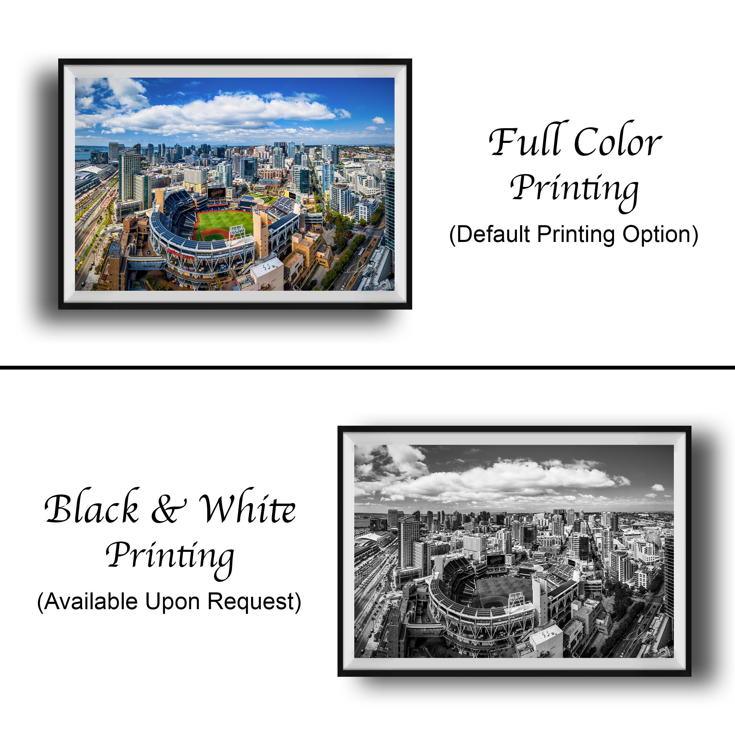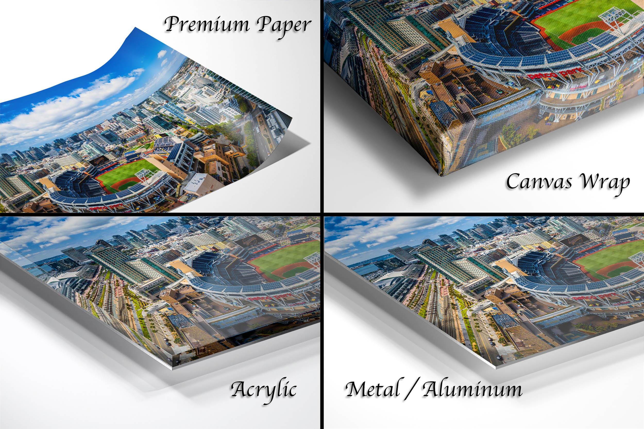 Crafted with precision and passion, this fine art print brings together elements of Padres baseball art and military base view photography, making it a perfect addition for fans and collectors alike. The image was captured via drone, showcasing a unique San Diego drone perspective that highlights the city's vibrant skyline photography.