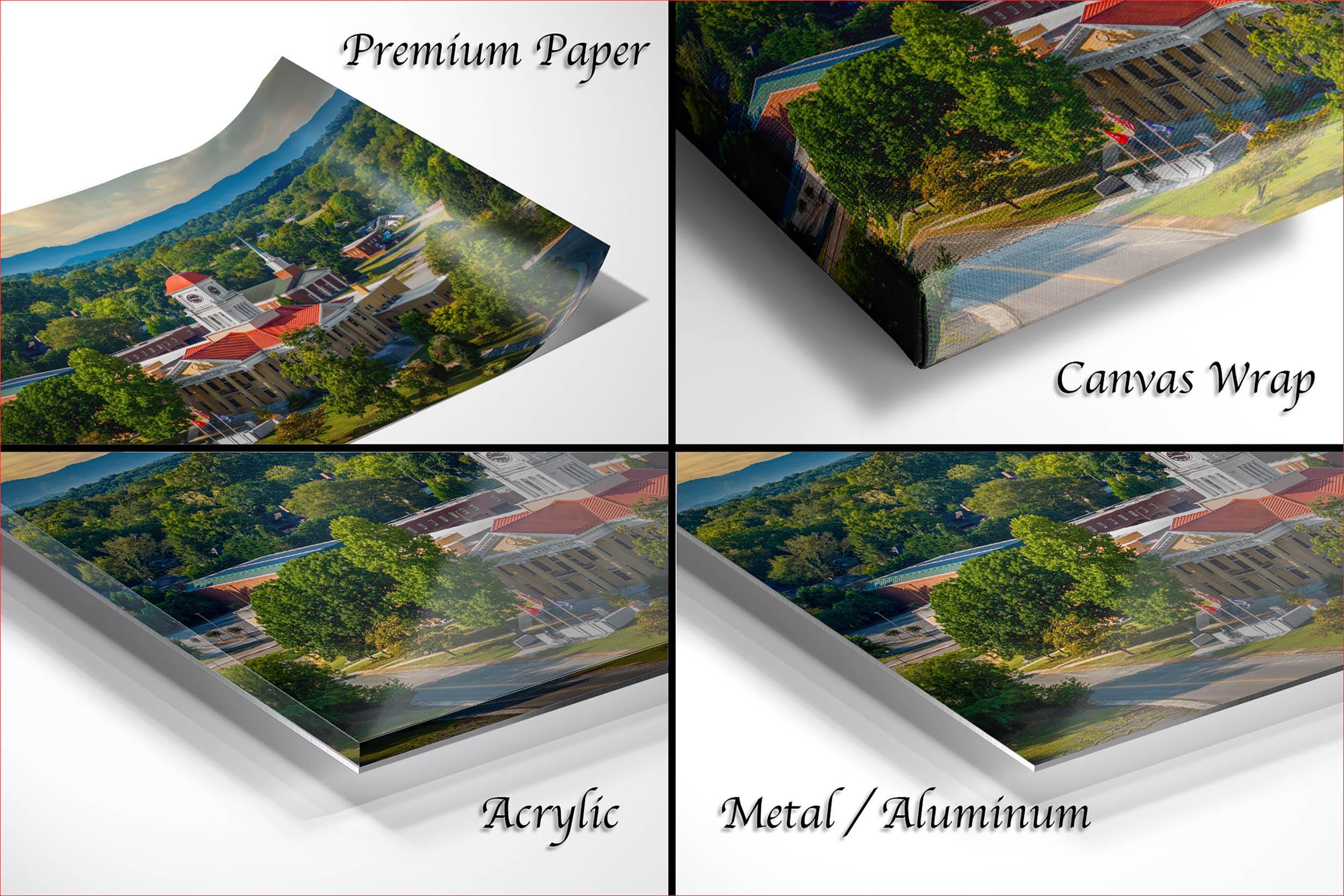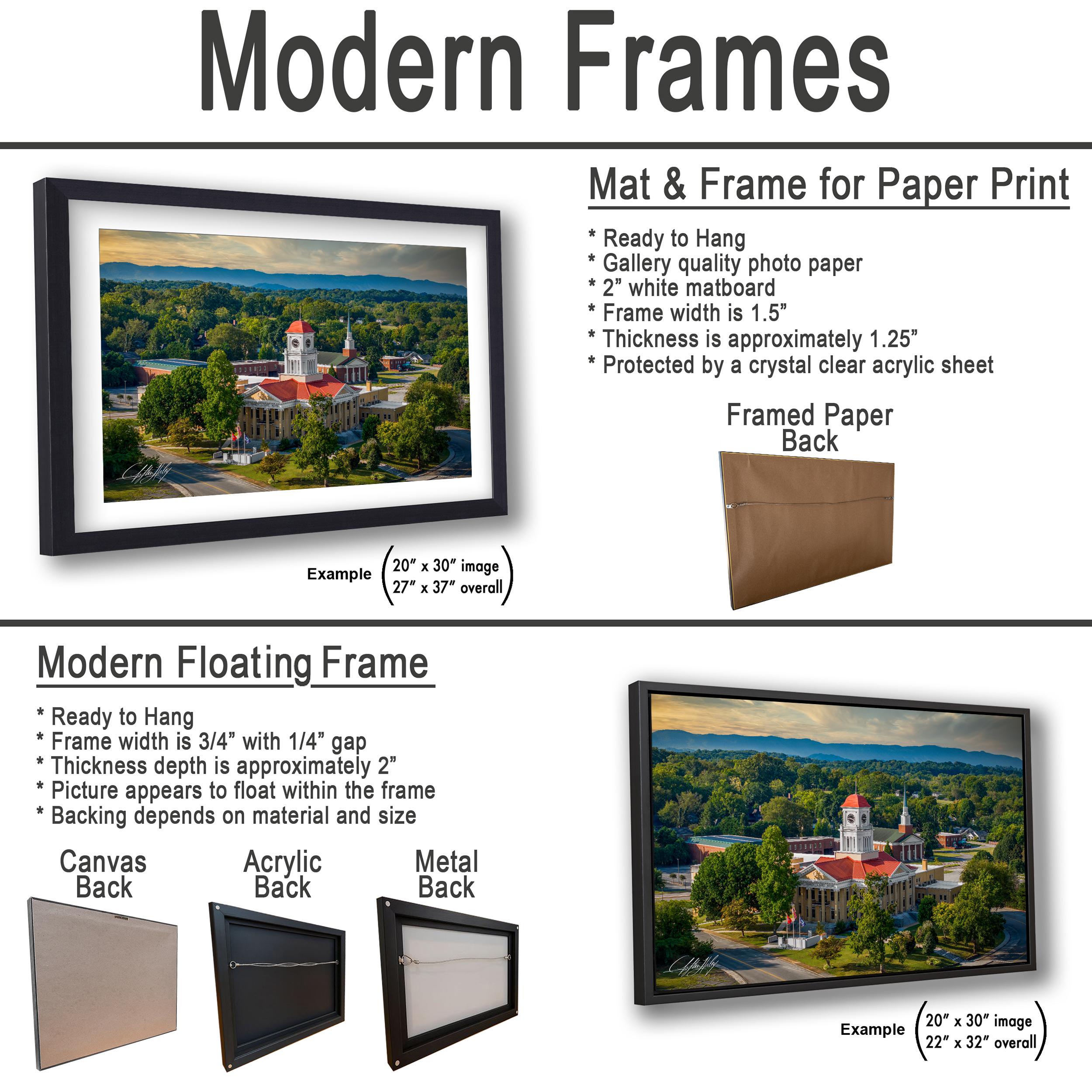 1. Framed paper prints, acrylics, and aluminum/metal prints include a 2" white mat border. 2. Canvas prints are flush mounted without a mat border. 3. We do not offer returns due to the made-to-order nature of each image; however, damaged or problematic items will be exchanged or replaced promptly.