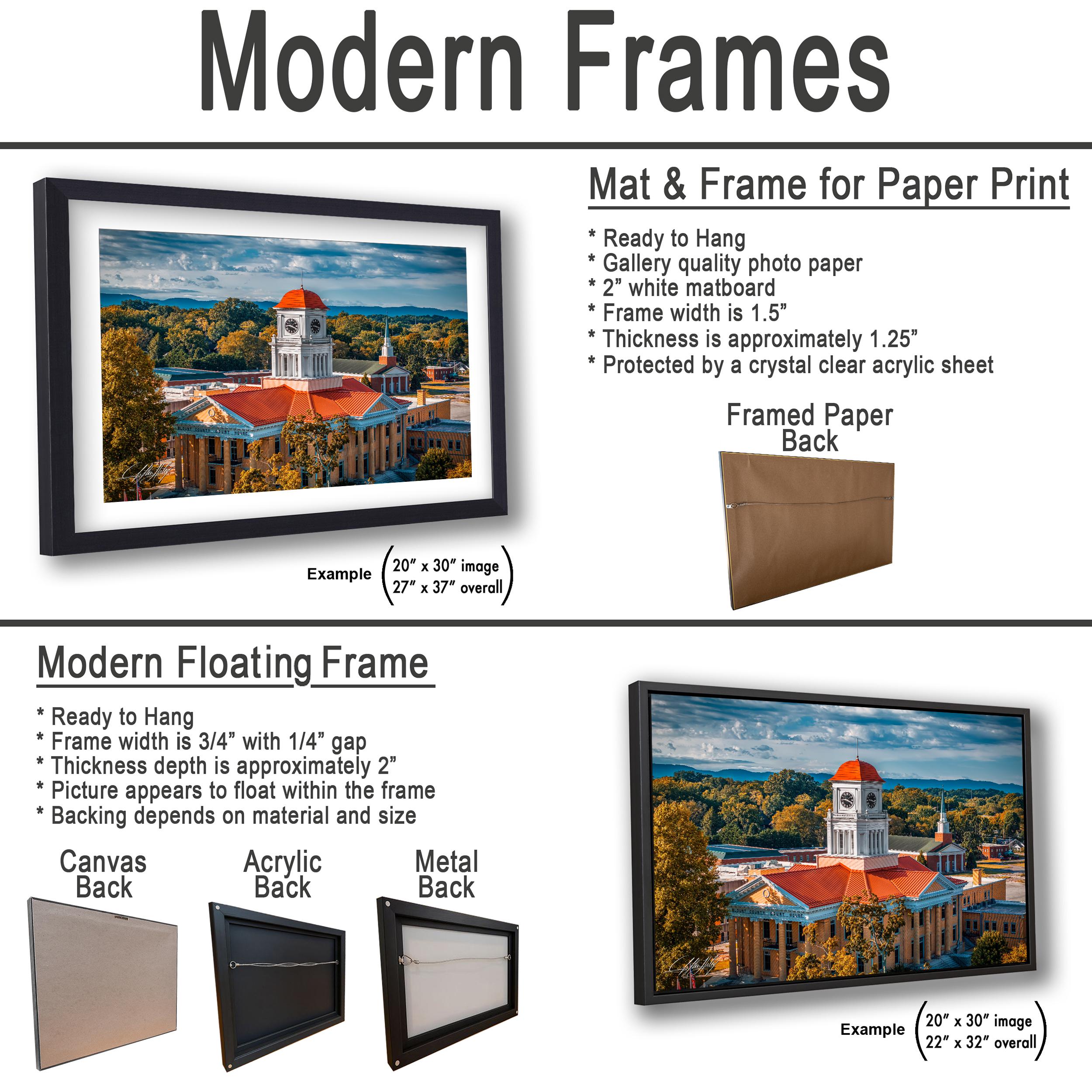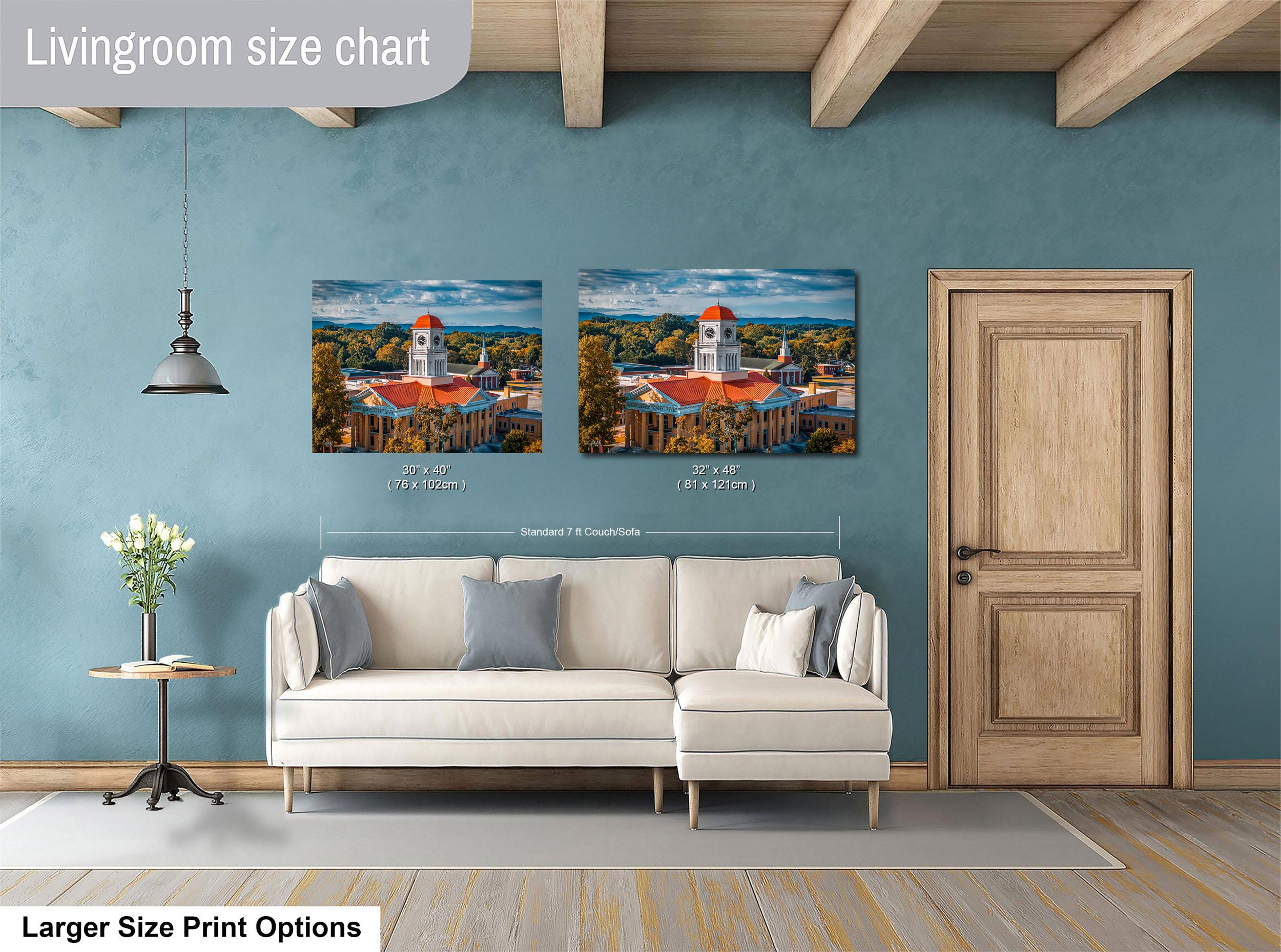 - Choose from framed paper prints, acrylics, and aluminum/metal prints featuring a 2" white mat border - Canvas prints are flush mounted with no mat border - Perfect as an outdoor wall hanging or an indoor autumn wall decor accent - A thoughtful Maryville town gift or a unique memory gift for those who cherish Tennessee Vols history
