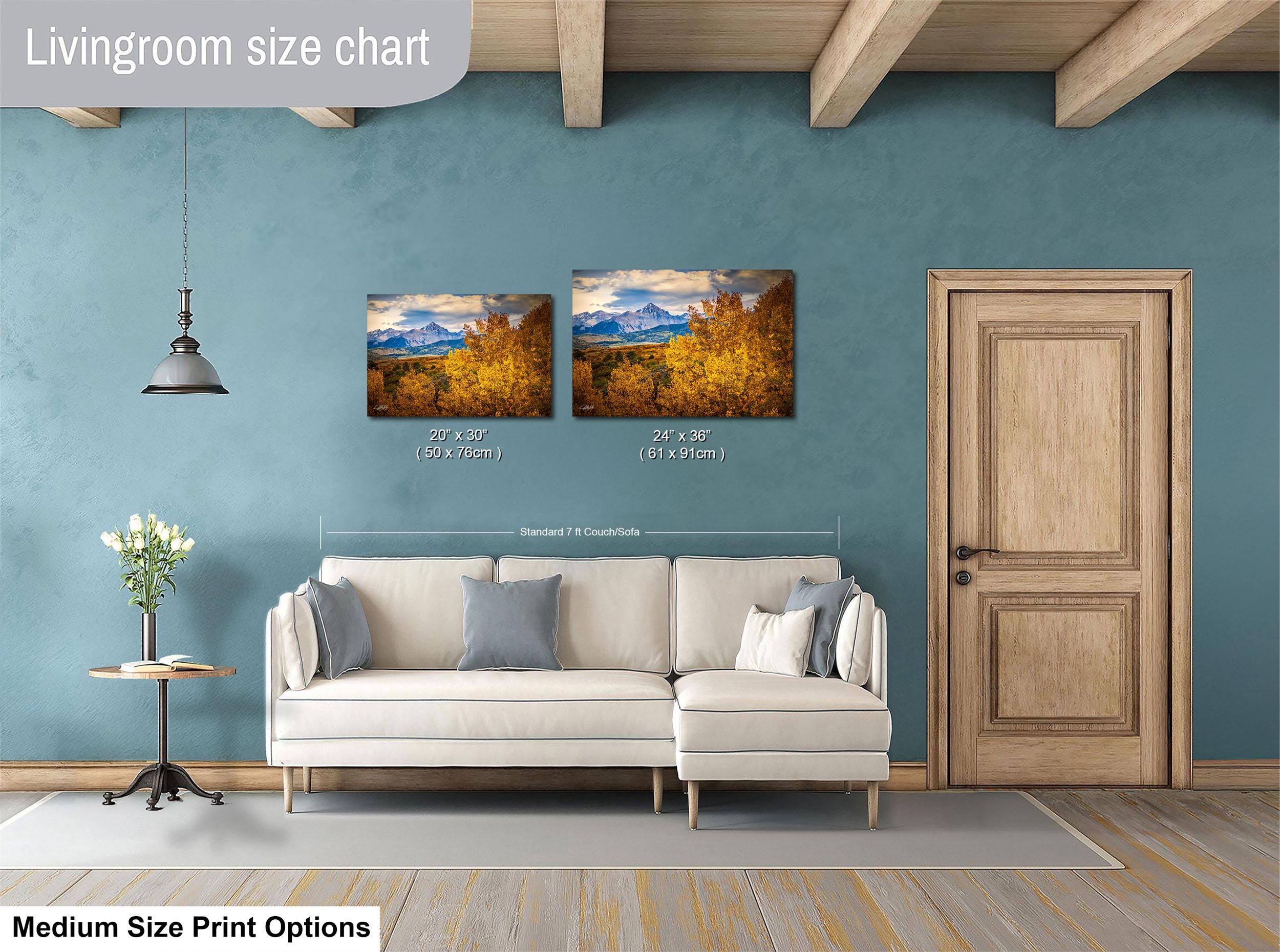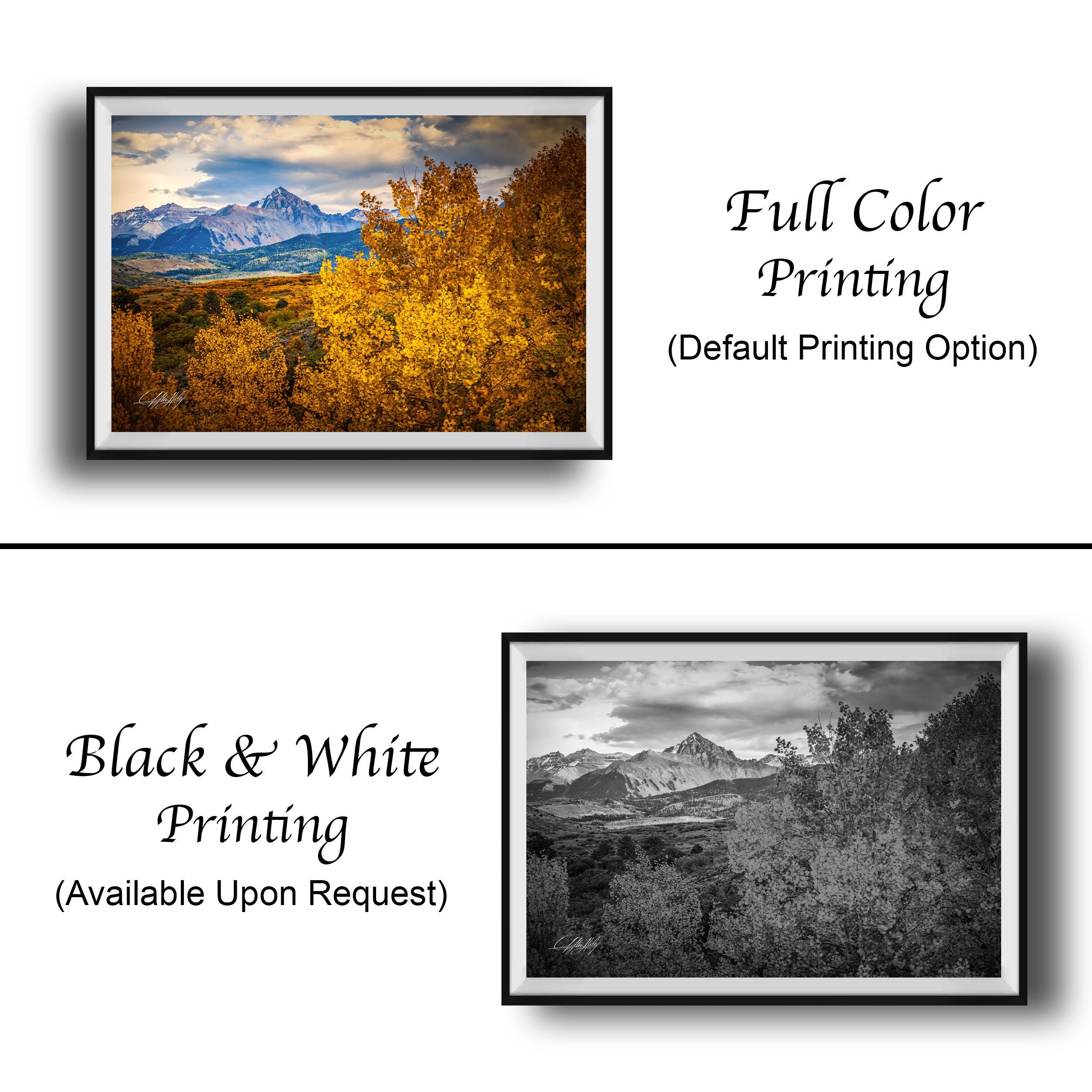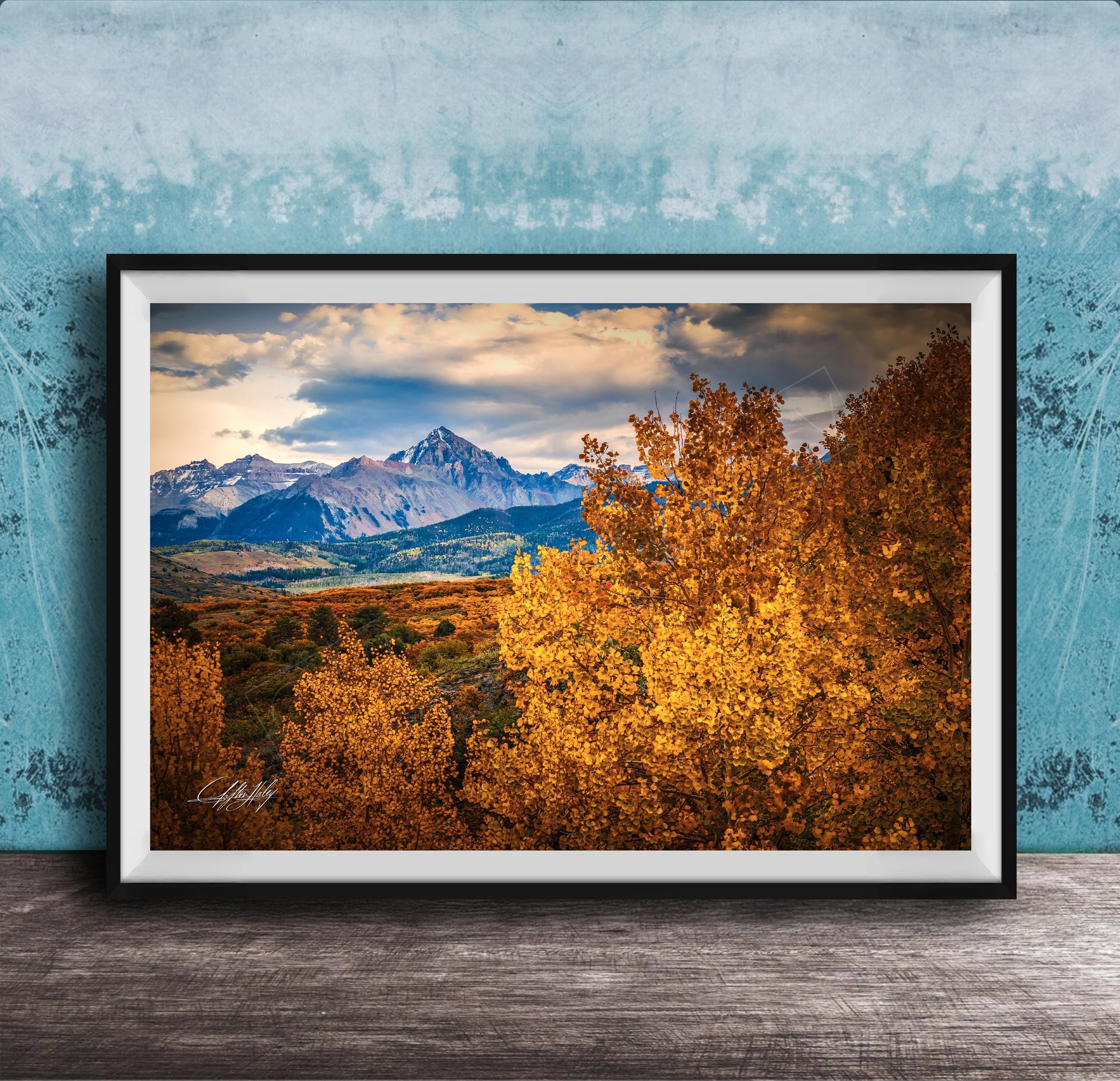 - ✅ Made-to-order fine art print featuring a signed original image by the artist - ✅ Available in framed paper prints, acrylics, aluminum/metal prints with a 2" white mat border or canvas prints with flush mounting - ✅ Dimensions and material options customizable to fit your decor needs - ✅ Captures vivid autumn colors and detailed textures of Aspen tree leaves and Colorado’s rugged landscape