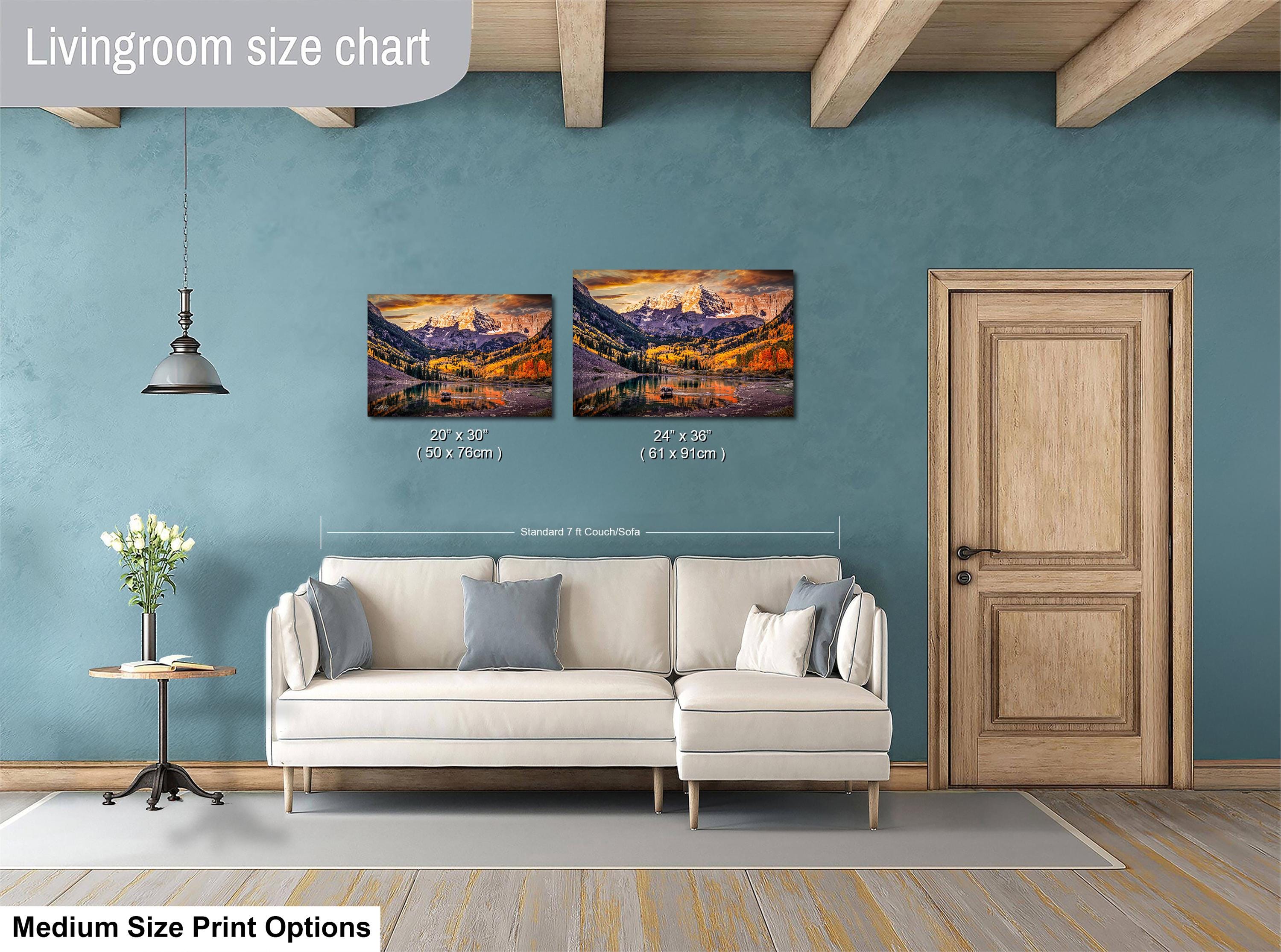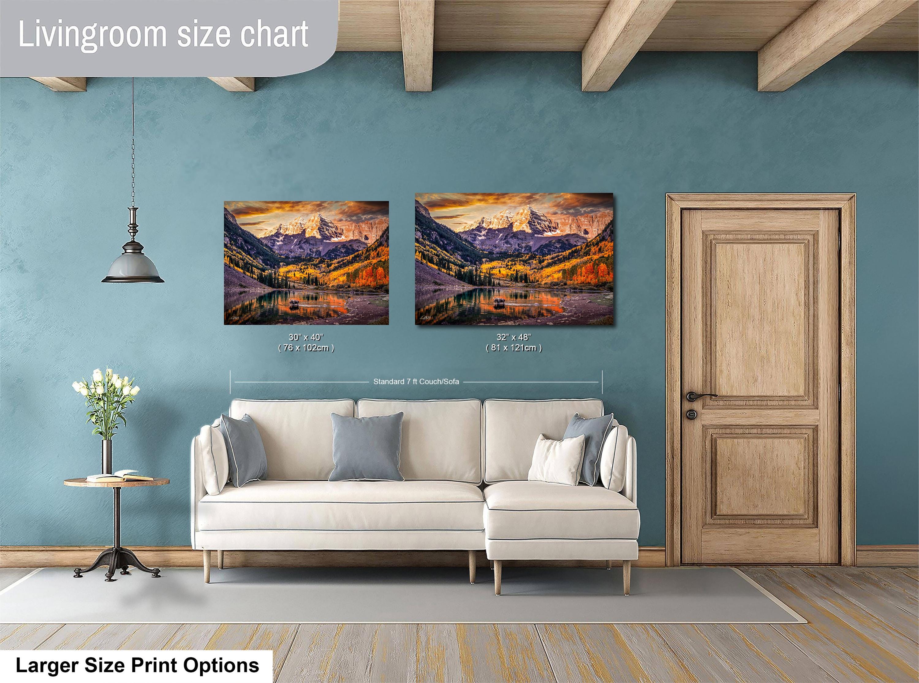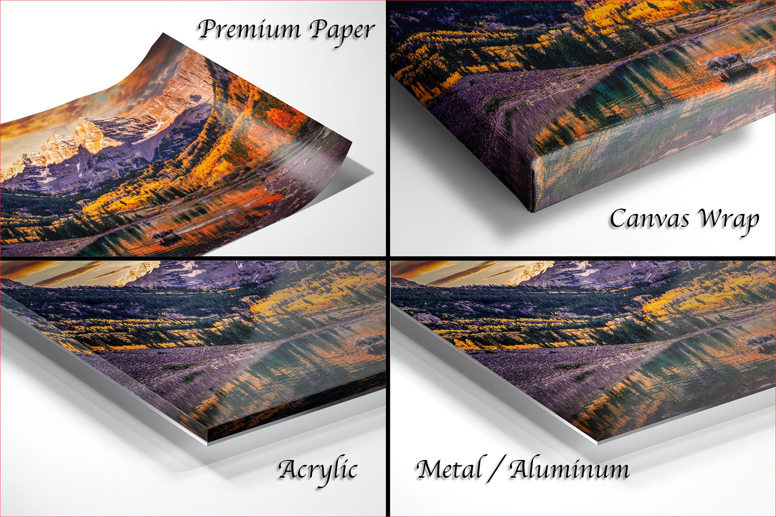Printed on high-quality canvas, this mountain wall art brings the serene colorado landscape right into your home. The artwork features rich autumn colors art that highlights the natural splendor of the Maroon Bells-Snowmass Wilderness, making it an ideal piece for nature lovers and collectors alike.