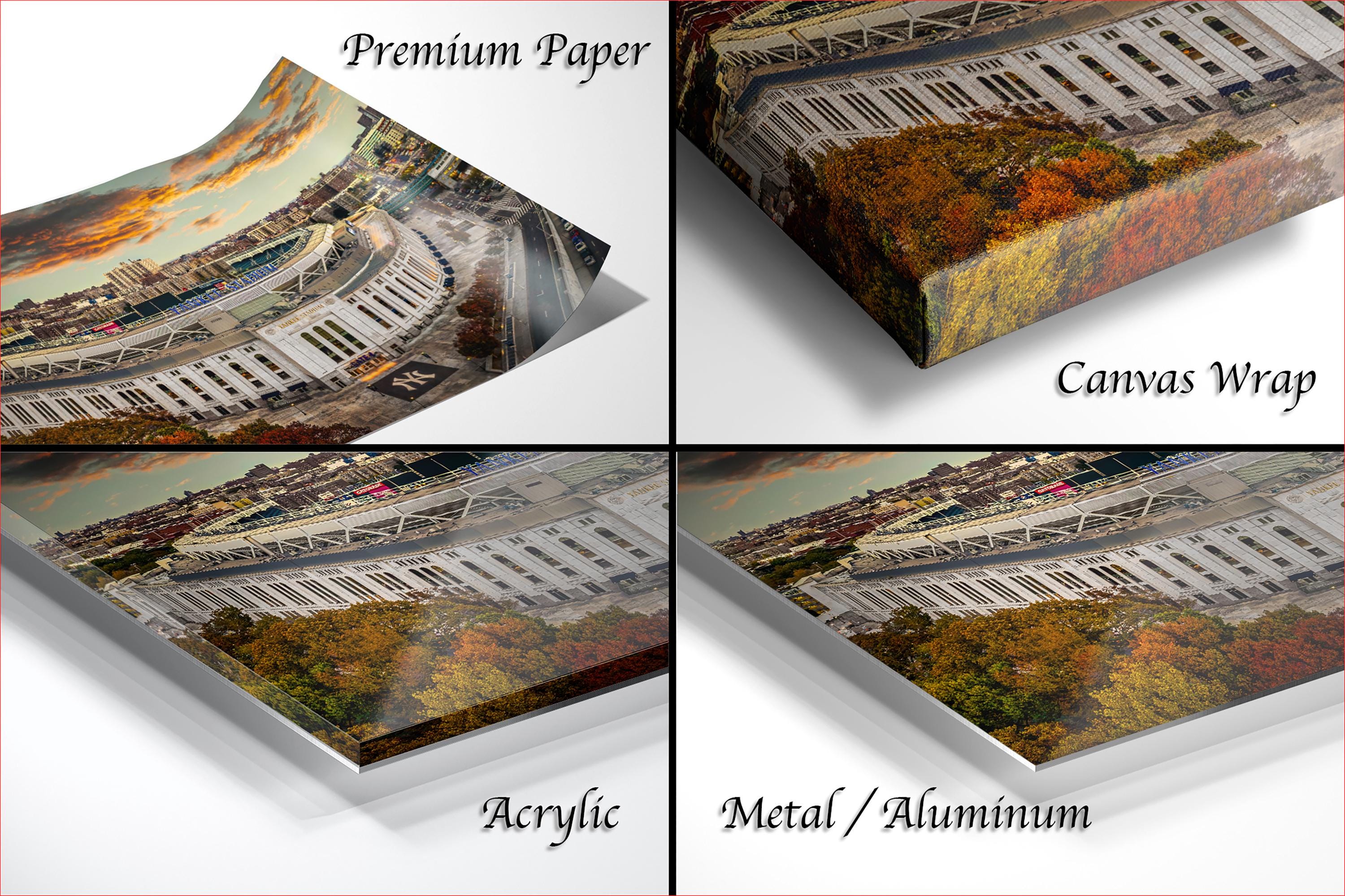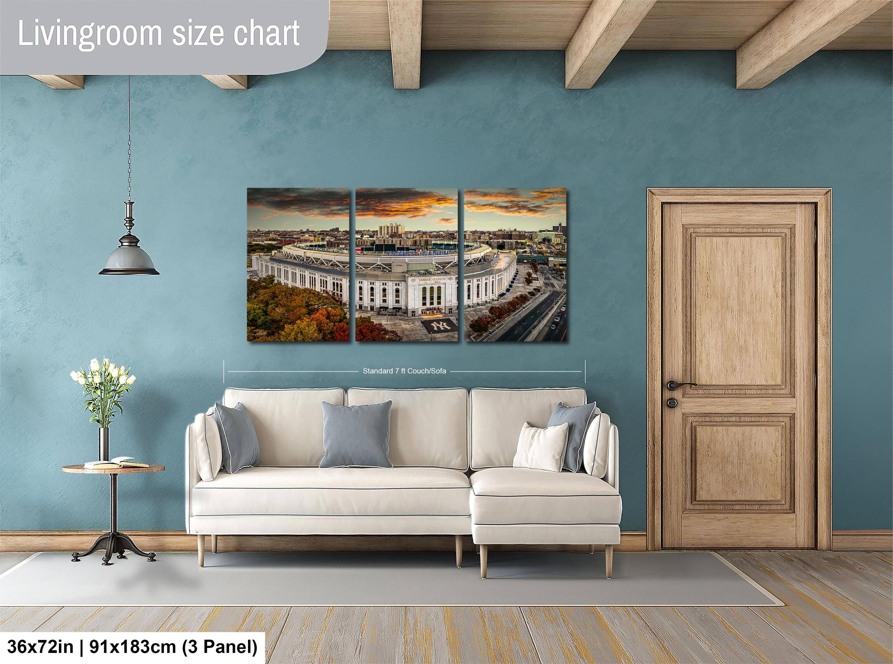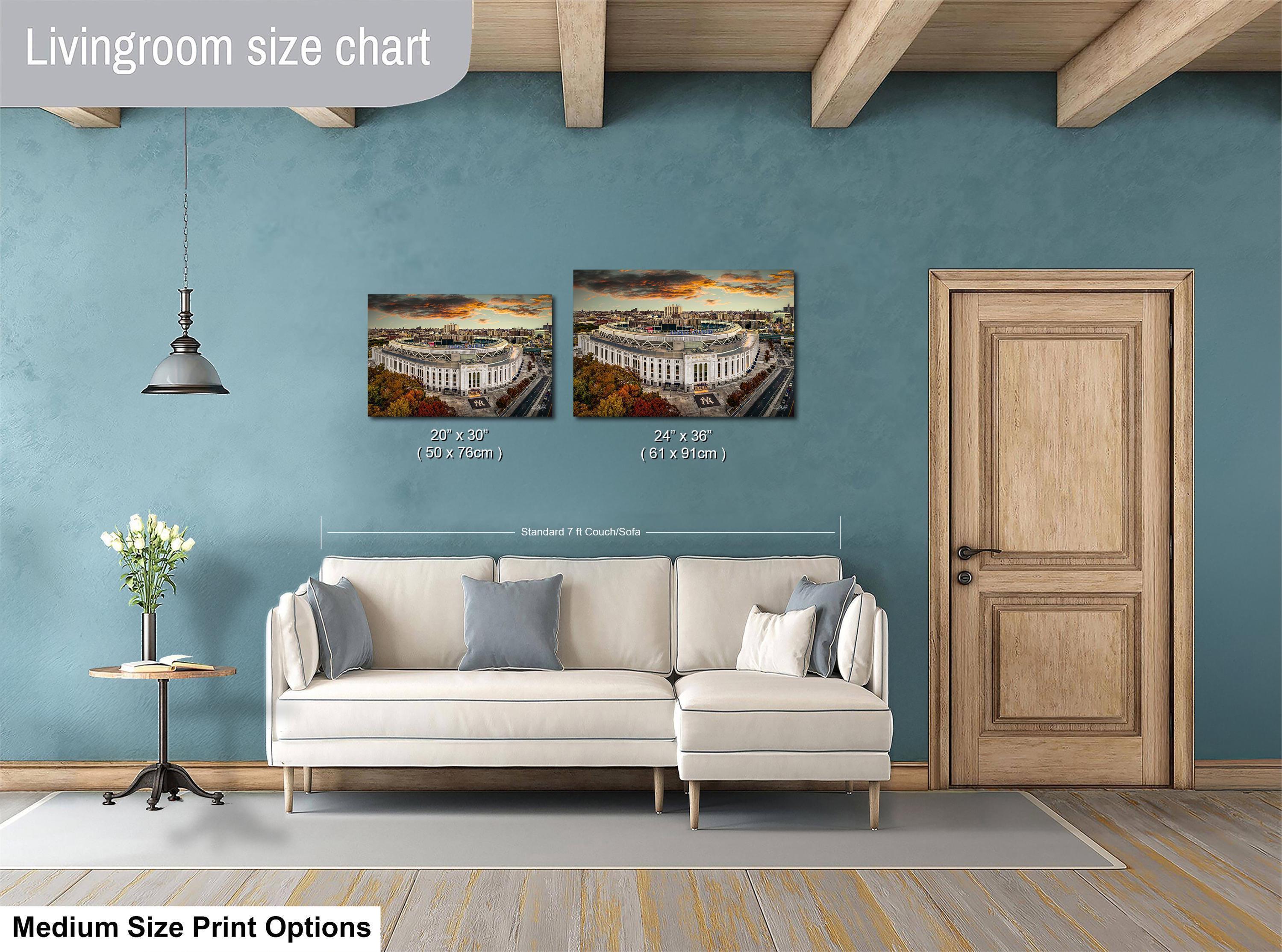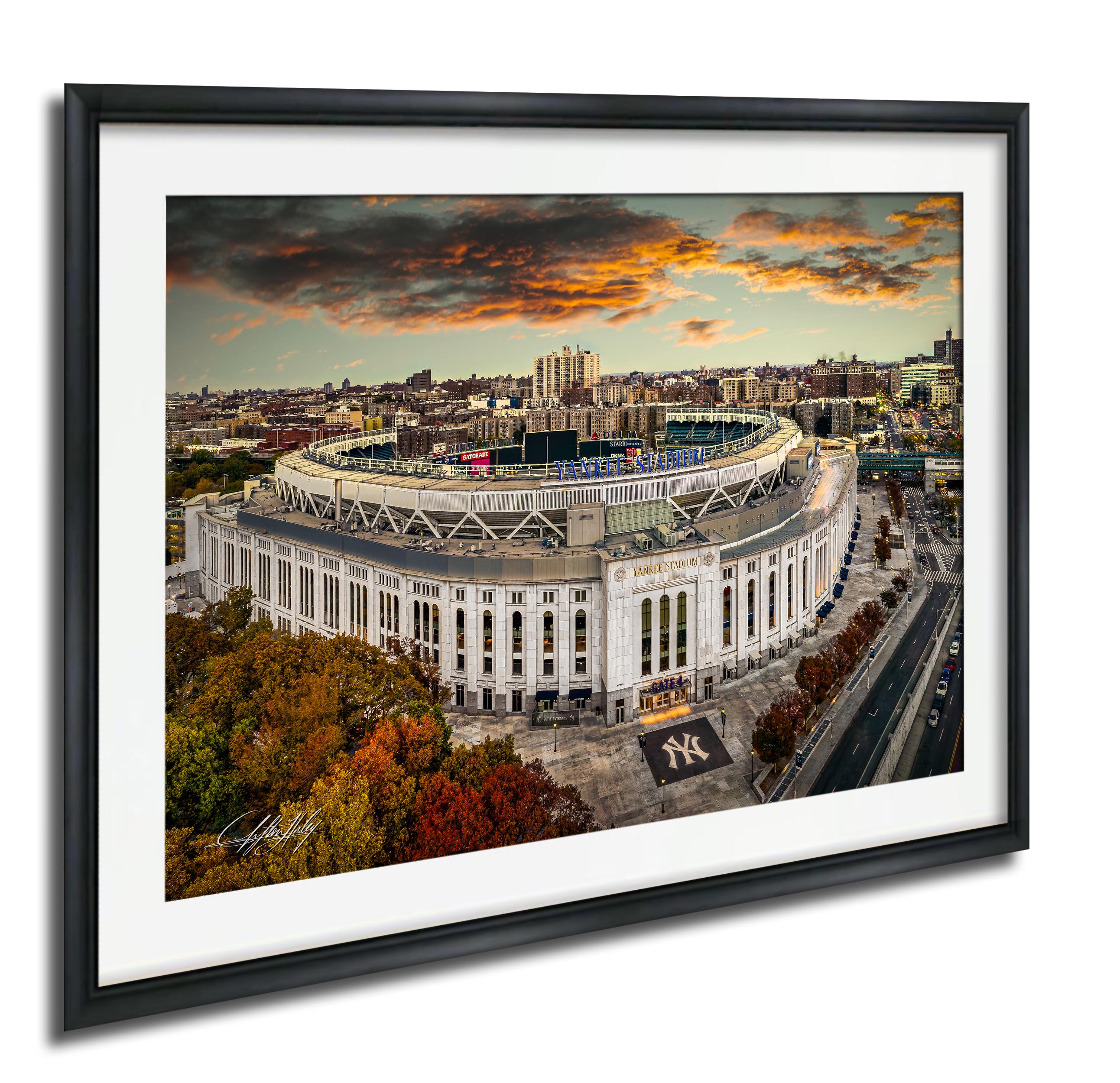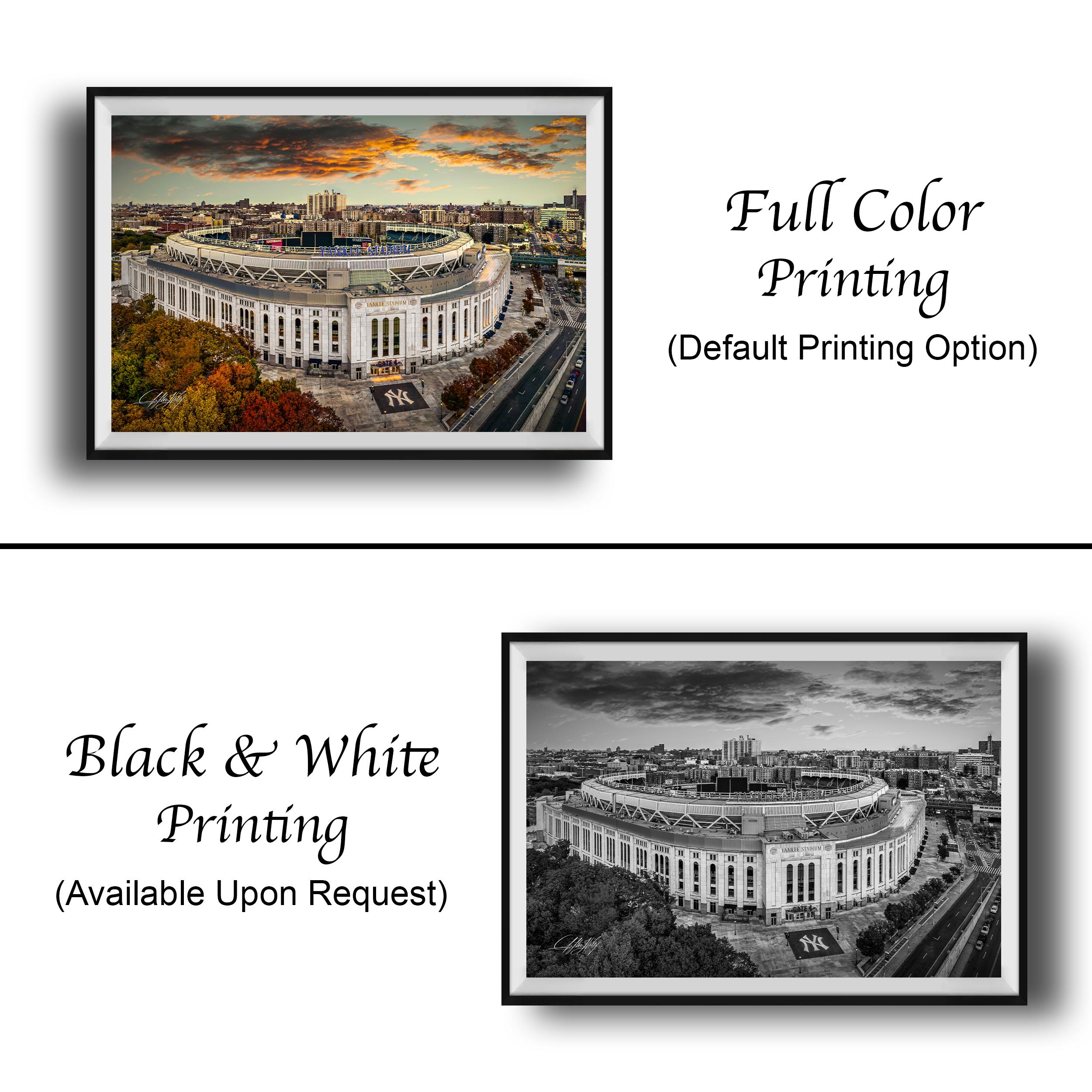 Capture the spirit of the game with this Yankees Wall Art Yankee Stadium at Sunrise Sunset Baseball Decor NY Baseball Gift Print, featuring a stunning panoramic view of Yankee Stadium bathed in warm, golden light.