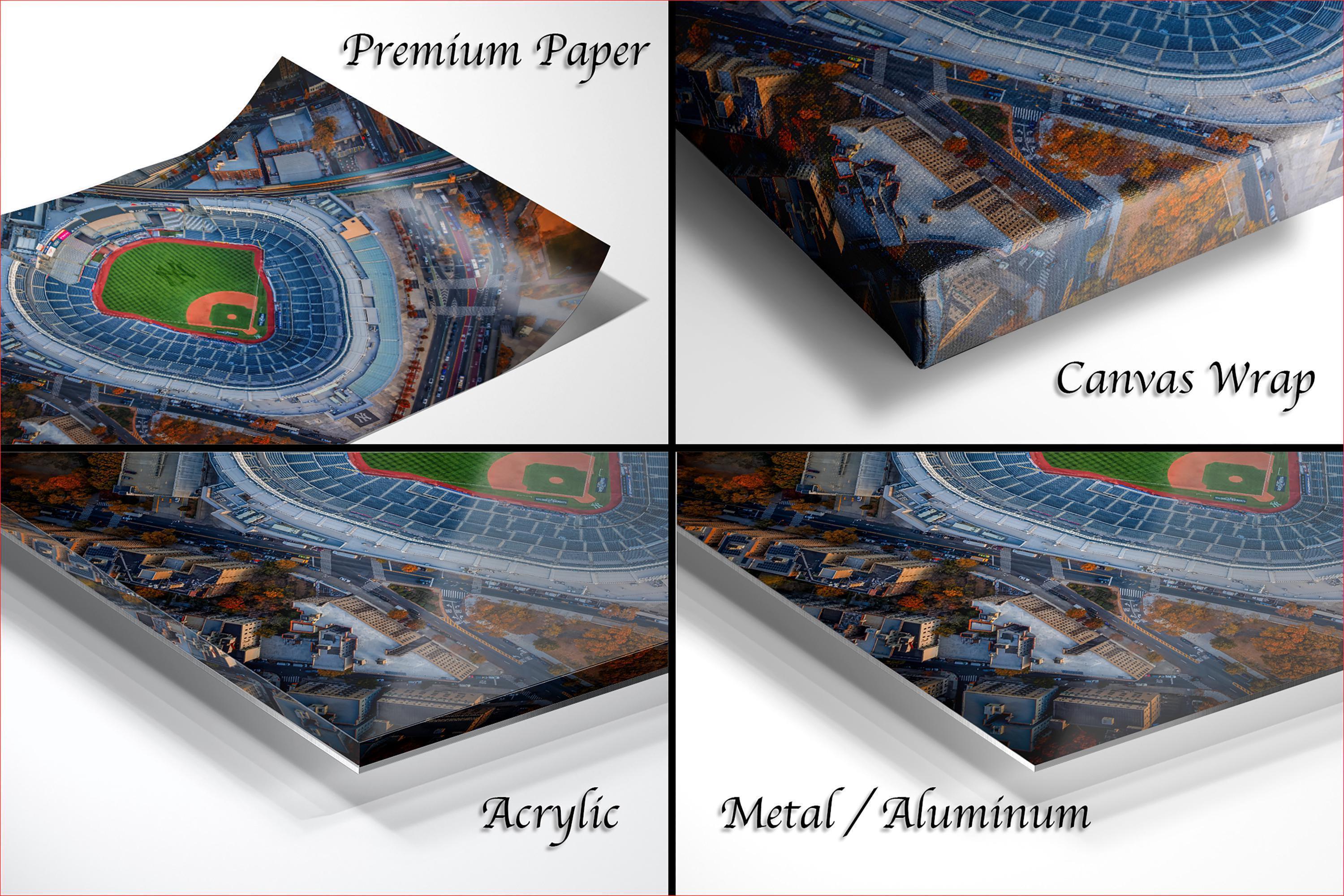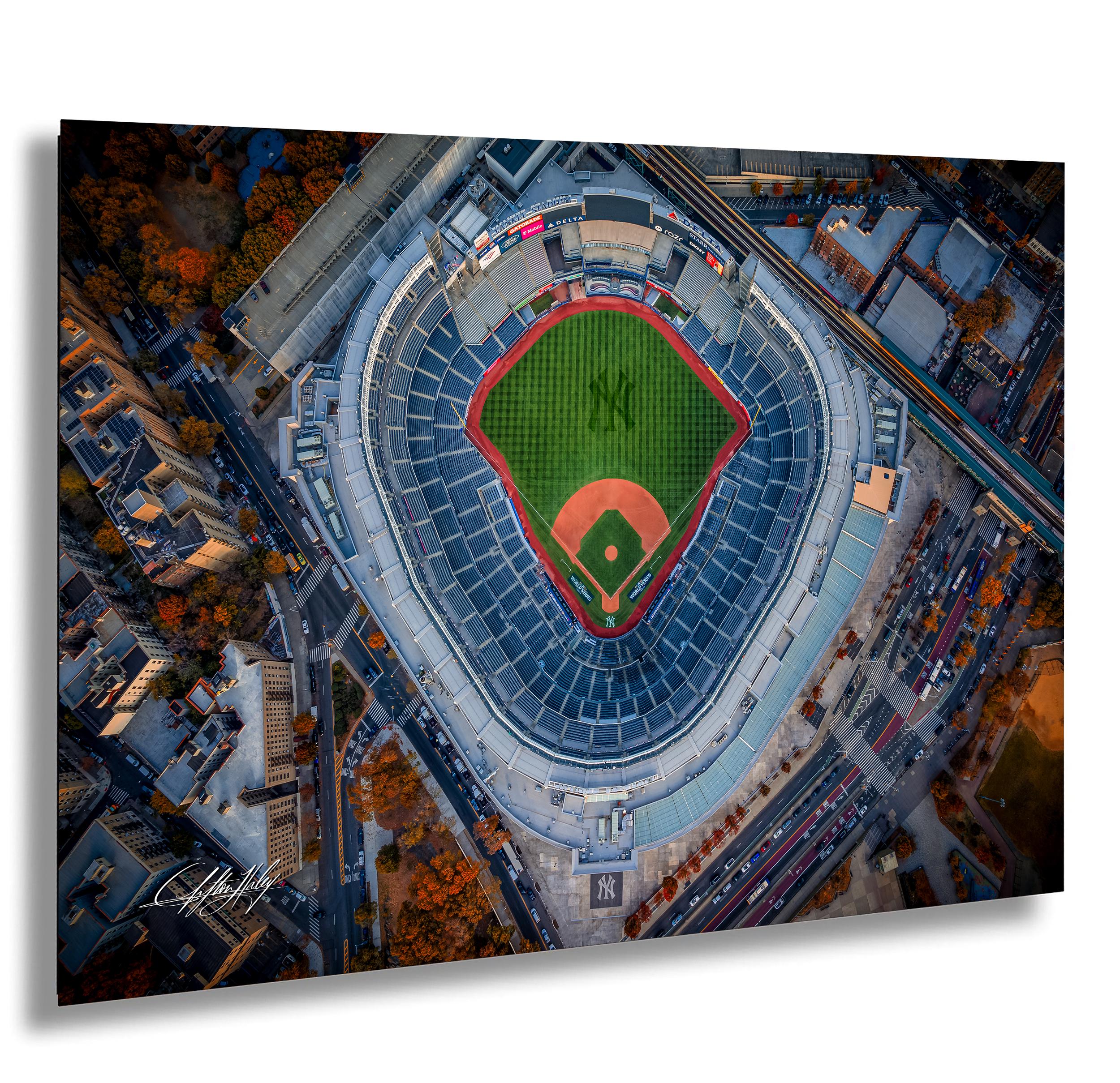 This exquisite piece captures the iconic Yankee Stadium bathed in the warm glow of twilight, evoking the spirit of the Bronx Bombers and their legendary history. Featuring the unmistakable “NY” logo, this artwork honors the legacy of Babe Ruth, Derek Jeter, and countless heroes who made the stadium a fortress of memories.