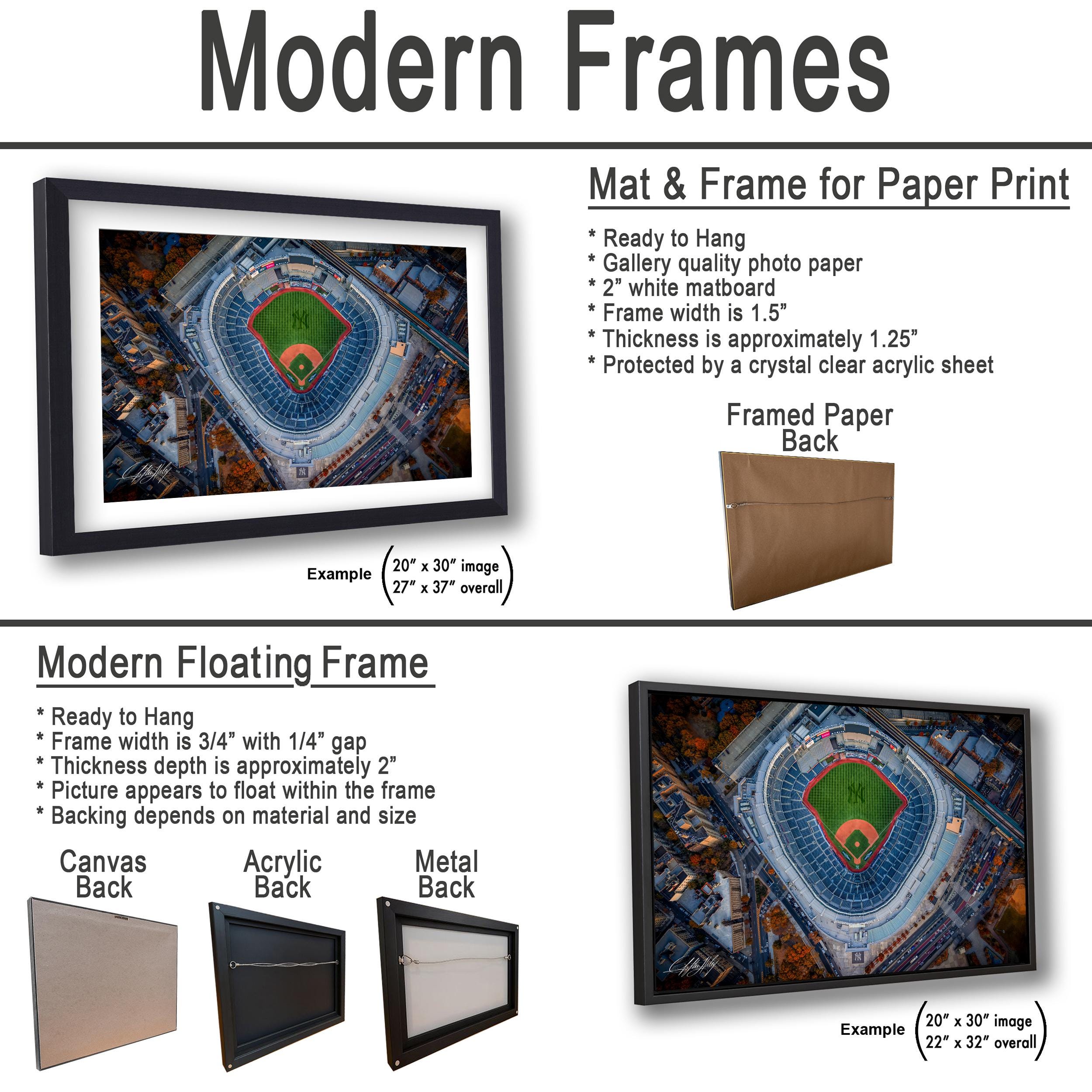 • Available as framed paper prints, acrylics, aluminum/metal prints with a 2" white mat border • Canvas prints are flush mounted with no mat border • Dimensions and customization options available upon request