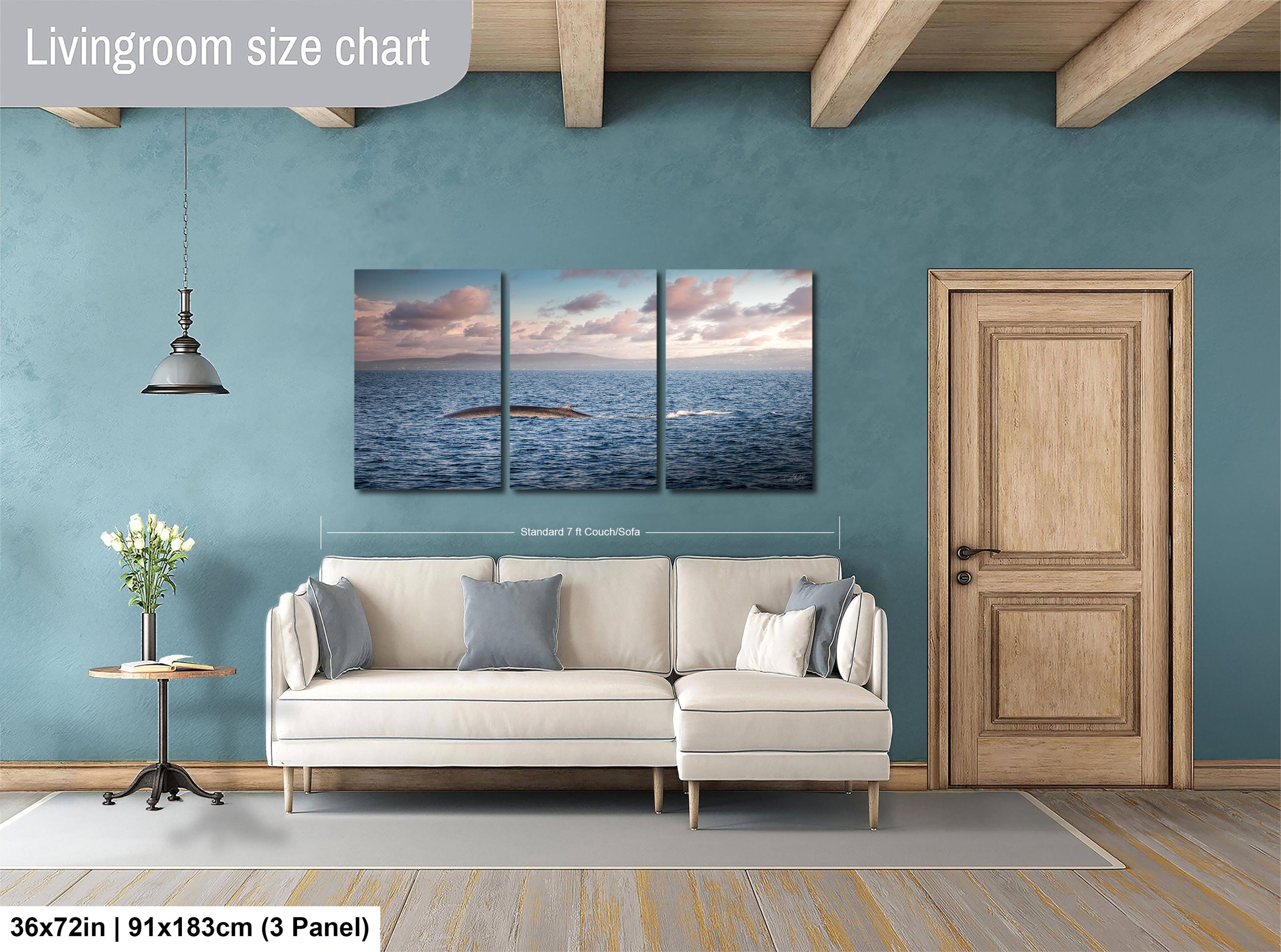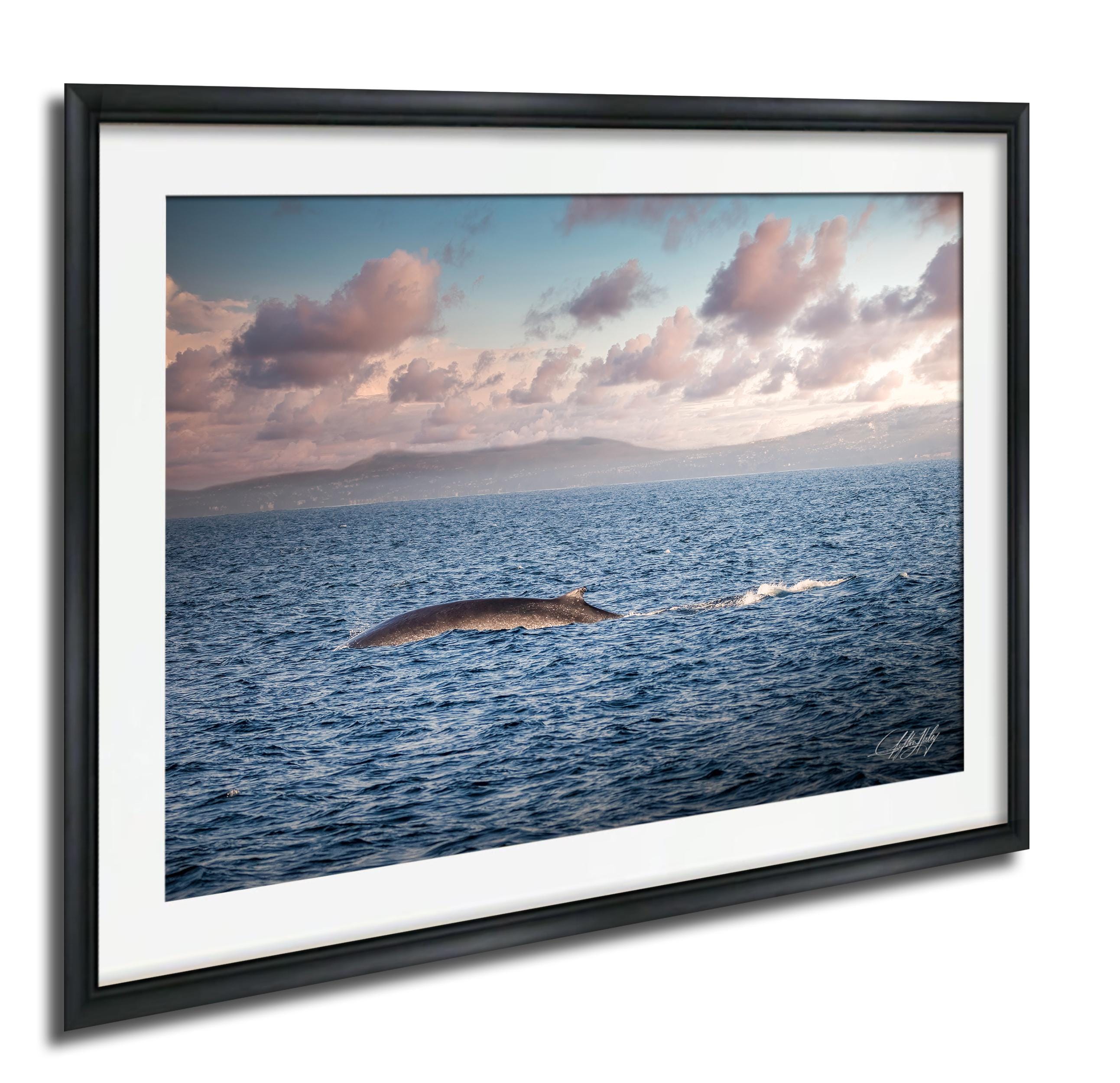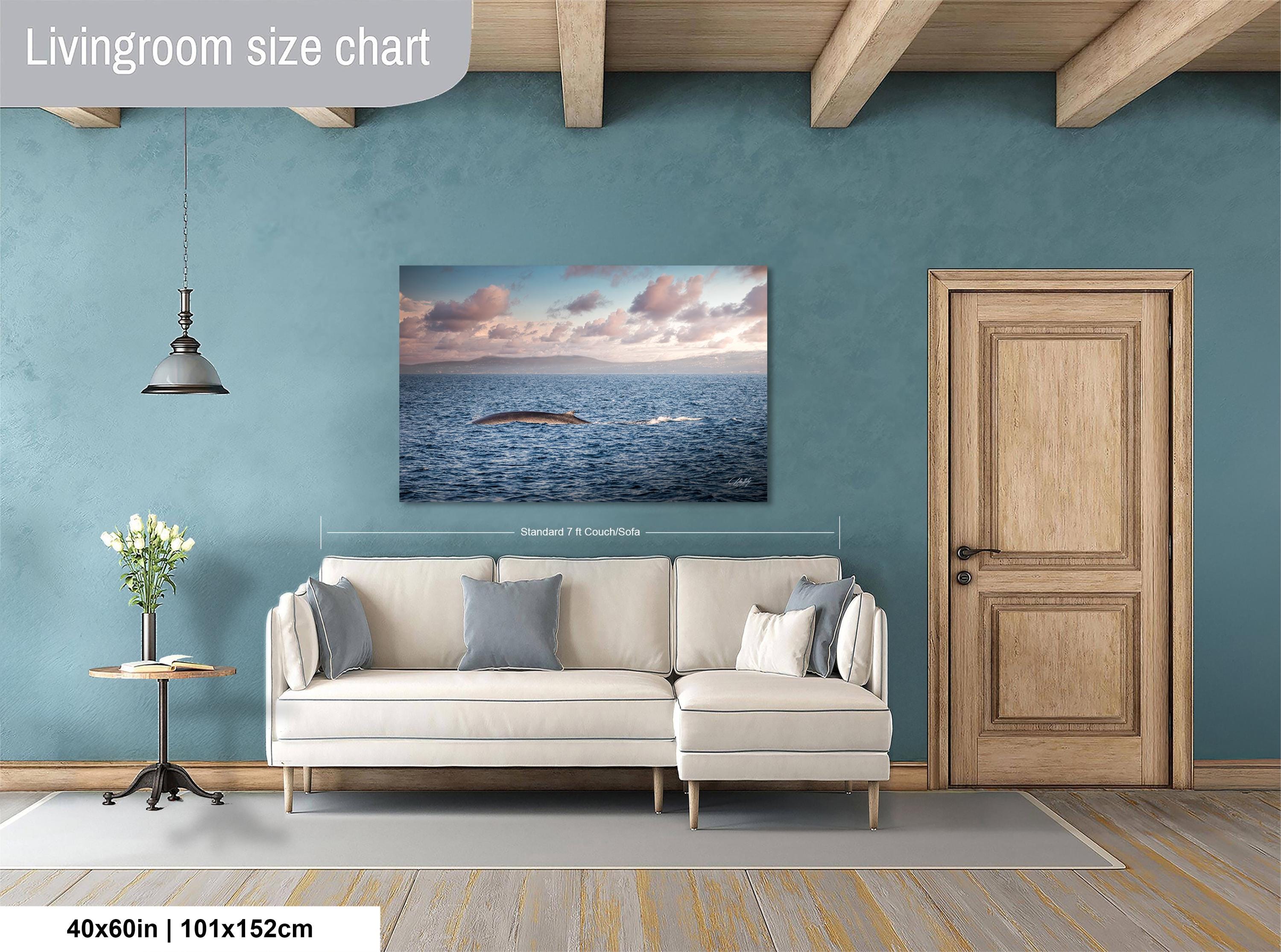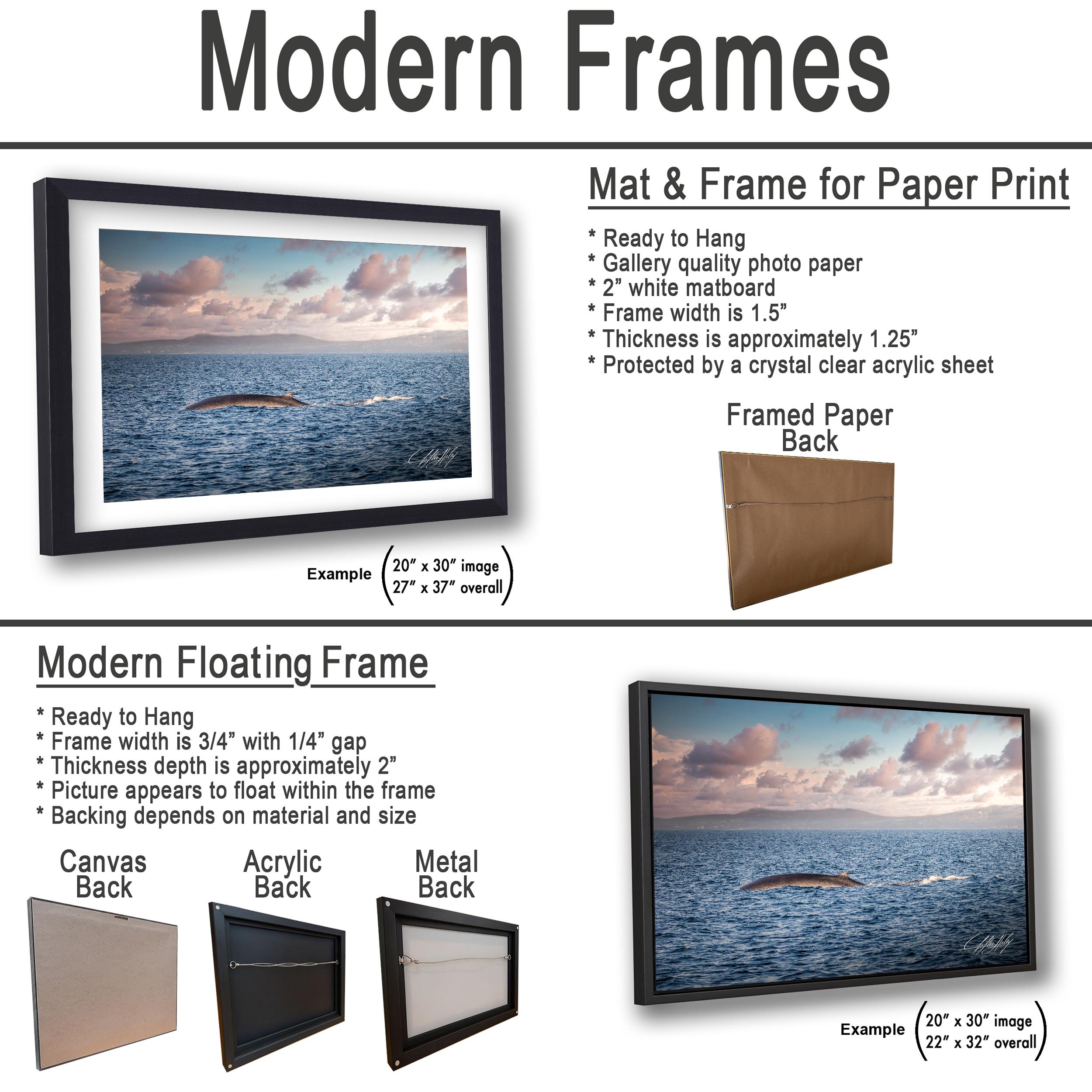 Key details: - Made-to-order custom fine art with no returns, but exchanges or replacements available if damaged - Framed paper prints, acrylics, and metal prints include a 2" white mat border; canvas prints are flush mounted without a mat - Perfect gift for whale watching enthusiasts or lovers of coastal living room accents