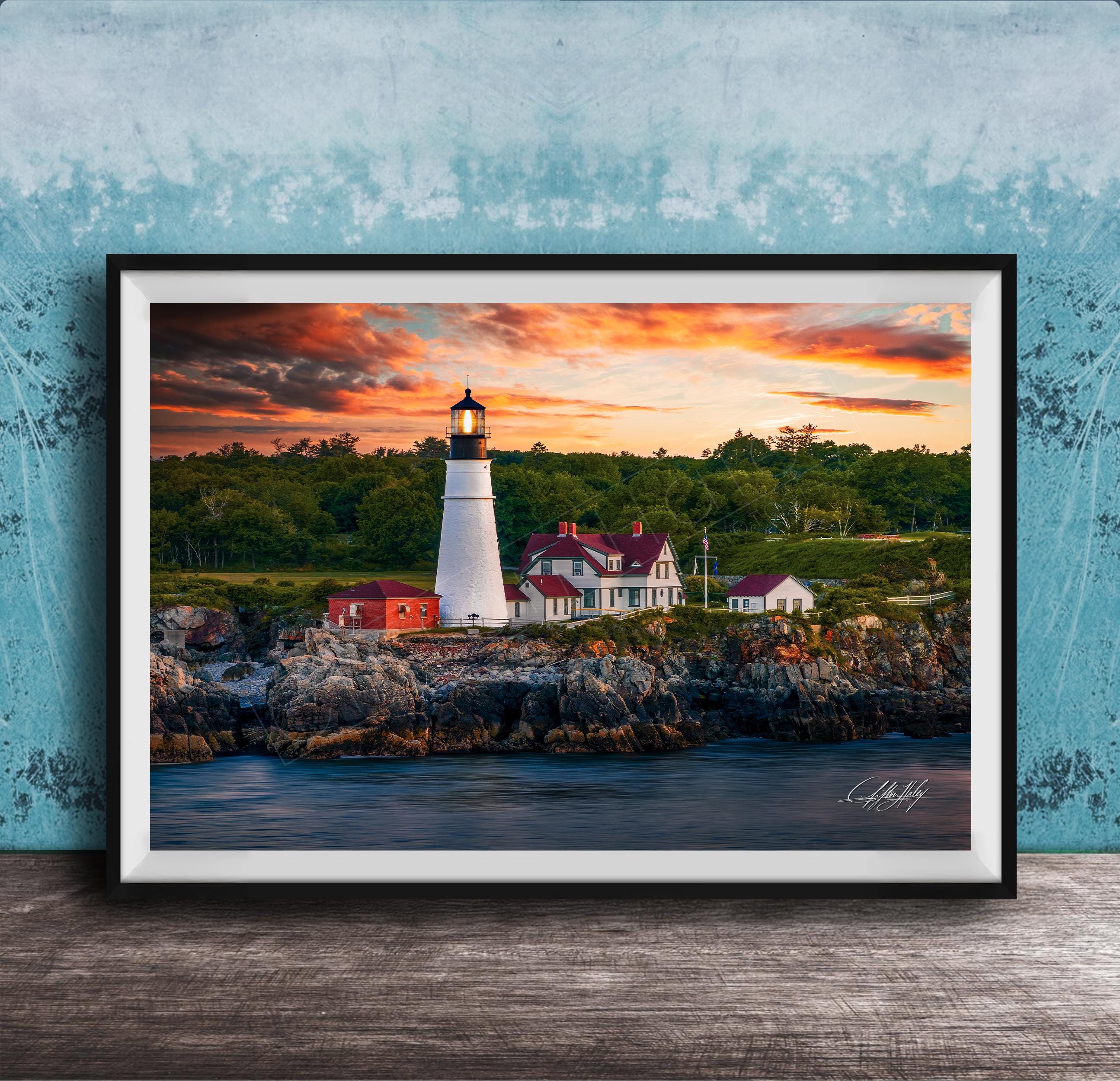 Historic Lighthouse Print: Portland Head Light at Dusk (Maine Coast)