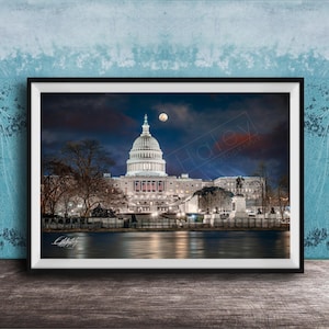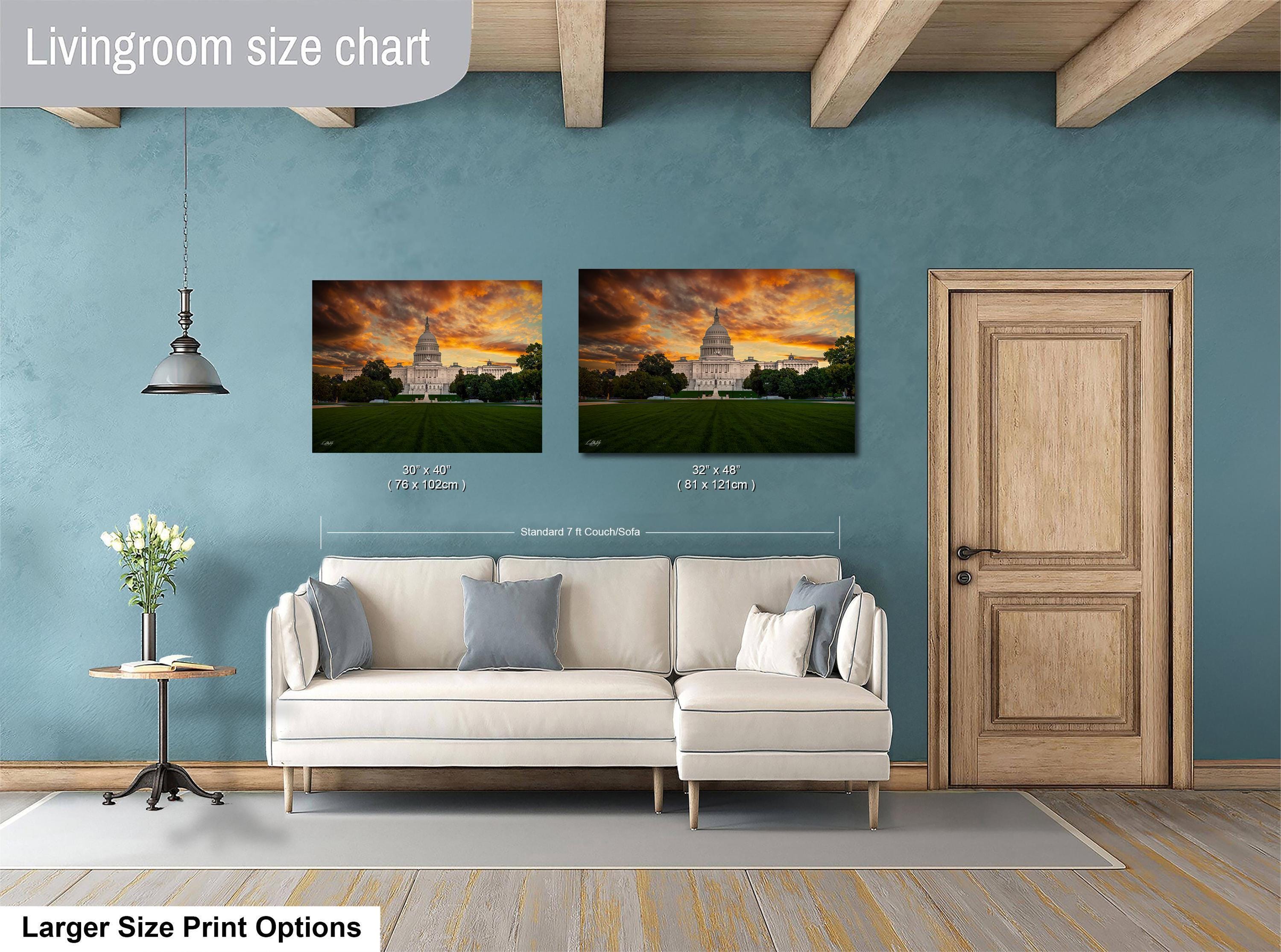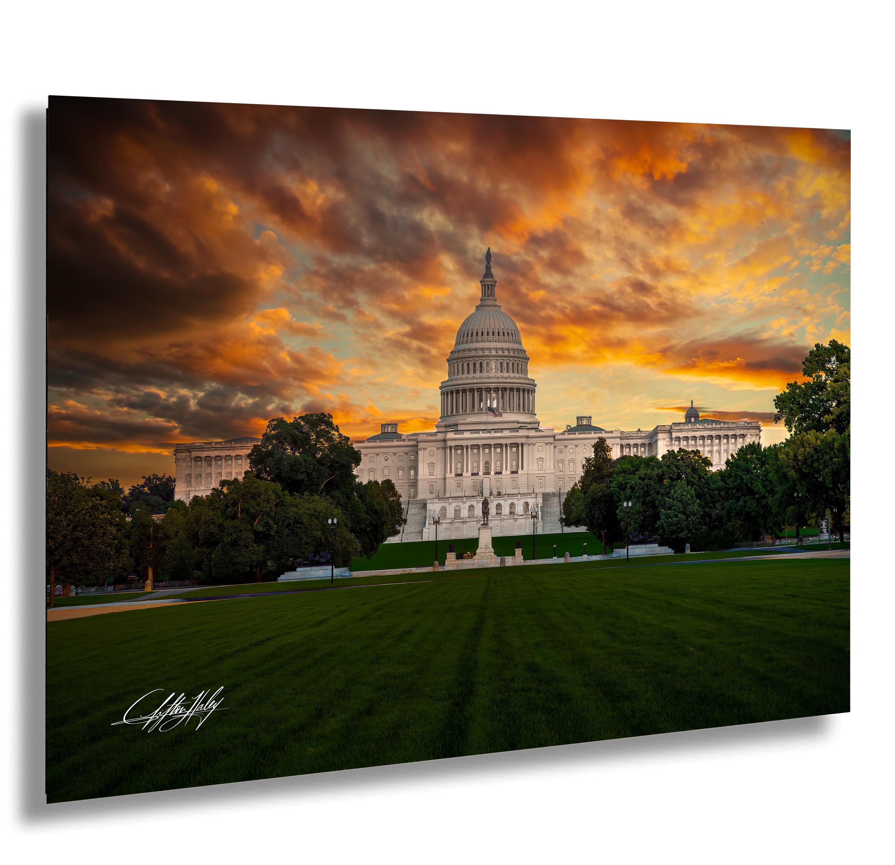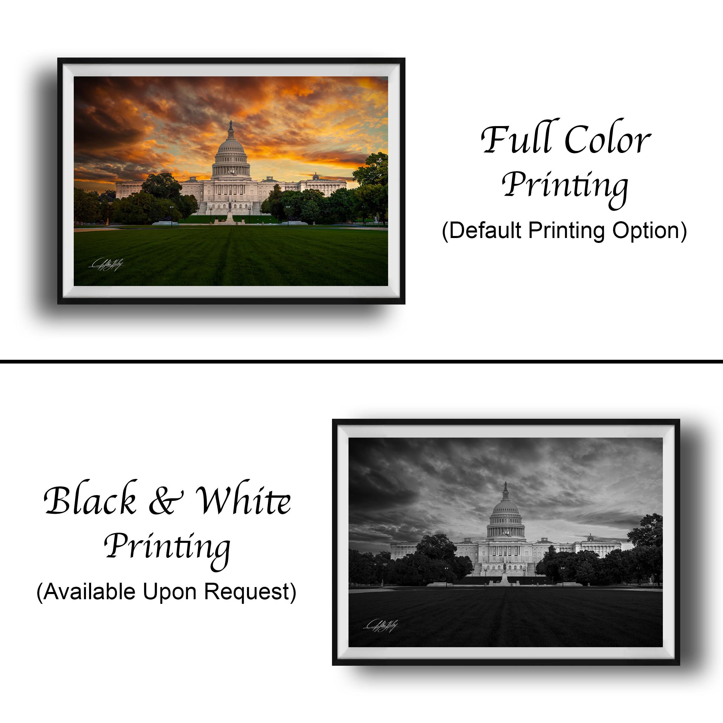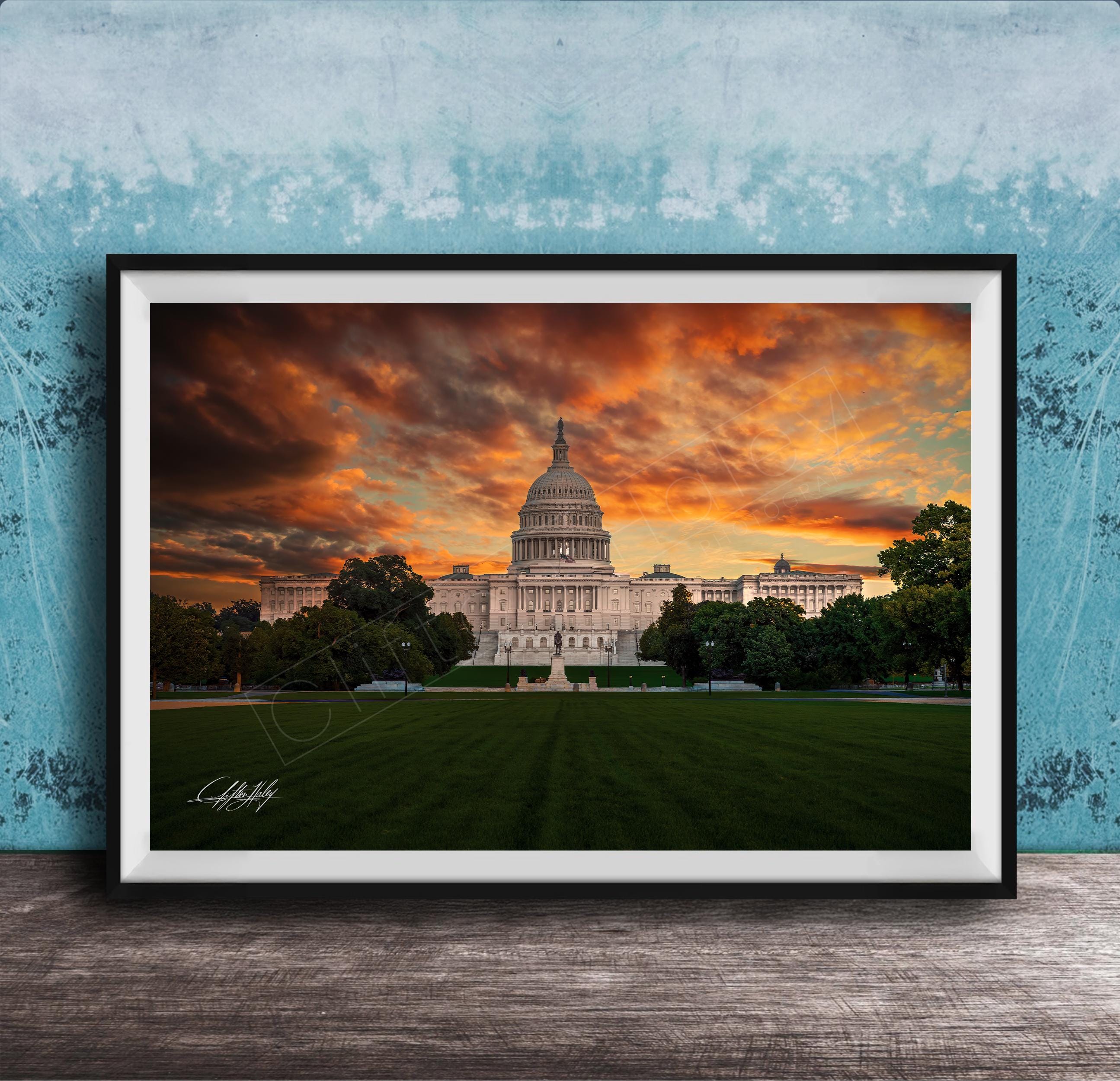 With each frame, I sought to capture not just an image, but the essence of this city: resilience, hope, and strength it embodies. As twilight deepened, the Capitol’s dome illuminated as a beacon in “the Federal City.” This historical print is an ideal addition for lovers of art, national parks, and American heritage.
