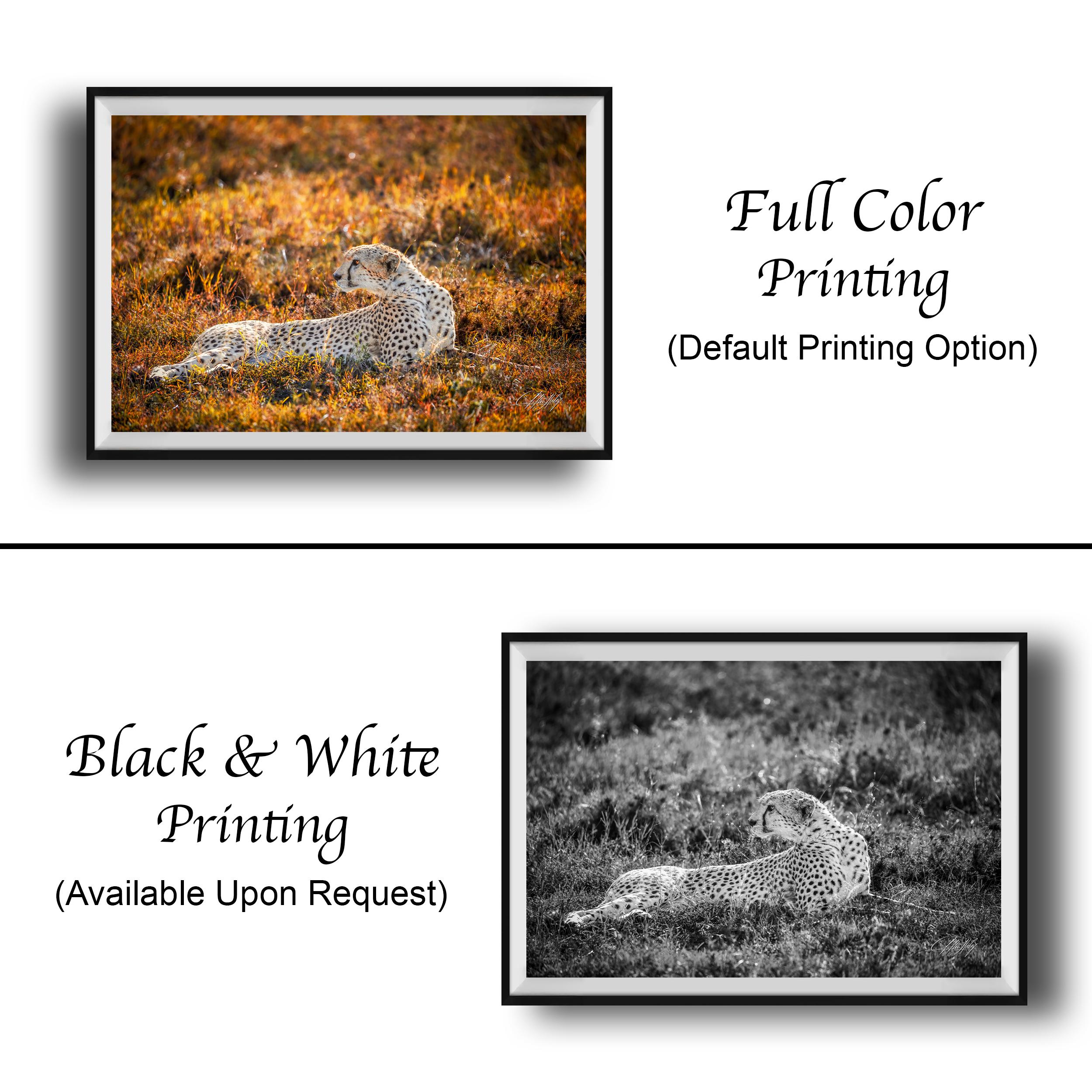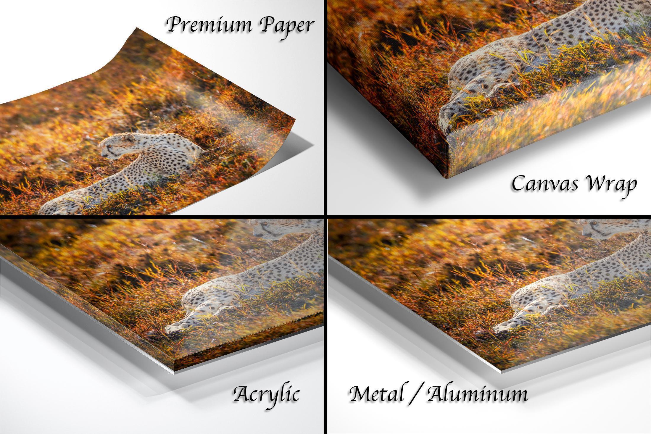Each print is made-to-order, ensuring your cheetah decor is uniquely personal. Please note that as custom fine art, returns are not accepted; however, we offer exchanges or replacements if your artwork arrives damaged or with issues.