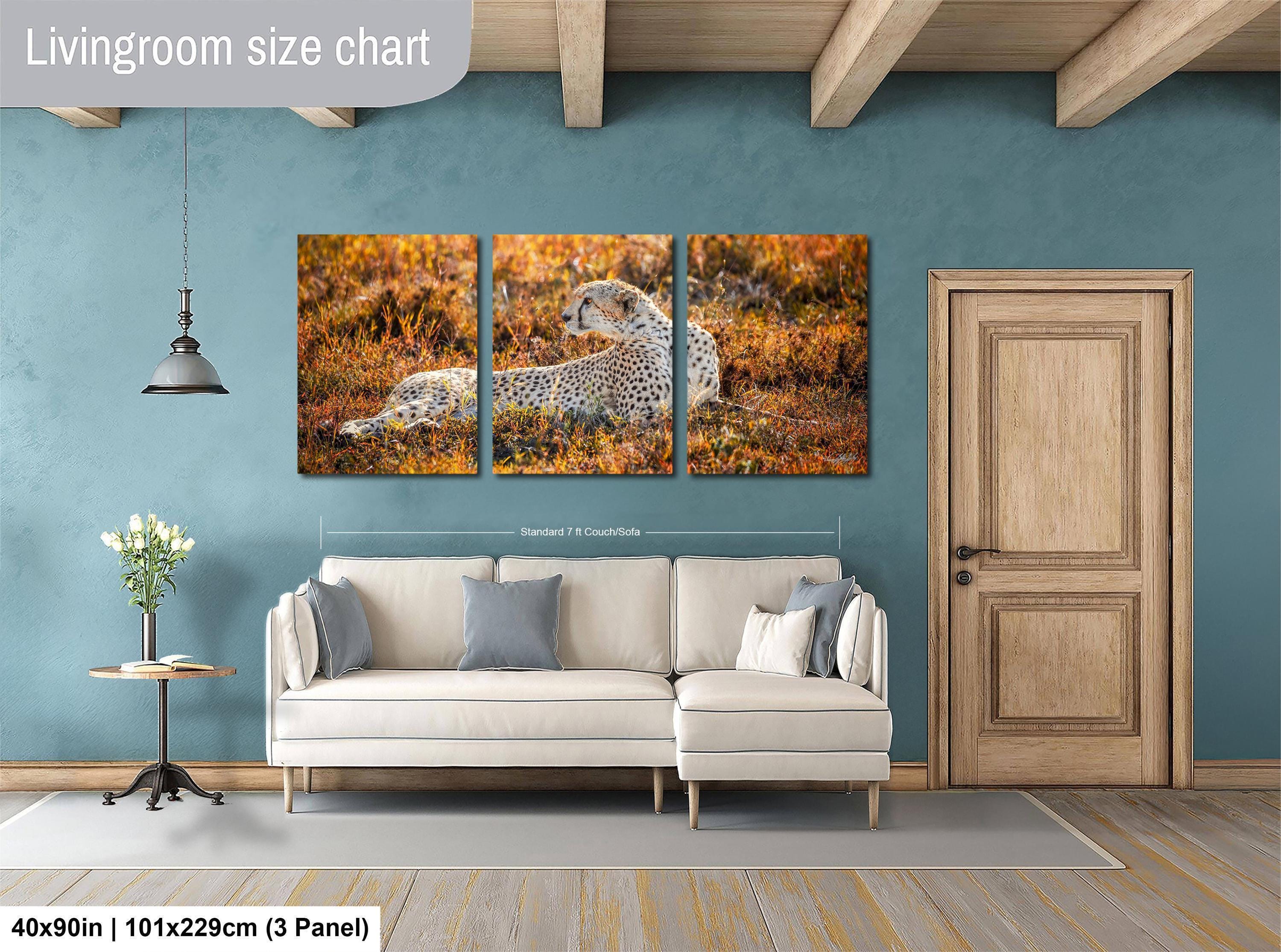 Ideal for over the bed or living room, this cheetah animal print adds a bright wall art accent that complements modern apartment decor. Each piece is made-to-order, ensuring your wild animal art is unique and personal.