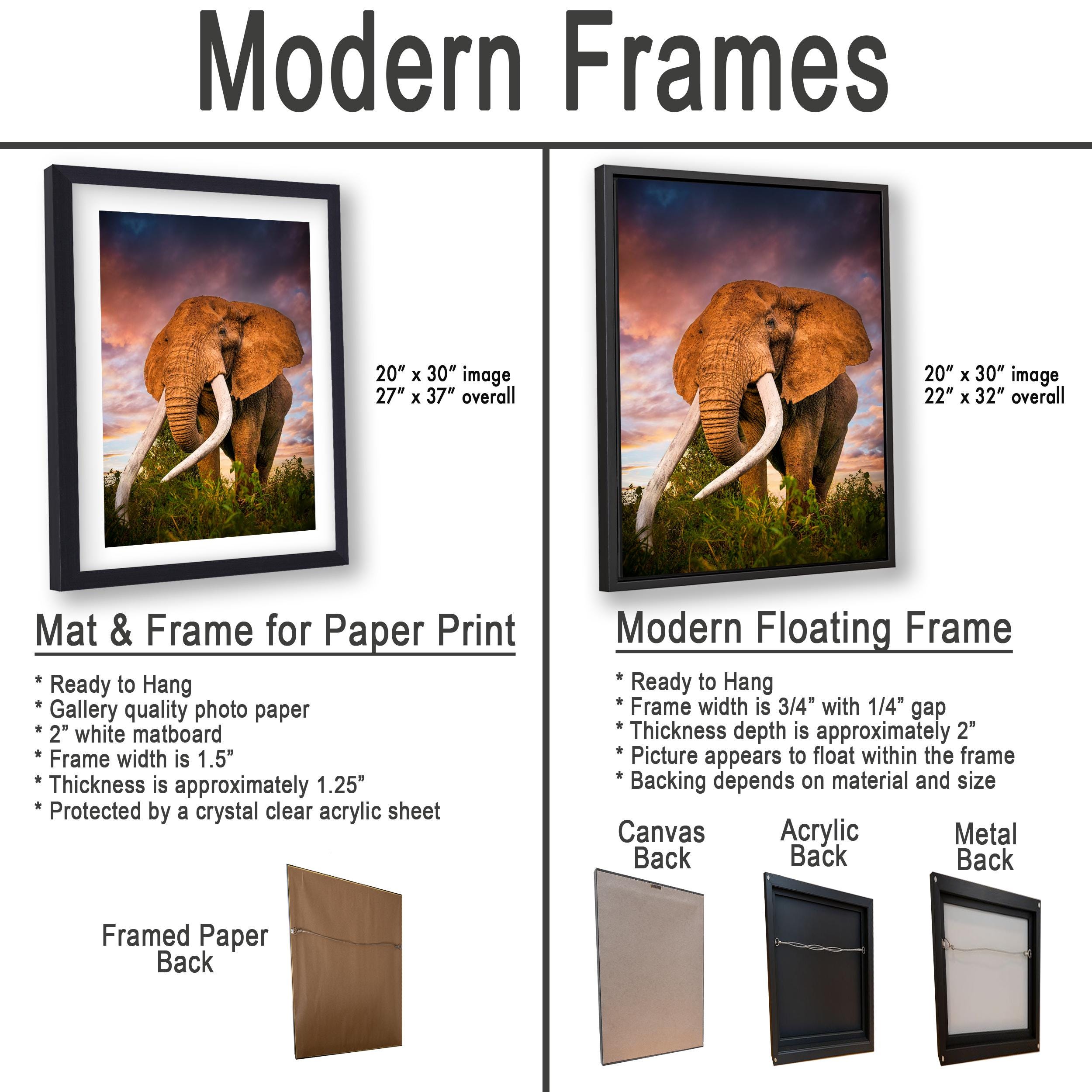 ➢ Dimensions and framing options vary; framed paper prints, acrylics, and metal prints include a 2" white mat border for enhanced presentation.