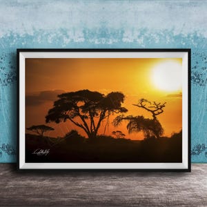 • Hand-signed artwork authenticates every print, adding value and a personal connection to the artist’s vision. • Available as framed paper prints, acrylics, aluminum/metal prints with a 2" white mat border, or canvas prints with a flush-mounted frame for a sleek finish. • Dimensions and customization options are available upon request to perfectly suit your space. • This large animal canvas portrays Craig, a rare big tusker elephant with tusks over 45 kilograms each, set against the vibrant Kenyan sunset—a tribute to Amboseli National Park’s iconic wildlife.