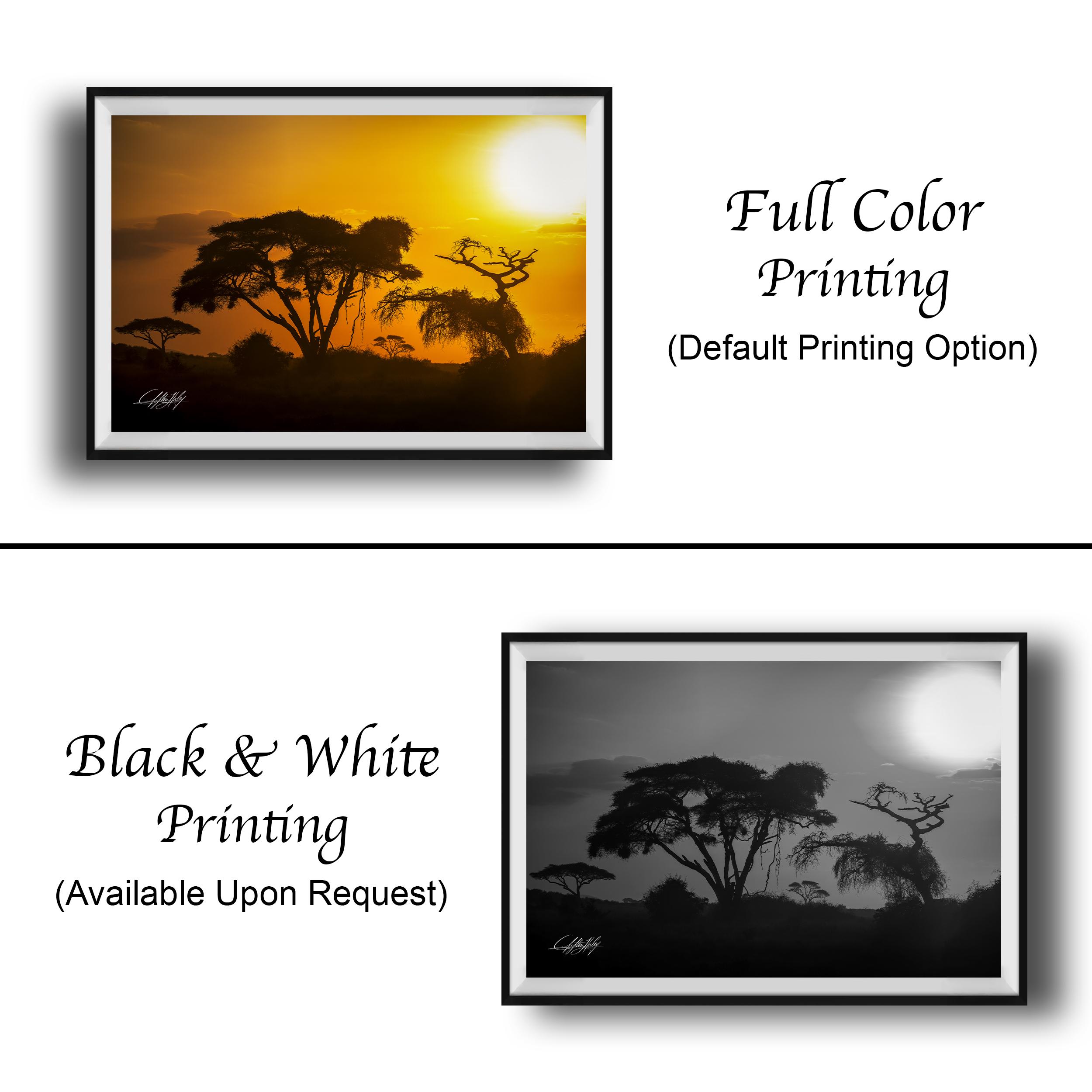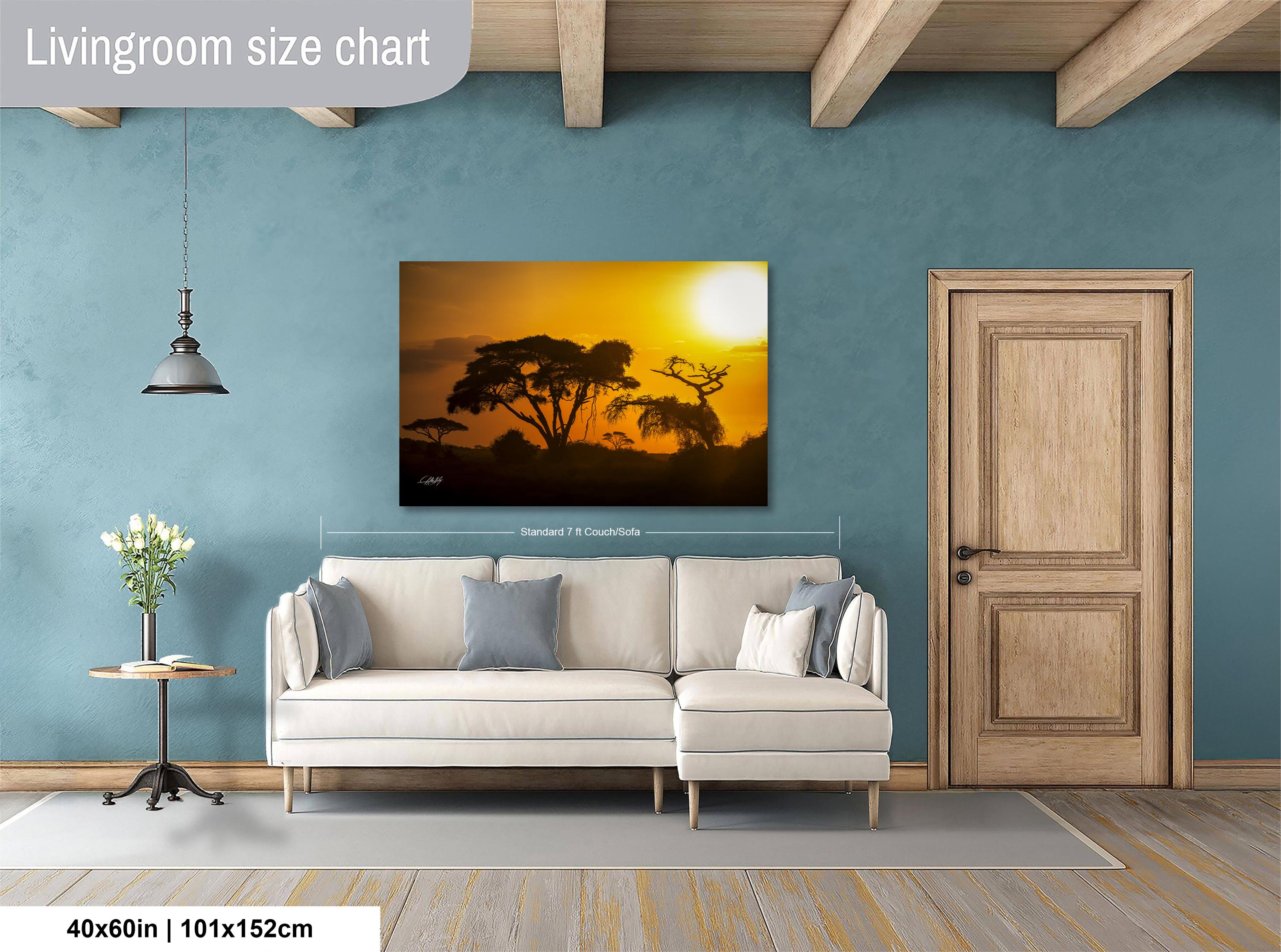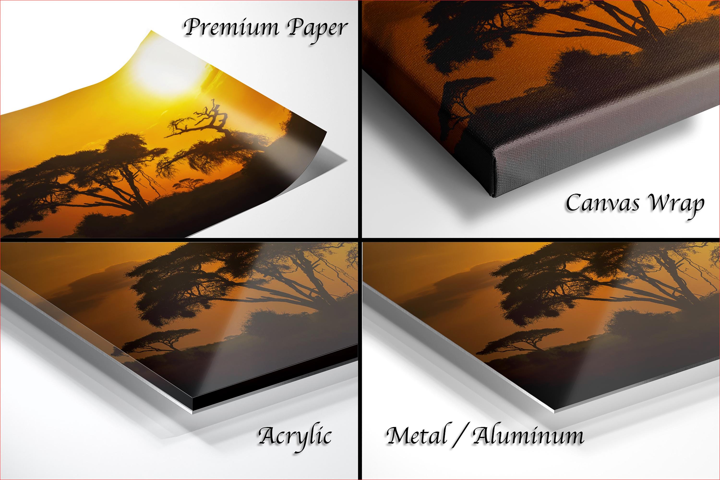 • Crafted with high-quality materials for vibrant, lasting colors and durability • Artist signed print authenticates each unique piece with a personal touch • Dimensions tailored to fit your space; choose from framed paper prints, acrylics, aluminum/metal prints (with a 2" white mat border), or flush-mounted canvas prints • Ideal as an elegant elephant safari gift or a centerpiece in any room seeking golden dusk decor vibes
