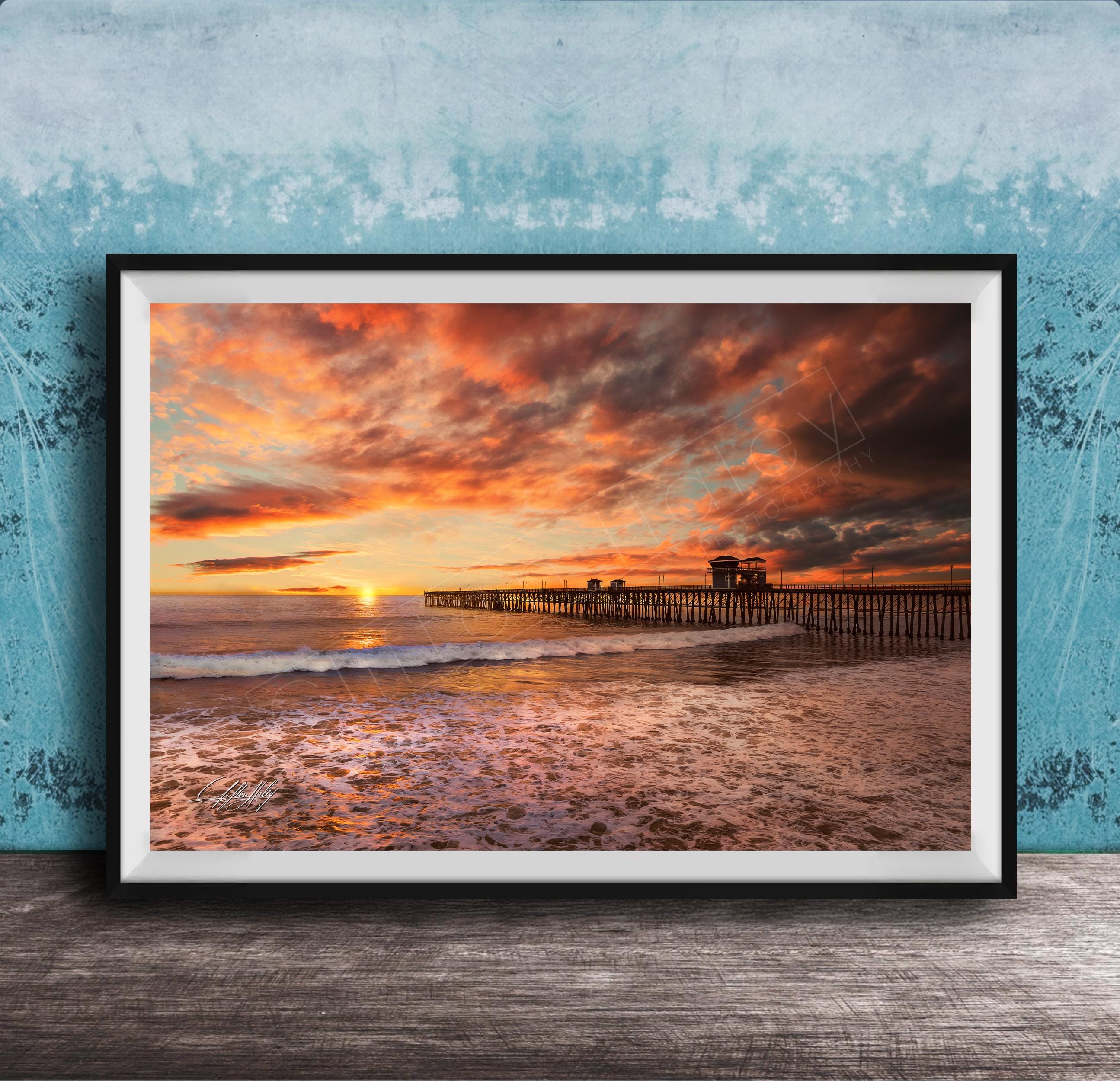 Discover this stunning Oceanside Pier sunset fine art print, a captivating coastal photography piece perfect for California travel decor and San Diego wall art lovers.