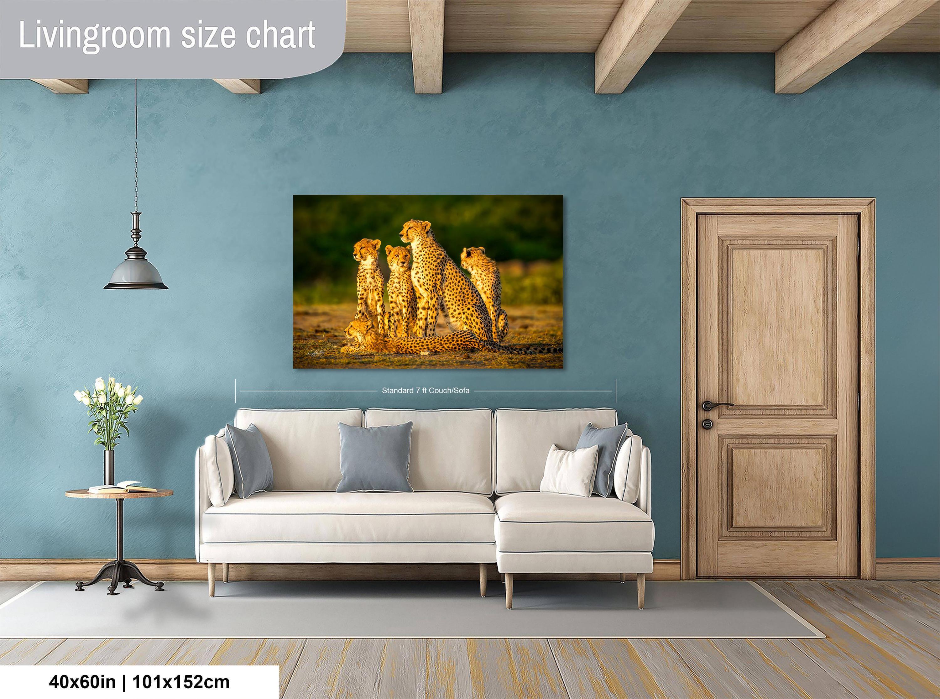 Witness the majesty of the cheetah family captured in this luxury animal print, a perfect boho wall decor piece that evokes the spirit of the African savanna. Inspired by the Maasai Mara, this artwork celebrates the swift elegance and protective bond of Kenya’s iconic predators.
