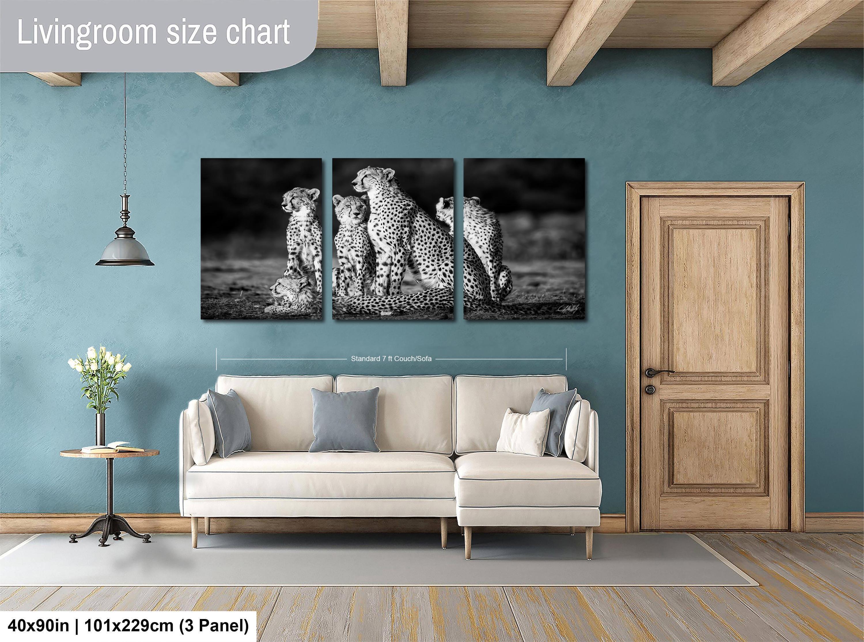 Cheetah wall art print captures the raw beauty and grace of Kenya's swiftest hunters in striking black and white. This maximalist animal decor brings a bold safari artwork vibe to your space, perfect for adding a touch of wild elegance over the bed or couch.