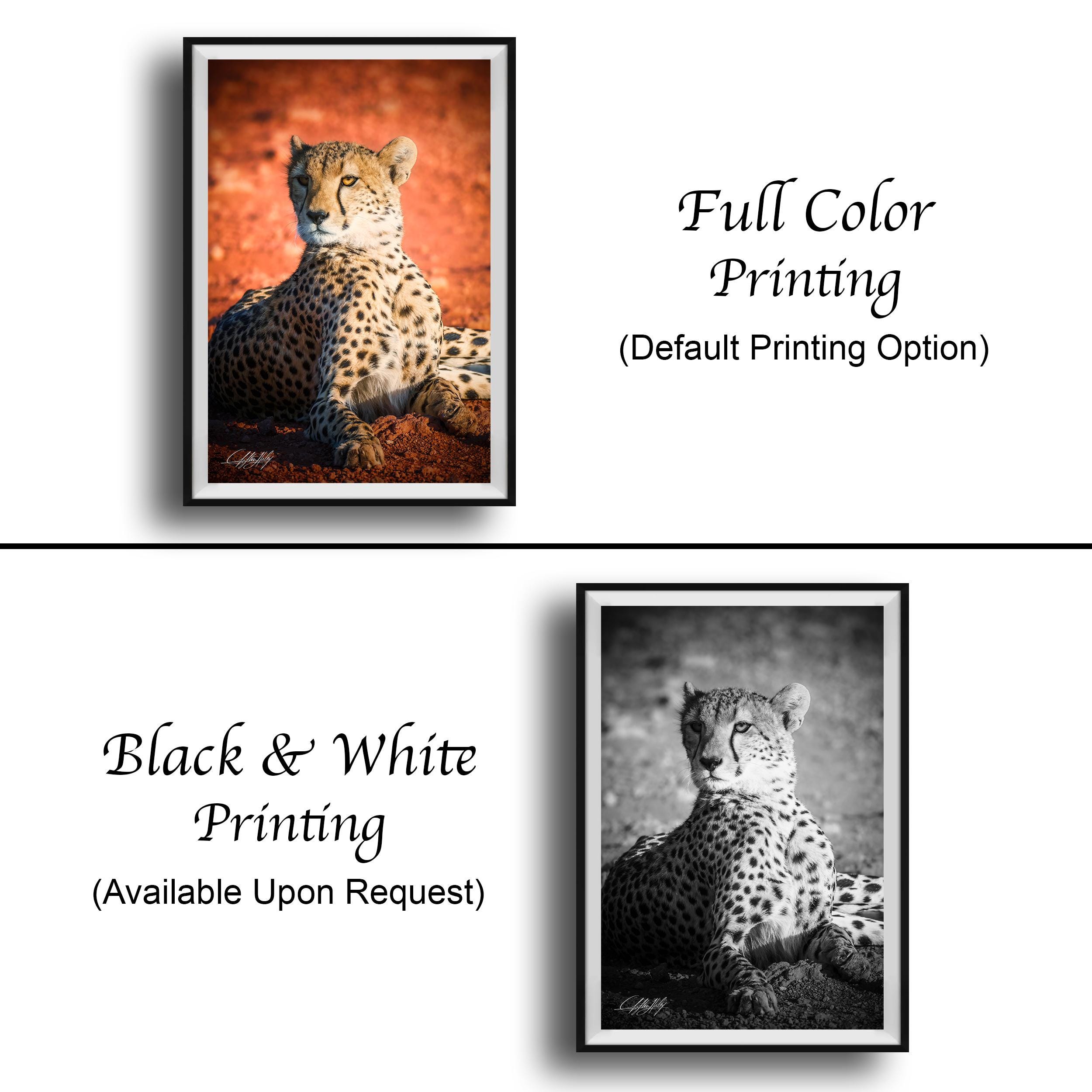 Inspired by the majestic cheetah in Kenya’s Maasai Mara, this artwork captures the essence of the wild with vivid colors and intricate detail. Our luxury animal print brings a touch of safari art and maximalist animal style to your living space, making it an ideal bright wall art accent for over the bed or over the couch.