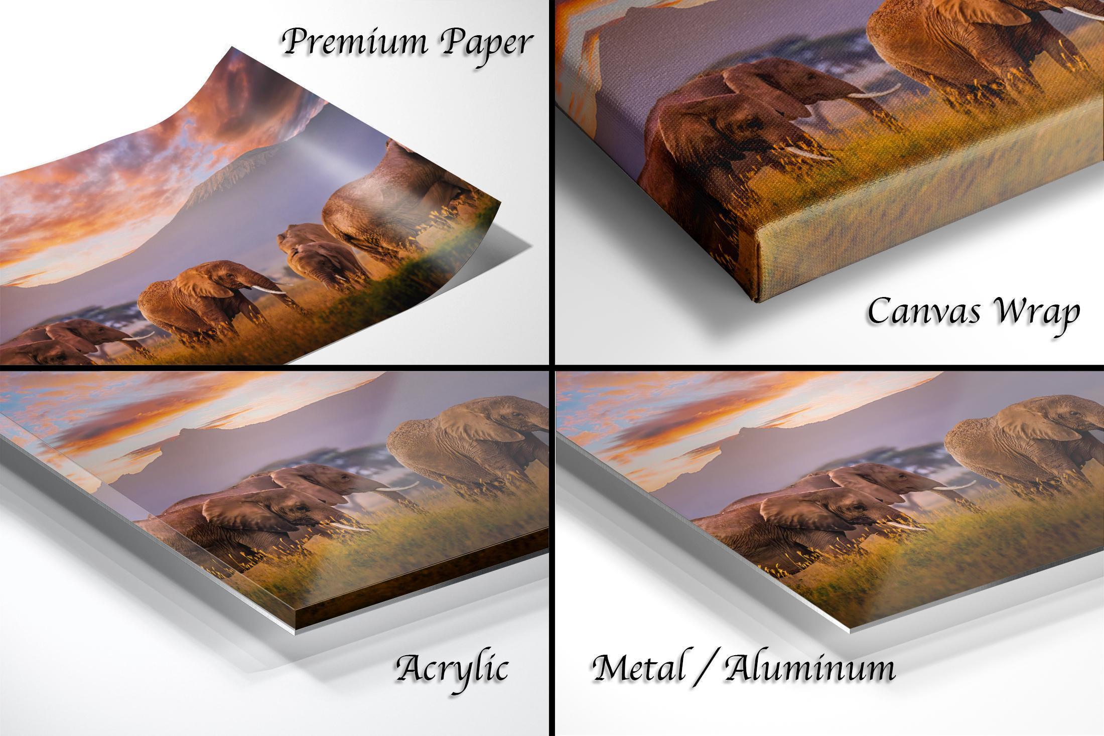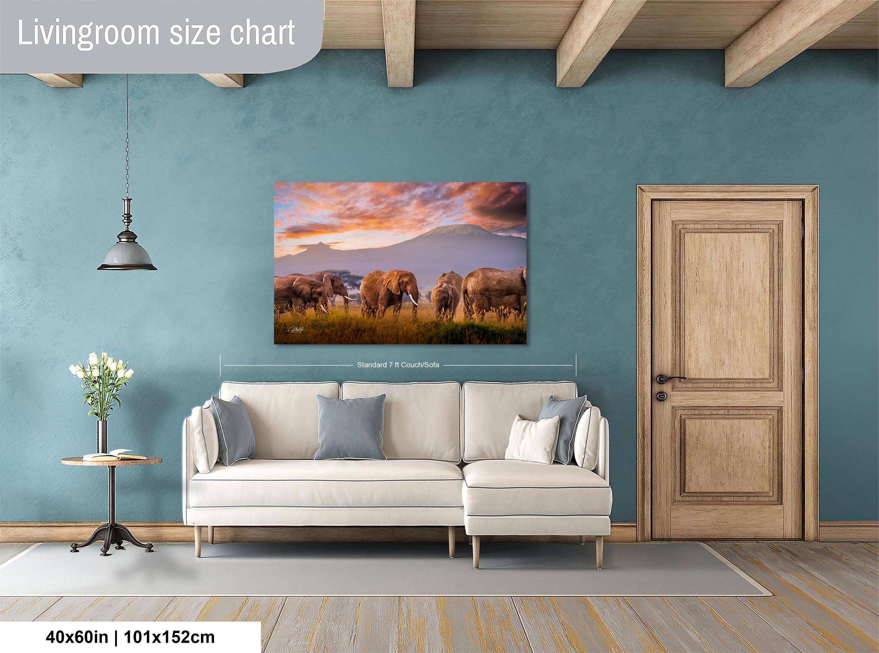Bring the timeless elegance of Kilimanjaro and African elephant art into your living space with this warm amber wall art that tells a story of family, endurance, and wild beauty.
