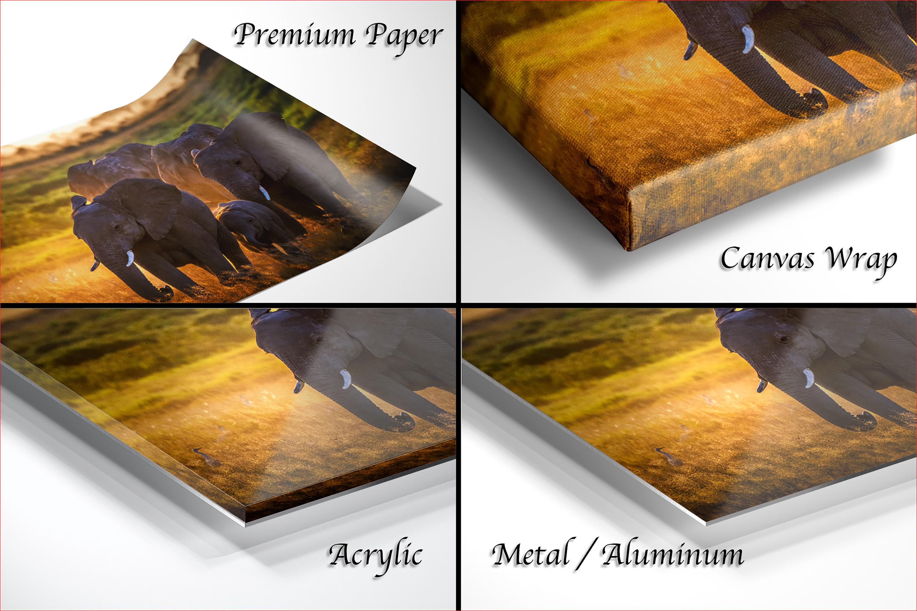 Perfect for adding a touch of safari elegance and abstract Africa art to any room, this elephant painting is an ideal gift for wildlife enthusiasts and collectors. Enhance your space with this timeless metal print alternative or choose from framed paper or acrylic options featuring a 2" white mat border.