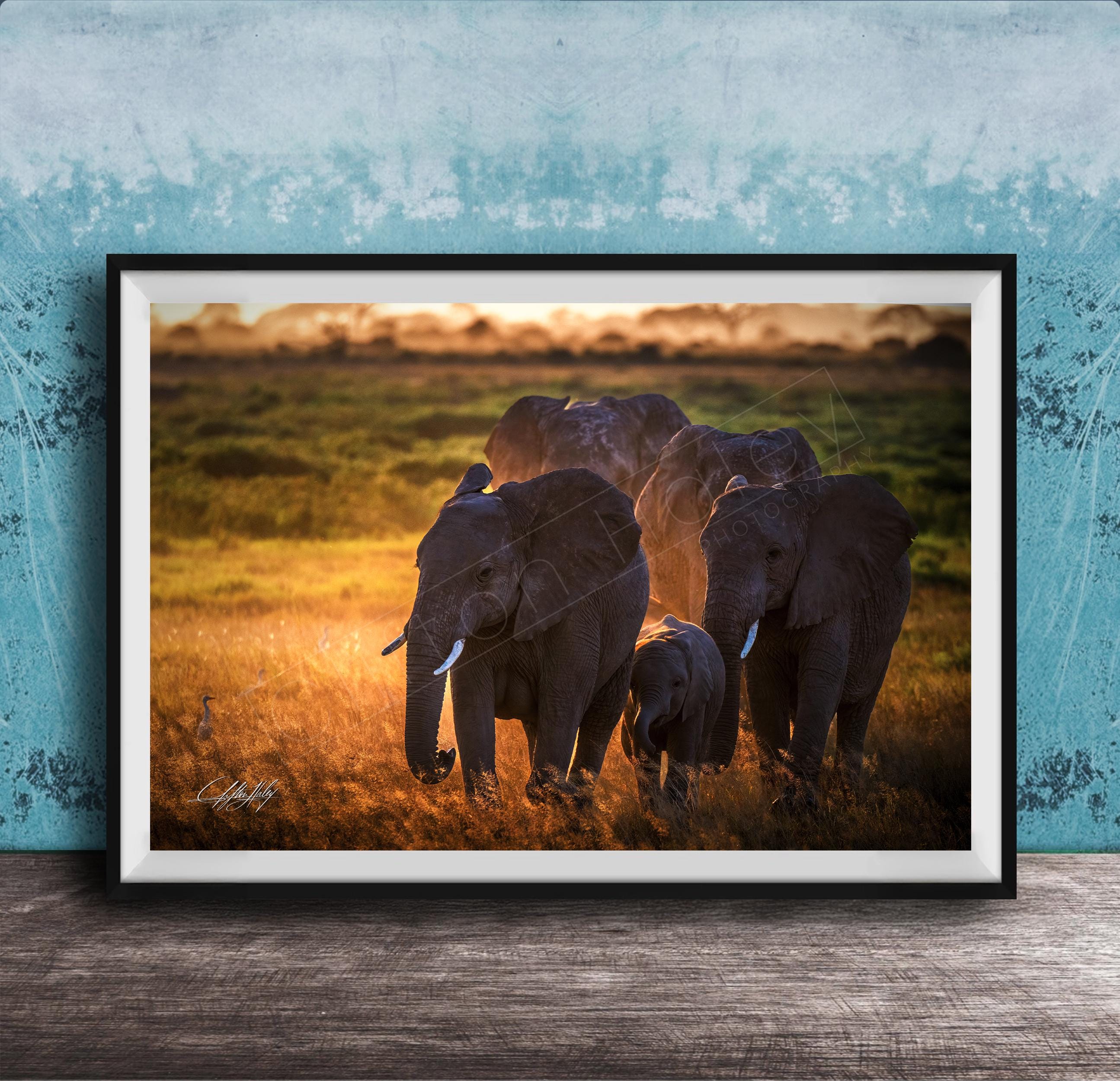 Could a single sunset hold the weight of generations? This exquisite elephant canvas print brings the golden light of Kenya’s grasslands into your home, showcasing the gentle titans of Africa in a moment of quiet strength and enduring family bonds. Inspired by the rich heritage of Maasai country, this artwork tells a story of wisdom, endurance, and wild beauty.