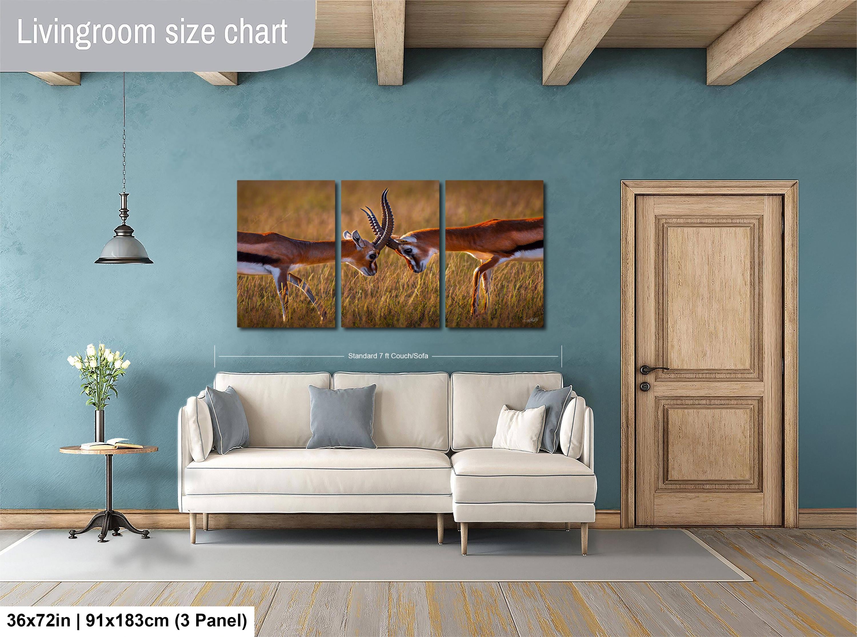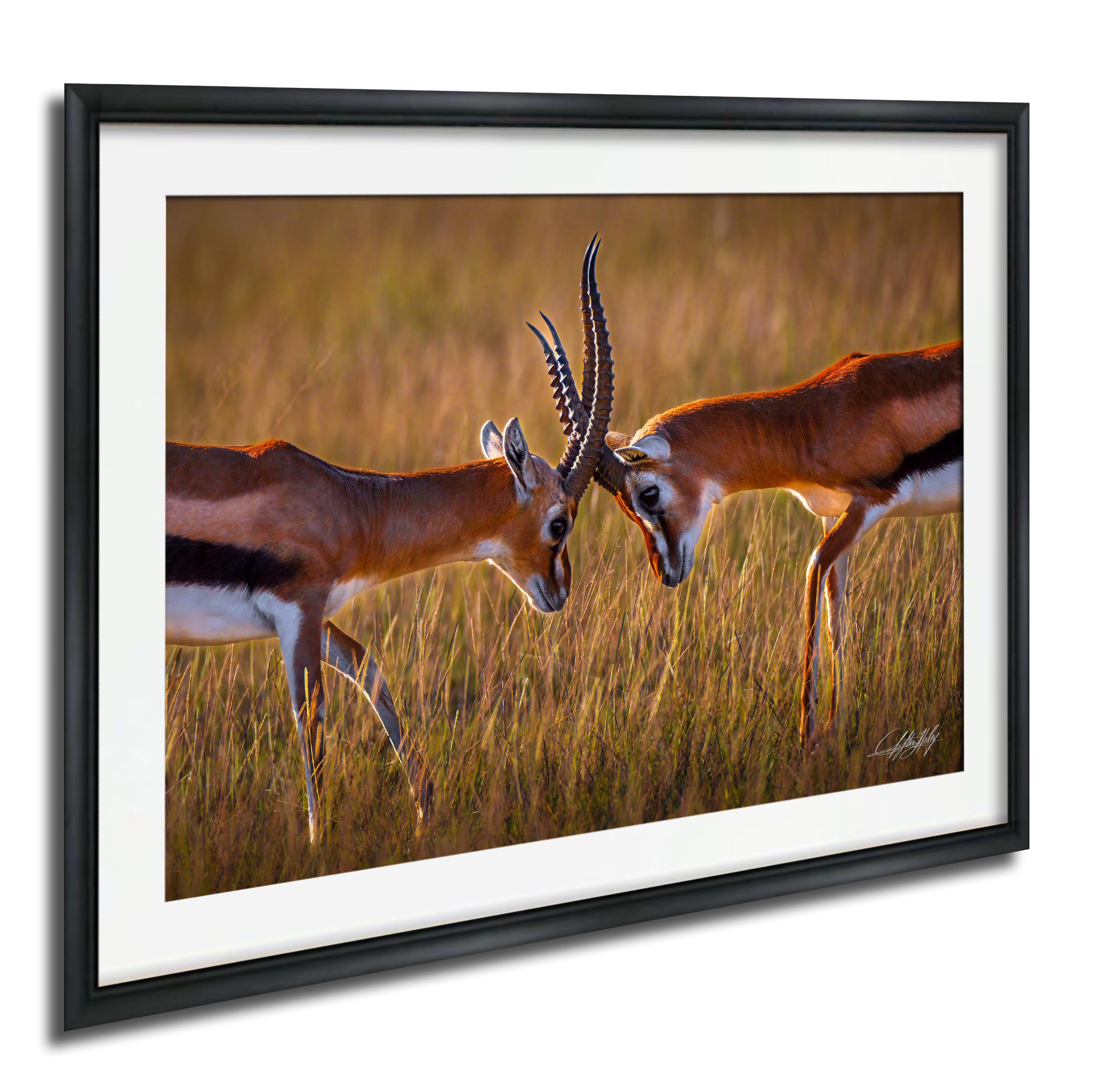 In the golden dawn light of the Kenyan savanna, two Thomson gazelles engage in a fierce yet graceful battle, embodying the wild spirit captured in this Kenya wildlife art piece. Inspired by the vibrant energy of Amboseli National Park, this boho nursery decor print brings a touch of African safari gift charm to your home. Each brushstroke reflects the raw beauty and timeless stories of nature, perfect for lovers of gazelle illustration and maximalist wall art.