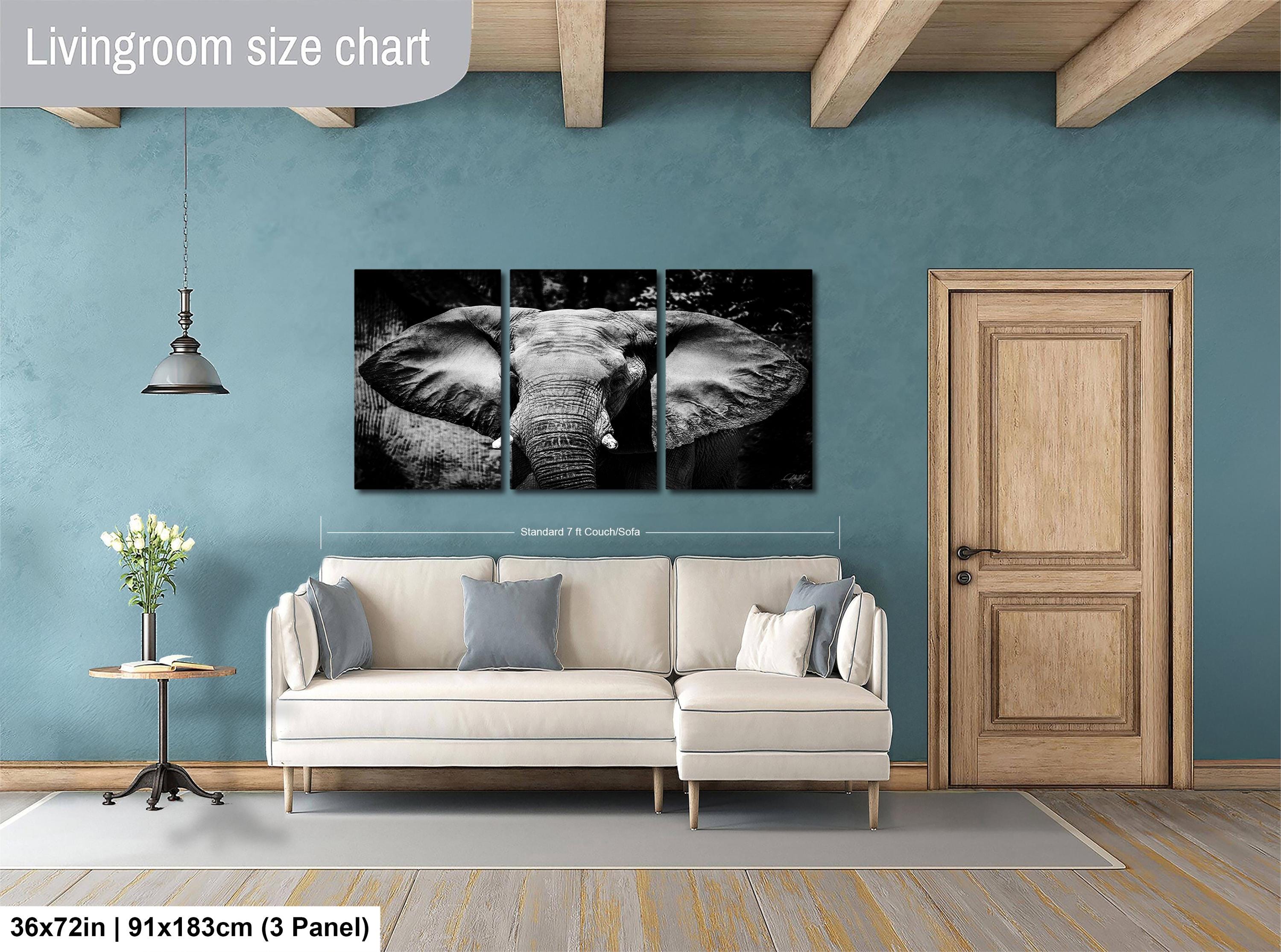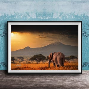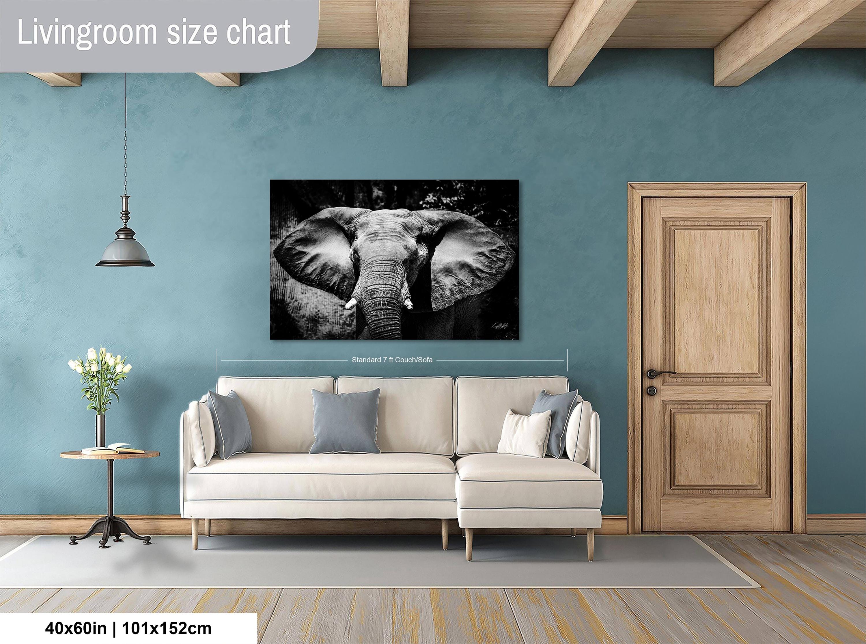 This wildlife landscape print is an ideal decor for those inspired by exotic travel adventures to Kenya, Tanzania, and beyond. The striking black and white photography adds a timeless touch, highlighting the noble trunk mammal and its natural environment. Whether displayed in a living room, office, or safari-themed space, this art piece transforms any room into a haven of adventure and wilderness.