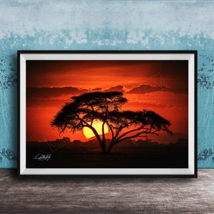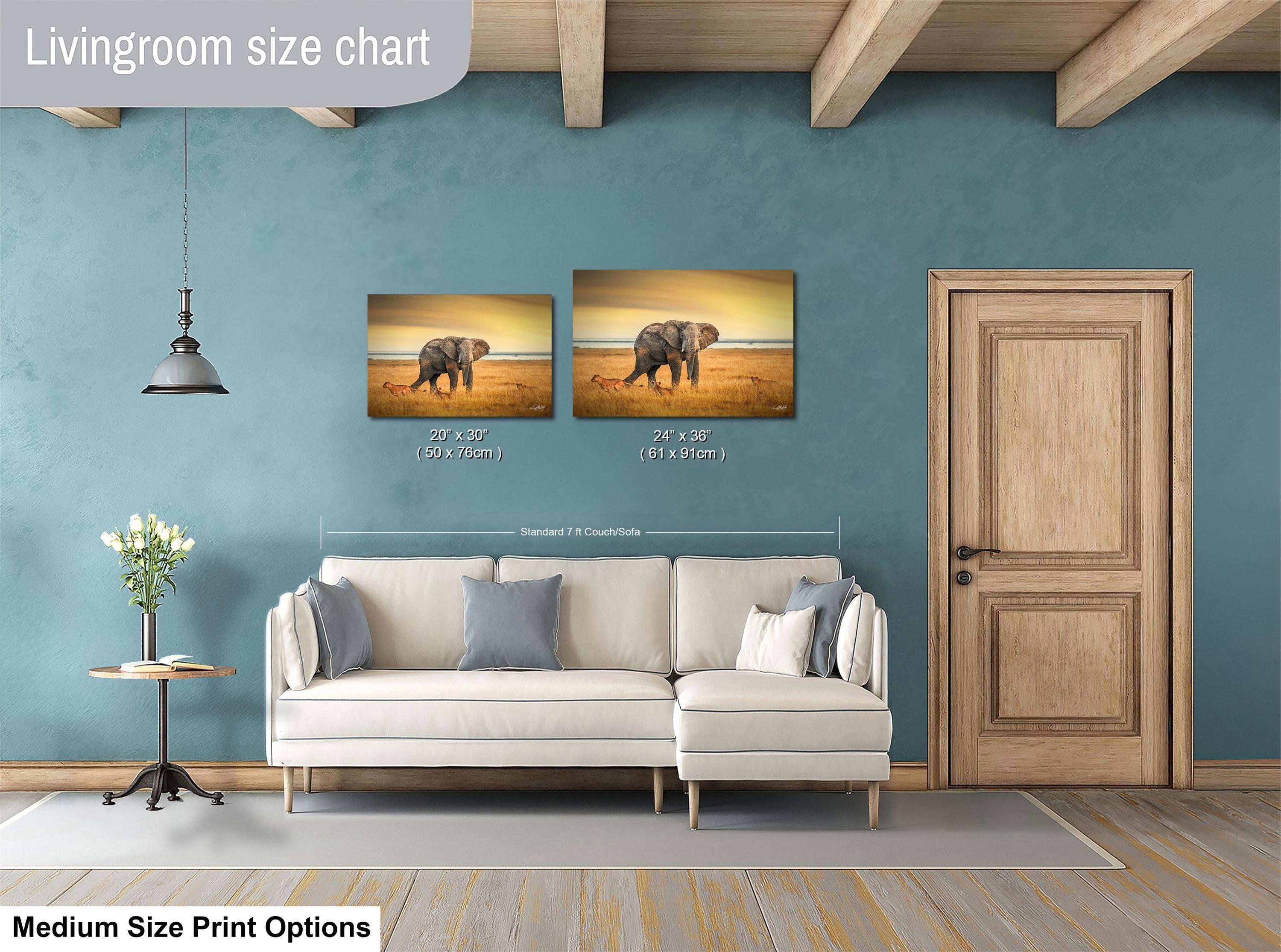 Perfect as a unique wildlife gift or to enhance your space with Africa nature print charm, this canvas mounted art celebrates the fearless grace and beauty of the wild. Add a stunning golden dawn wall art piece to your home or office and embrace the spirit of the African plains.