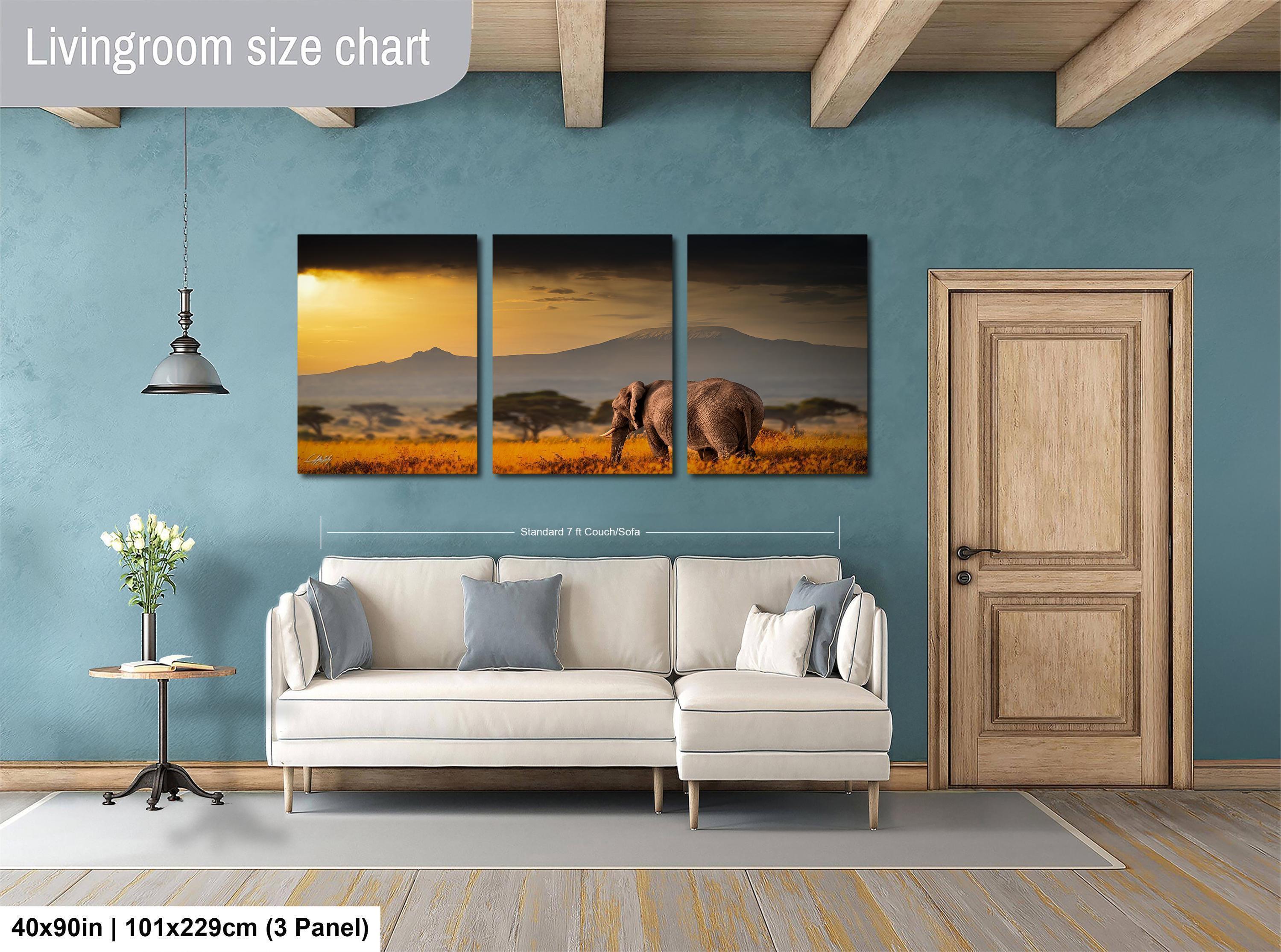 Elephant sunrise wall art print captures the serene beauty of Africa’s wilderness, bringing a touch of rustic safari decor into your home. This fine art piece highlights the majestic African elephant, a symbol of strength and endurance, perfect for nature lovers seeking authentic Kenya wildlife prints.