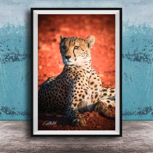 Inspired by the majestic cheetahs of Kenya and the Maasai culture, this artwork embodies endurance, trust, and natural elegance. The vivid design brings maximalist cheetah and wild animal art themes to life, making it ideal over the bed, couch, or as part of your apartment decor.