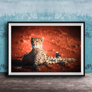 Cheetah animal print captures the essence of the fastest creature on Earth, bringing vibrant safari wall art decor to your space. This bright boho style piece adds a lively accent perfect for apartment bedrooms or any room needing a splash of wild beauty.