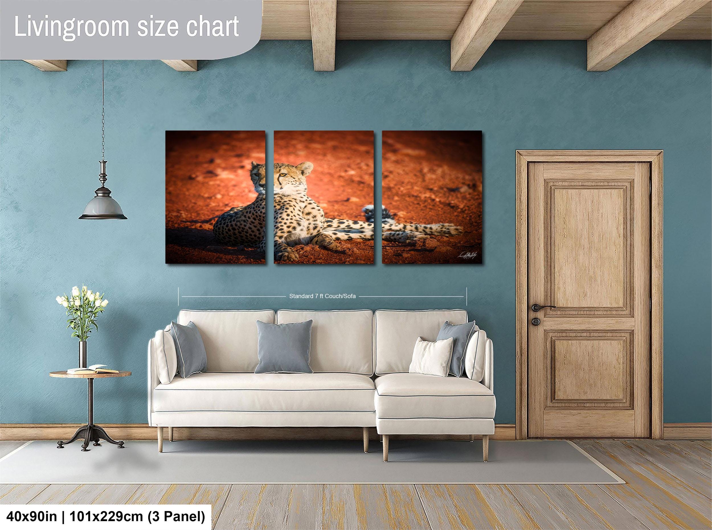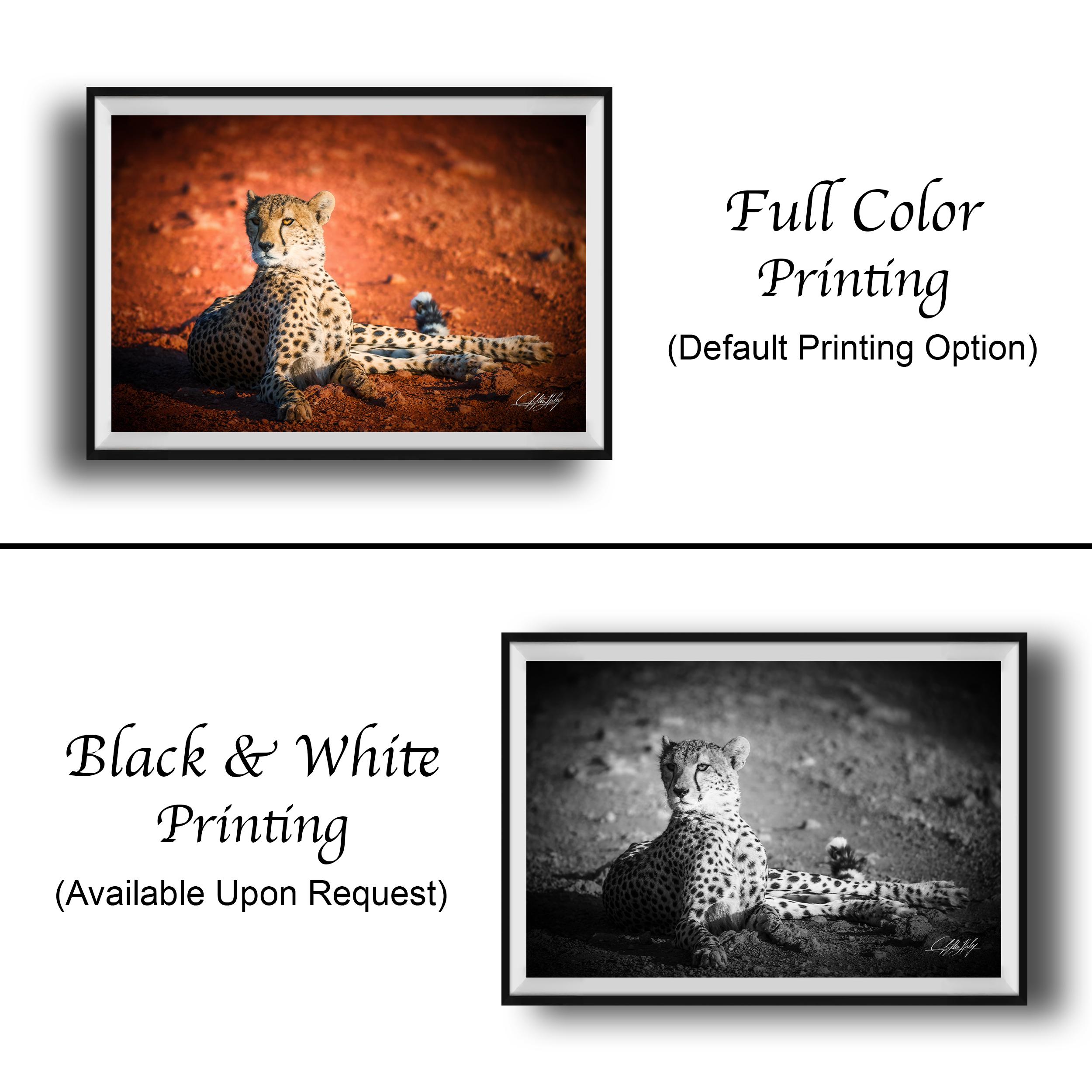 Cheetah art print captures the fierce beauty and grace of Kenya's swiftest hunter in a striking black-and-white maximalist design. This bright safari illustration adds a bold, wild animal art accent perfect for your apartment decor, whether over the bed or couch.