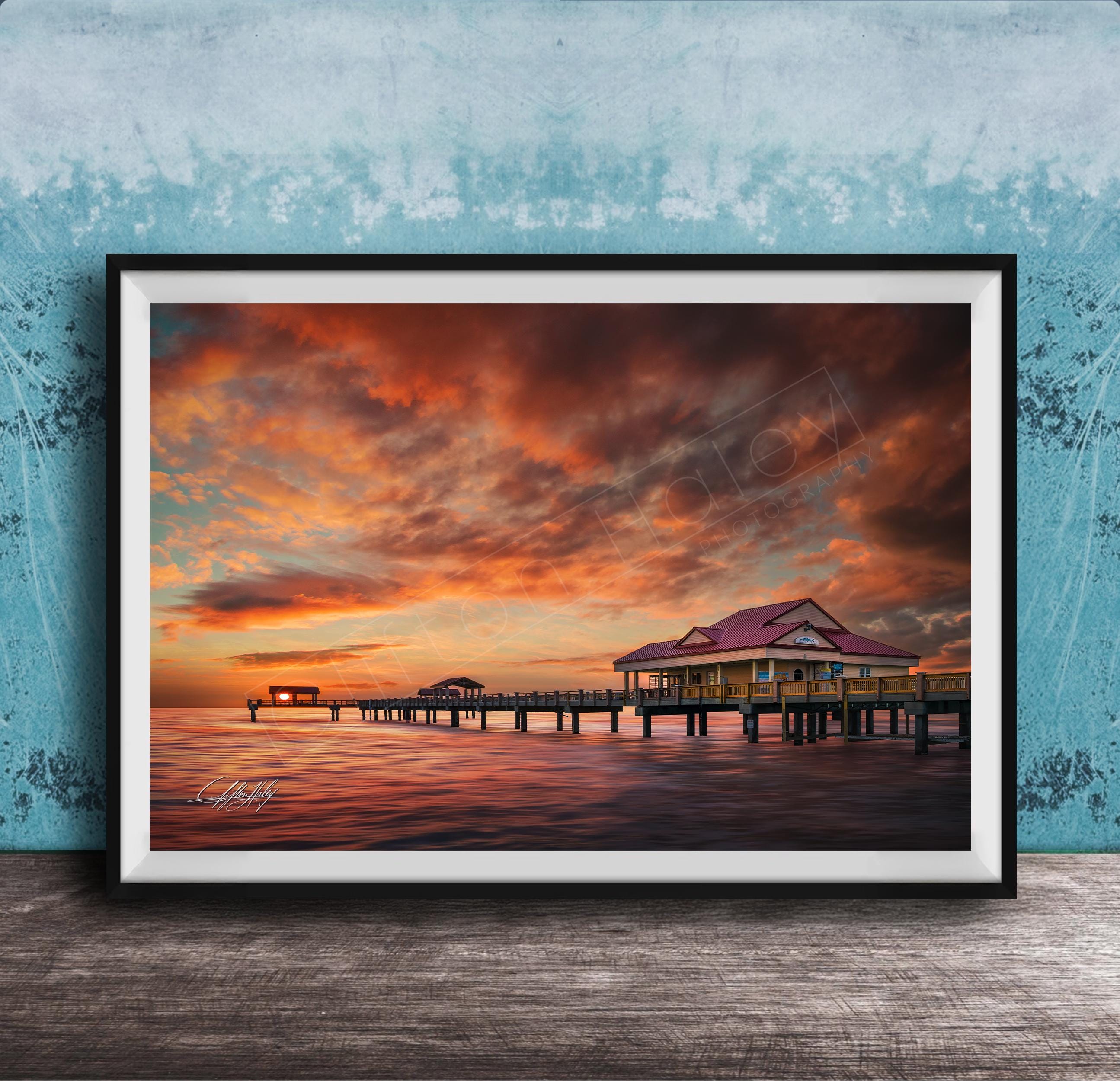 Clearwater Pier 60 captures the magic of Florida’s coastline in a stunning wall art piece, bringing the golden hour’s glow and Gulf of Mexico views right into your home. This Tampa Bay landscape print reflects the serene beauty of salt air decor and the vibrant spirit of beach sunsets.