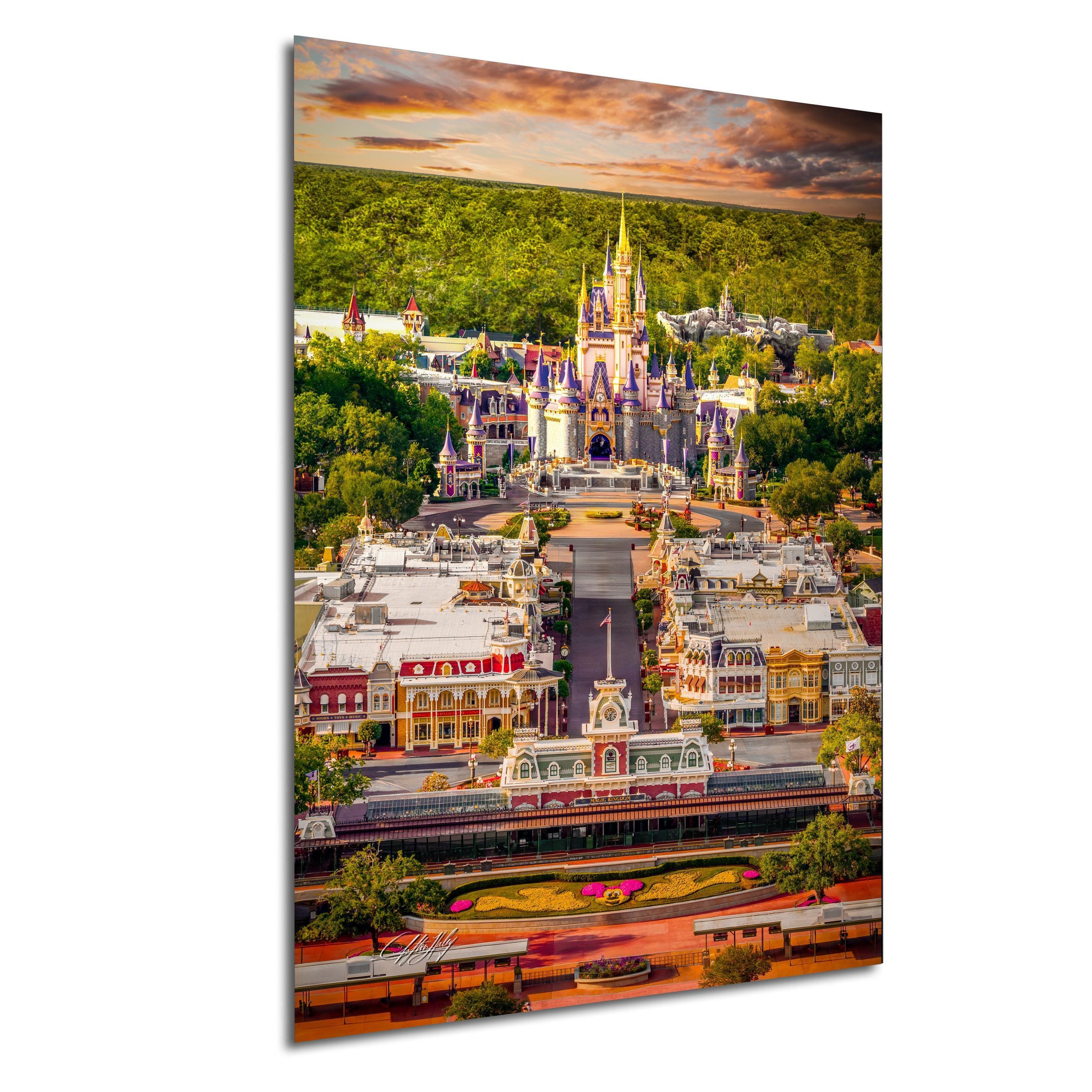 Step into a world where the magical kingdom glows with the soft hues of sunset, capturing the timeless charm of Main Street aglow. This artist-signed print invites dreamers to relive the wonder of Disney World, where every corner holds a story and every light flickers with enchantment. Inspired by the delicate dance of gas lamp lighting and the iconic castle at sunset, this piece brings a touch of whimsy and nostalgia to your space.