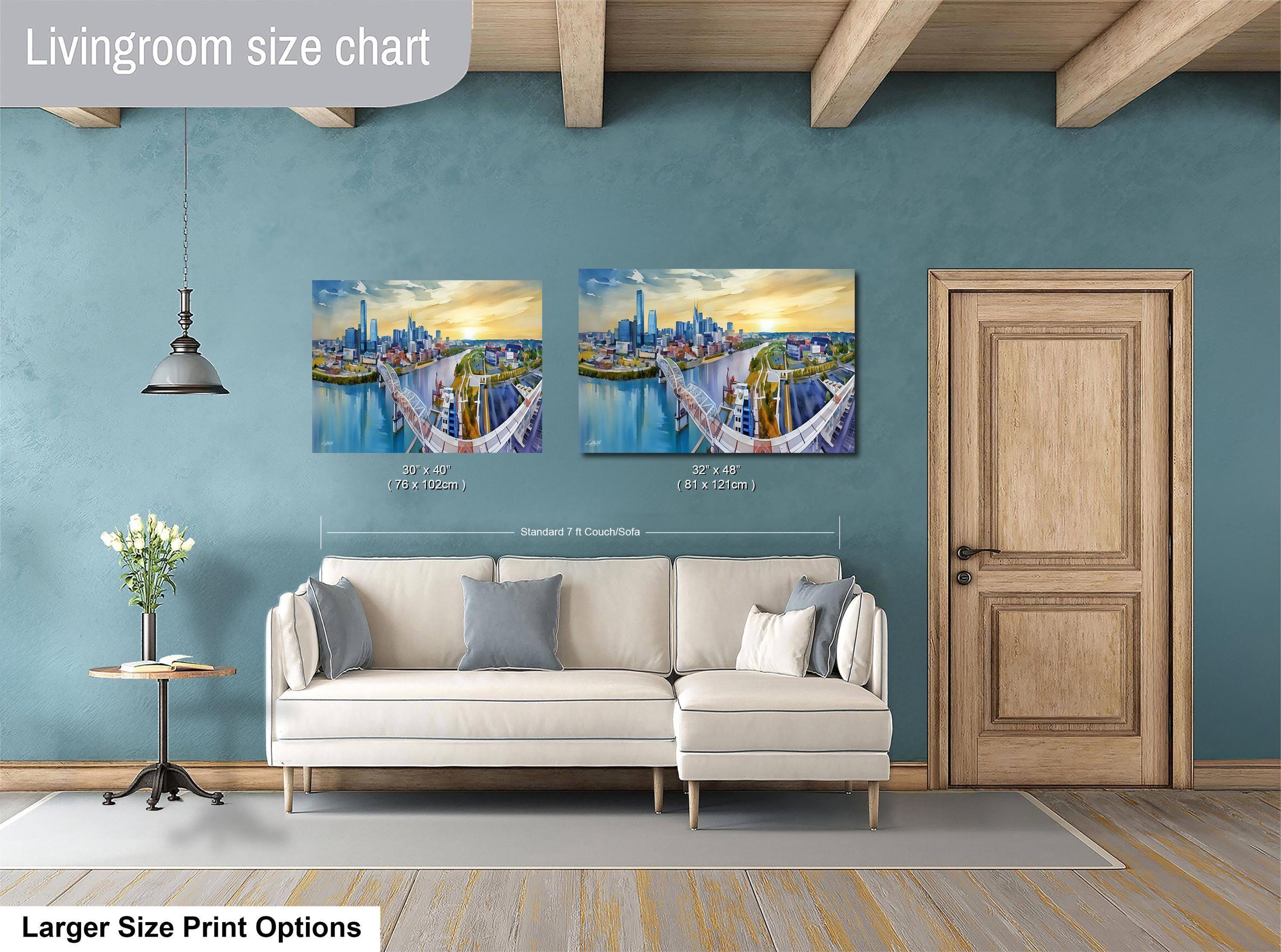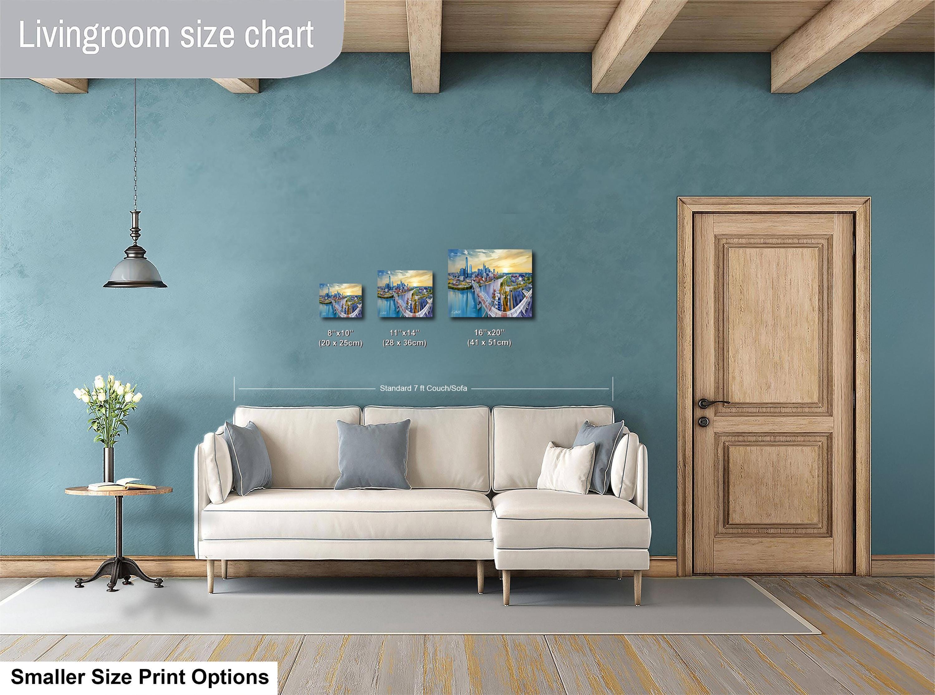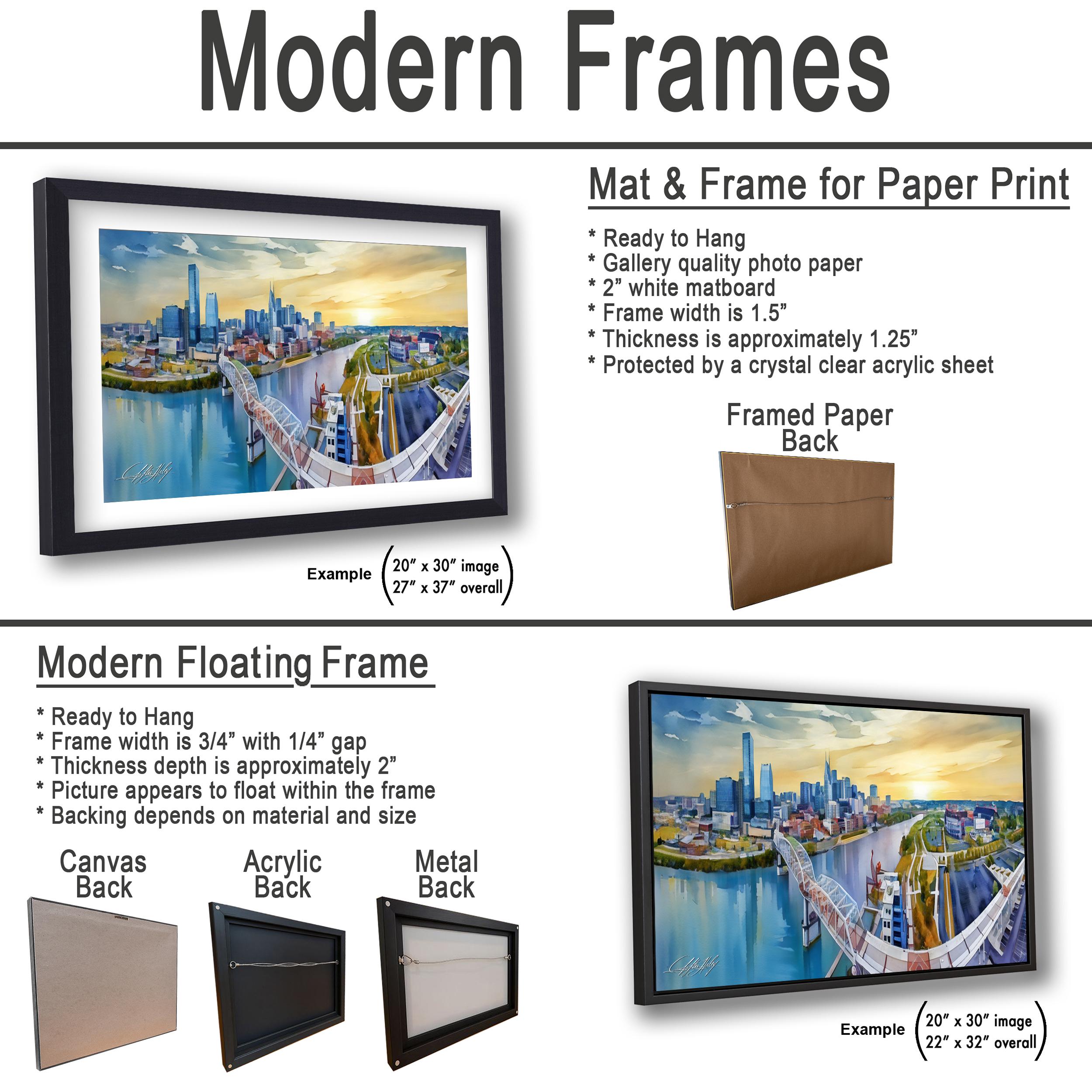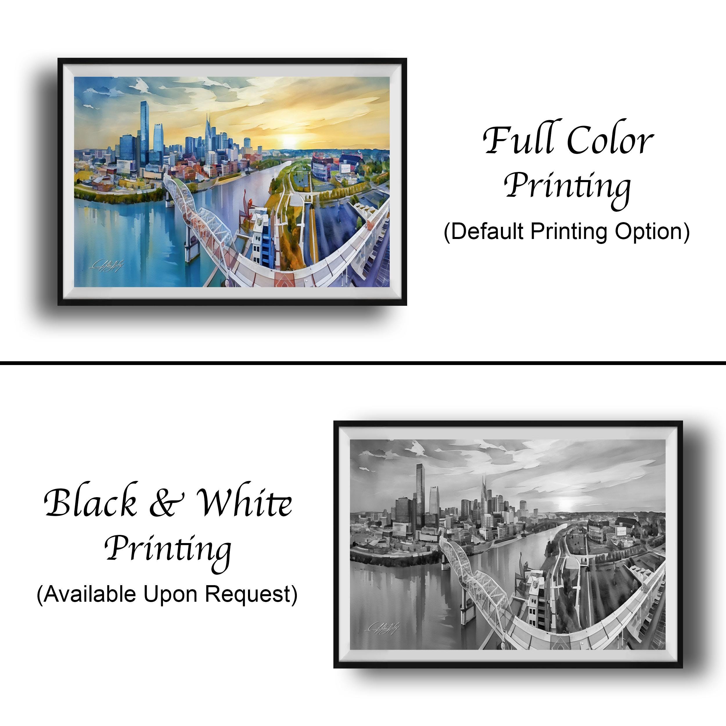 This Tennessee print and Nashville canvas beautifully captures the John Seigenthaler pedestrian bridge over the Cumberland River in stunning watercolor.