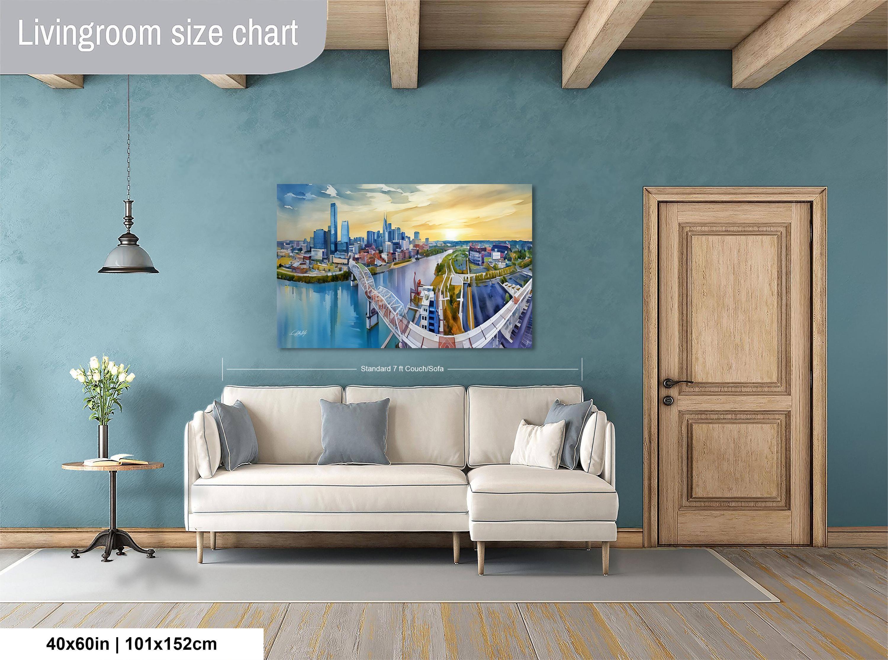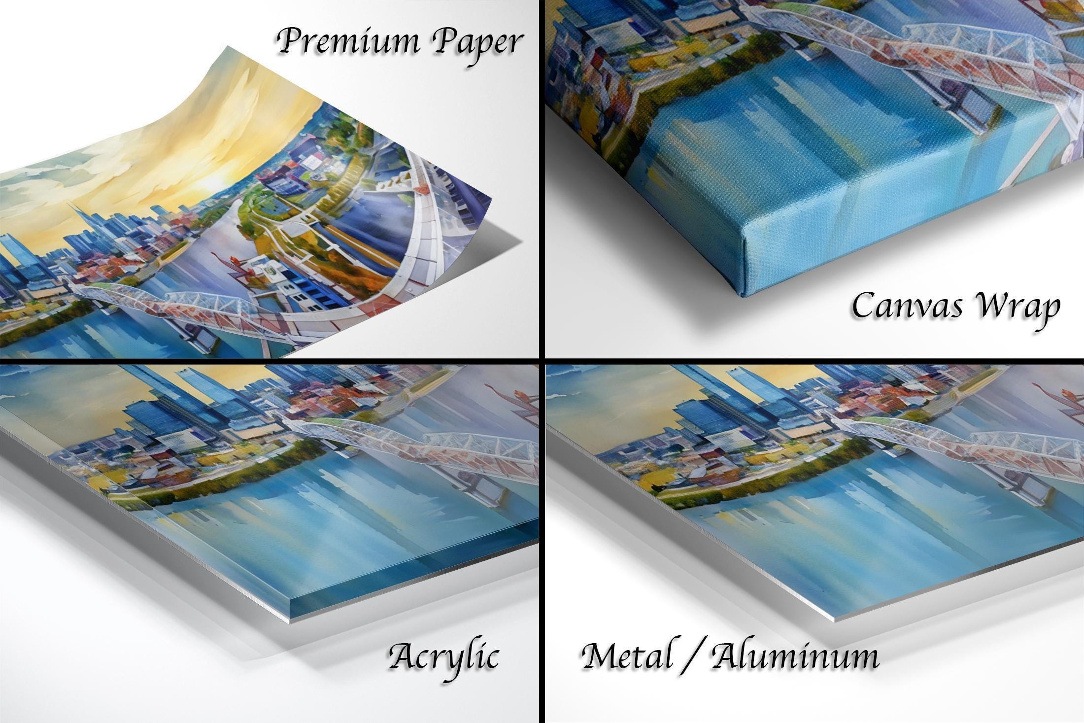 Celebrate the spirit of Nashville with this unique cityscape art that showcases the iconic pedestrian bridge and the vibrant Cumberland River scene. The artwork highlights the proud red seats of Nissan Stadium, home to the Tennessee Titans, blending history, culture, and modern life into one breathtaking piece.