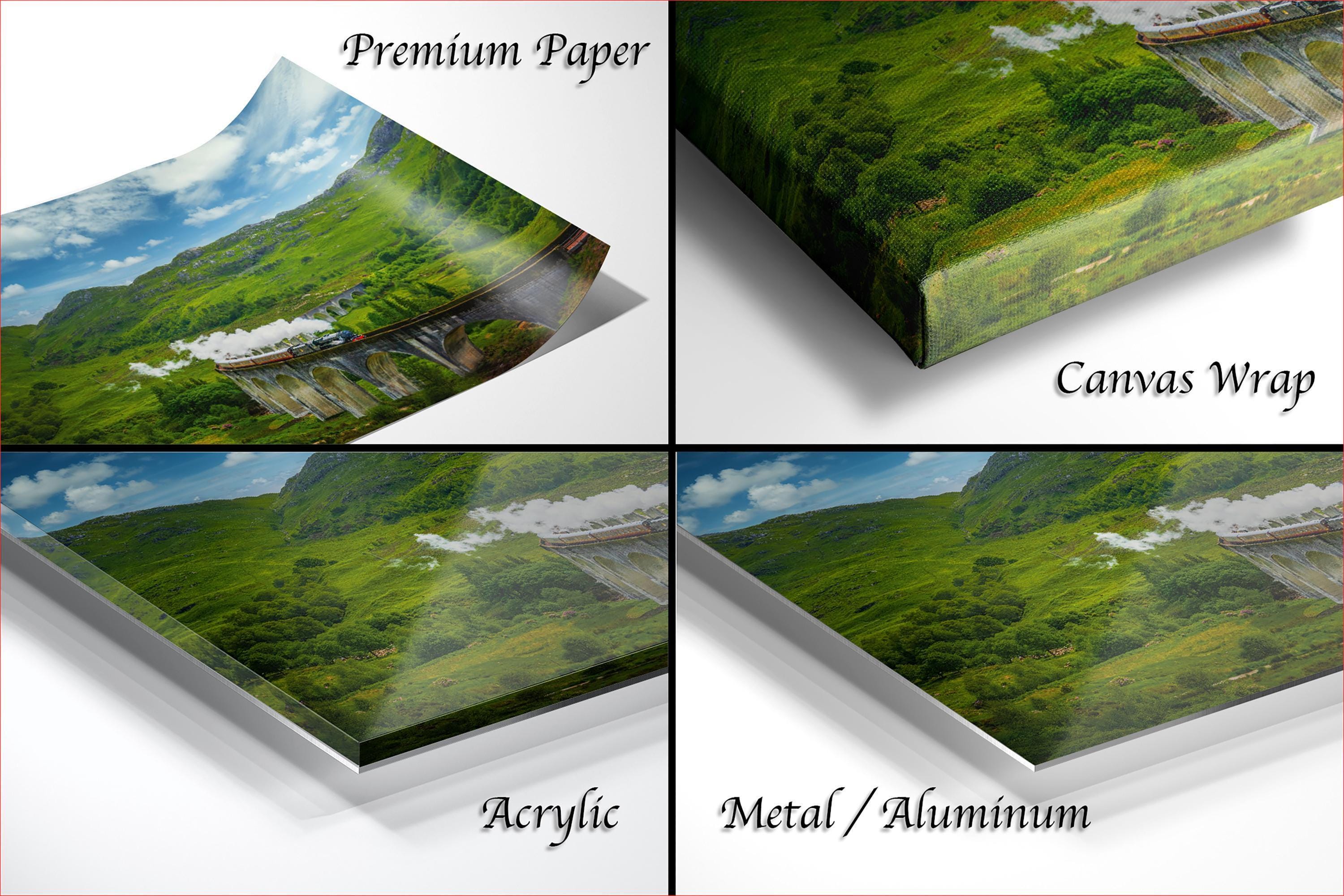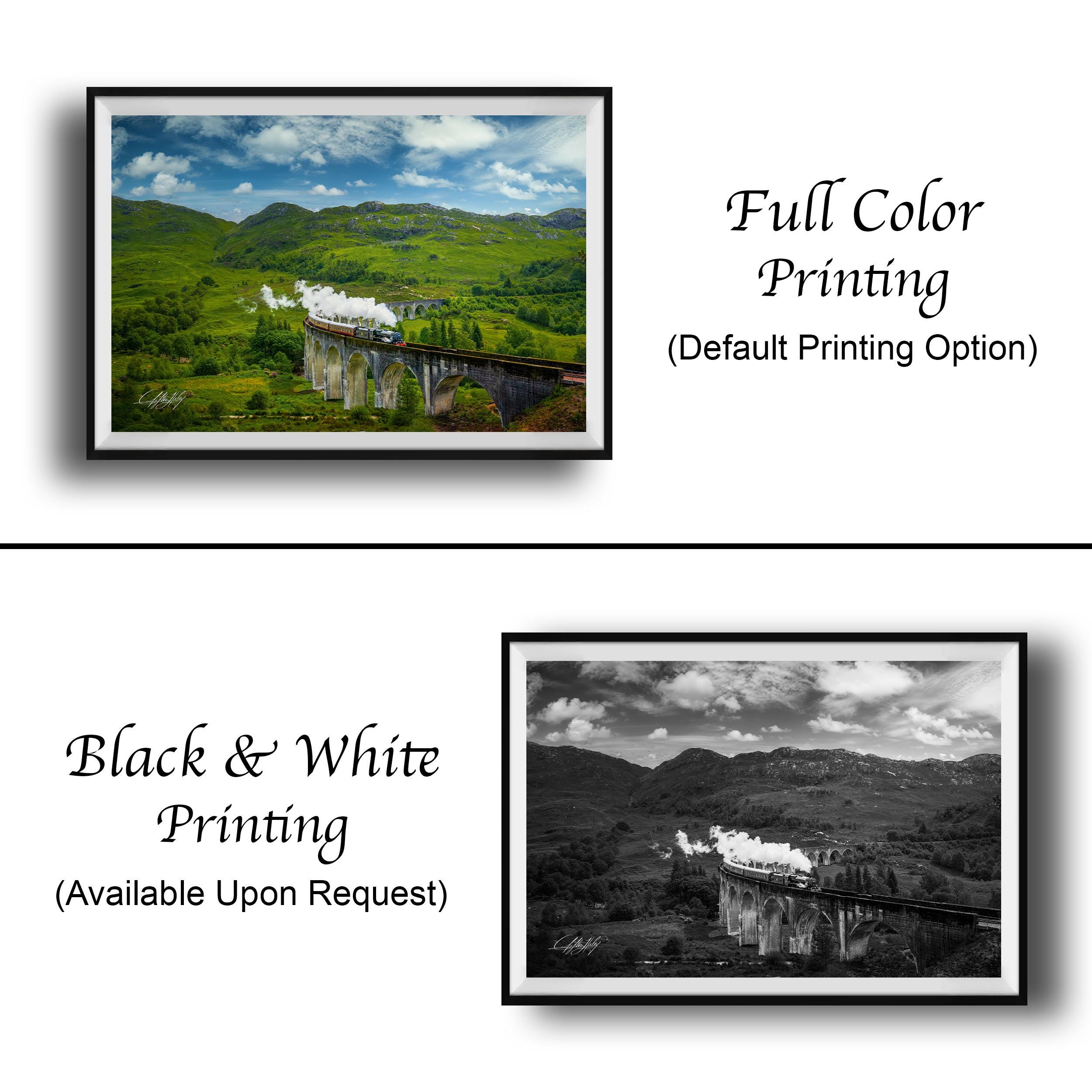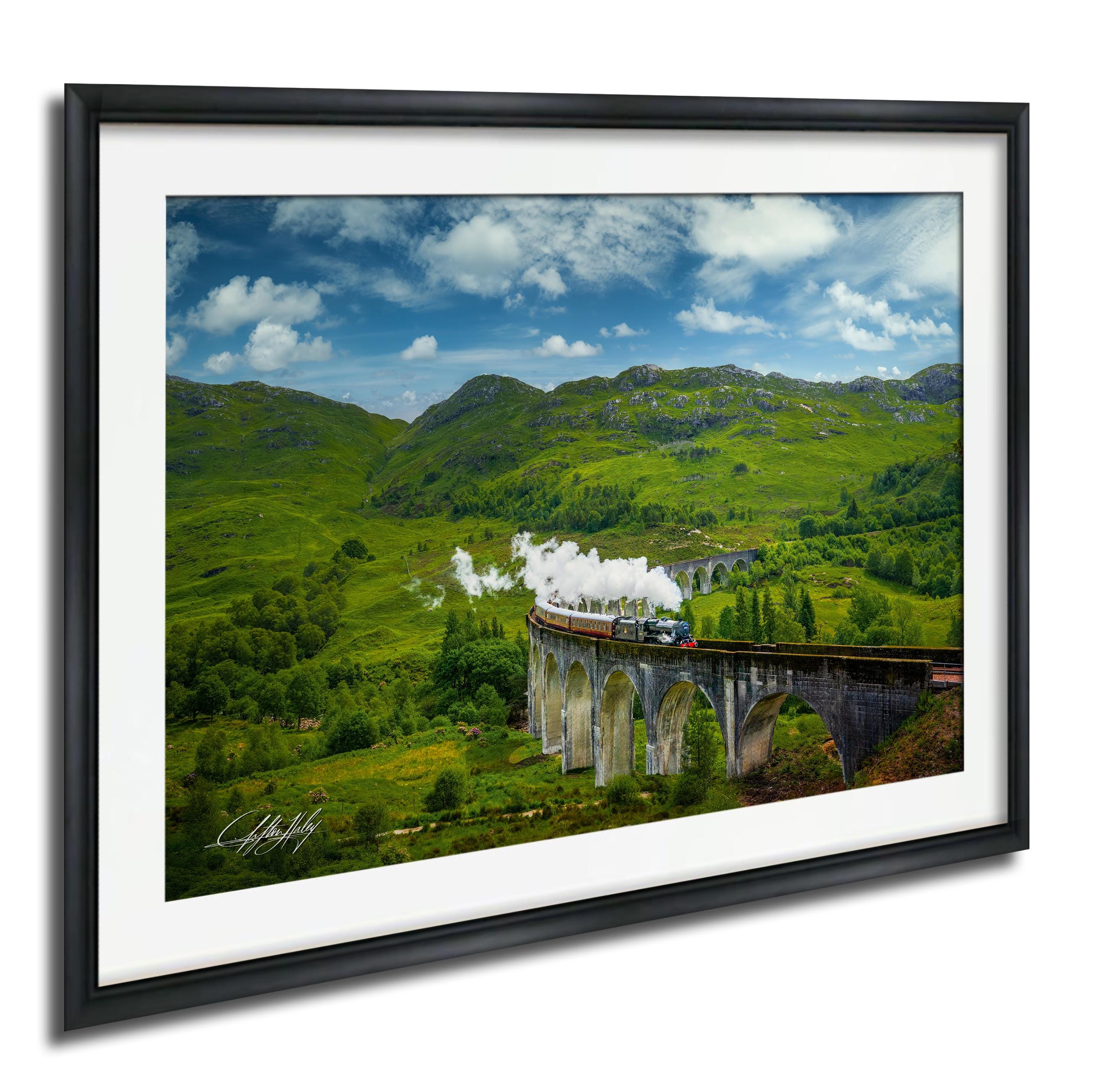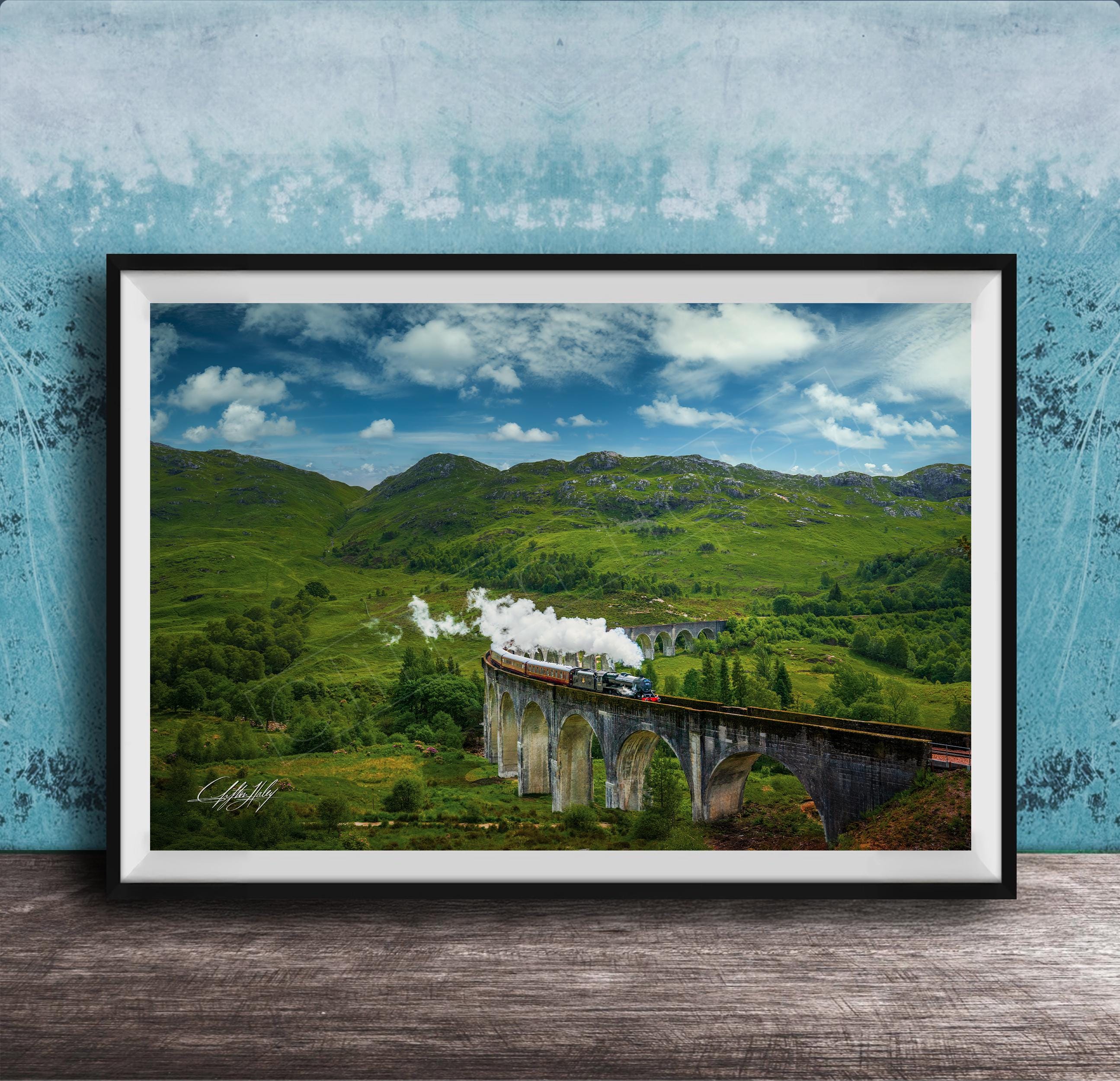 Experience the magic of Hogwarts Express art capturing the iconic Jacobite Steam Train as it crosses the Glenfinnan Viaduct, a legendary scene beloved by Harry Potter fans and travel enthusiasts alike. This artist-signed print brings the spirit of Platform 9 3/4 and Kings Cross Station right into your home.