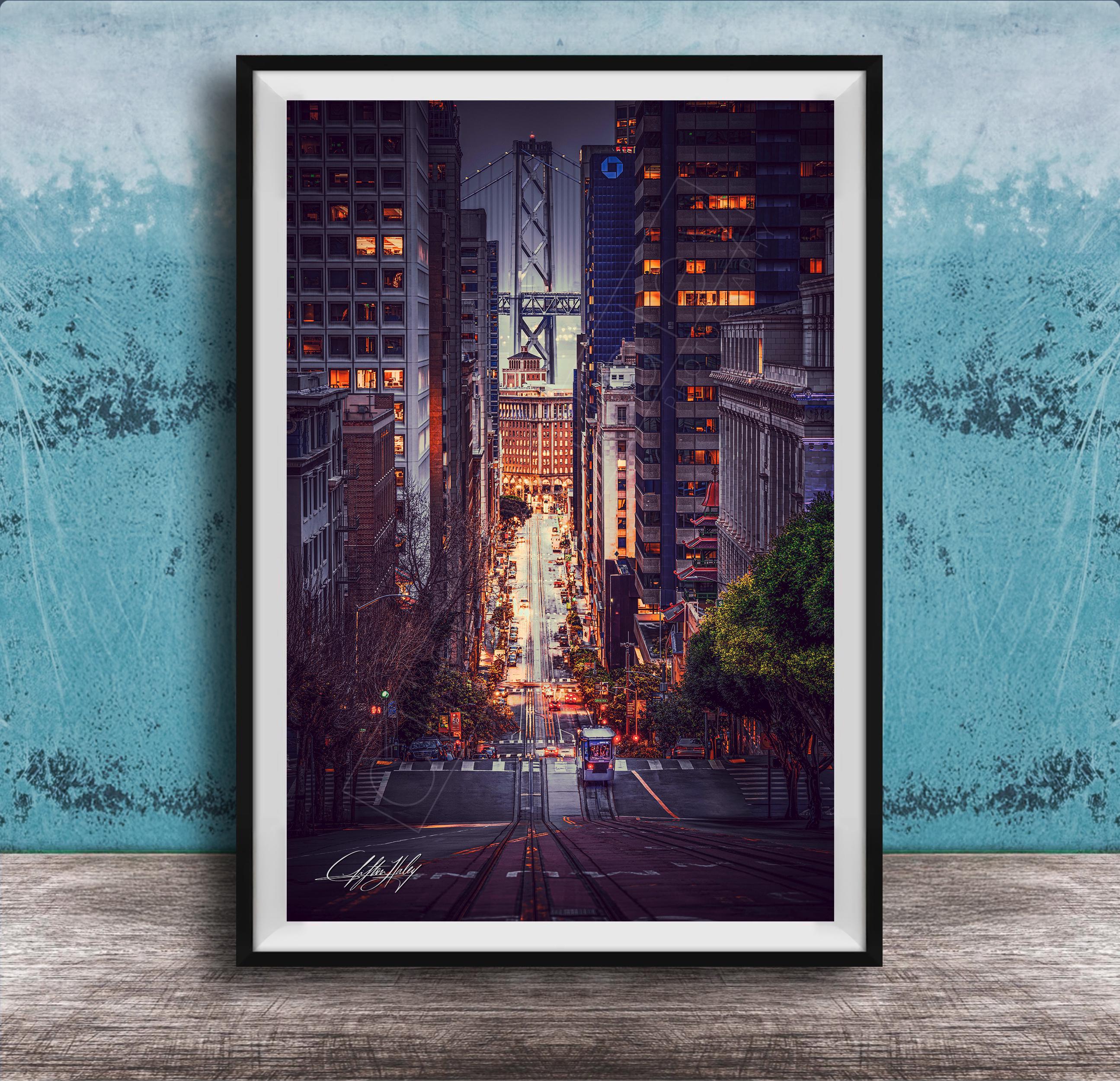 As the sun began to rise over the enchanting city of San Francisco, I found myself standing on California Street, camera in hand, ready to embark on an adventure like no other. My intentions were clear - I aimed to capture a photograph of the iconic Oakland Bay Bridge from this very spot, but in a way that had never been done before. It was my chance to showcase my unique perspective and leave a lasting impression.