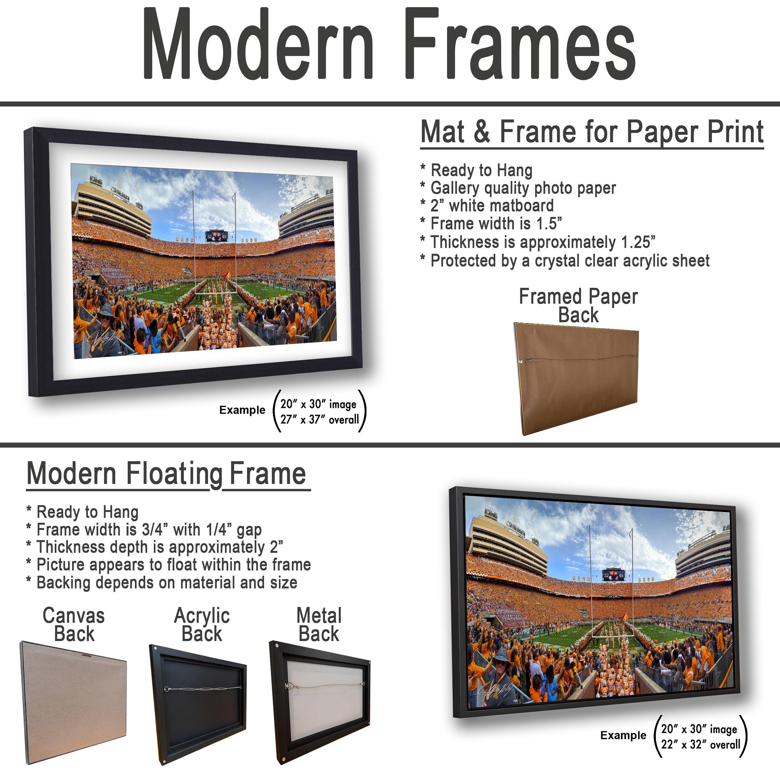 3.1) Only framed paper prints, acrylics and aluminum/metal prints will have a 2" white mat border. 3.2) Canvas prints will be a flush mounted (no mat border) to the frame.
