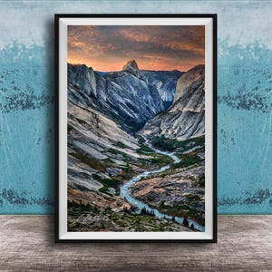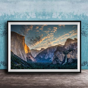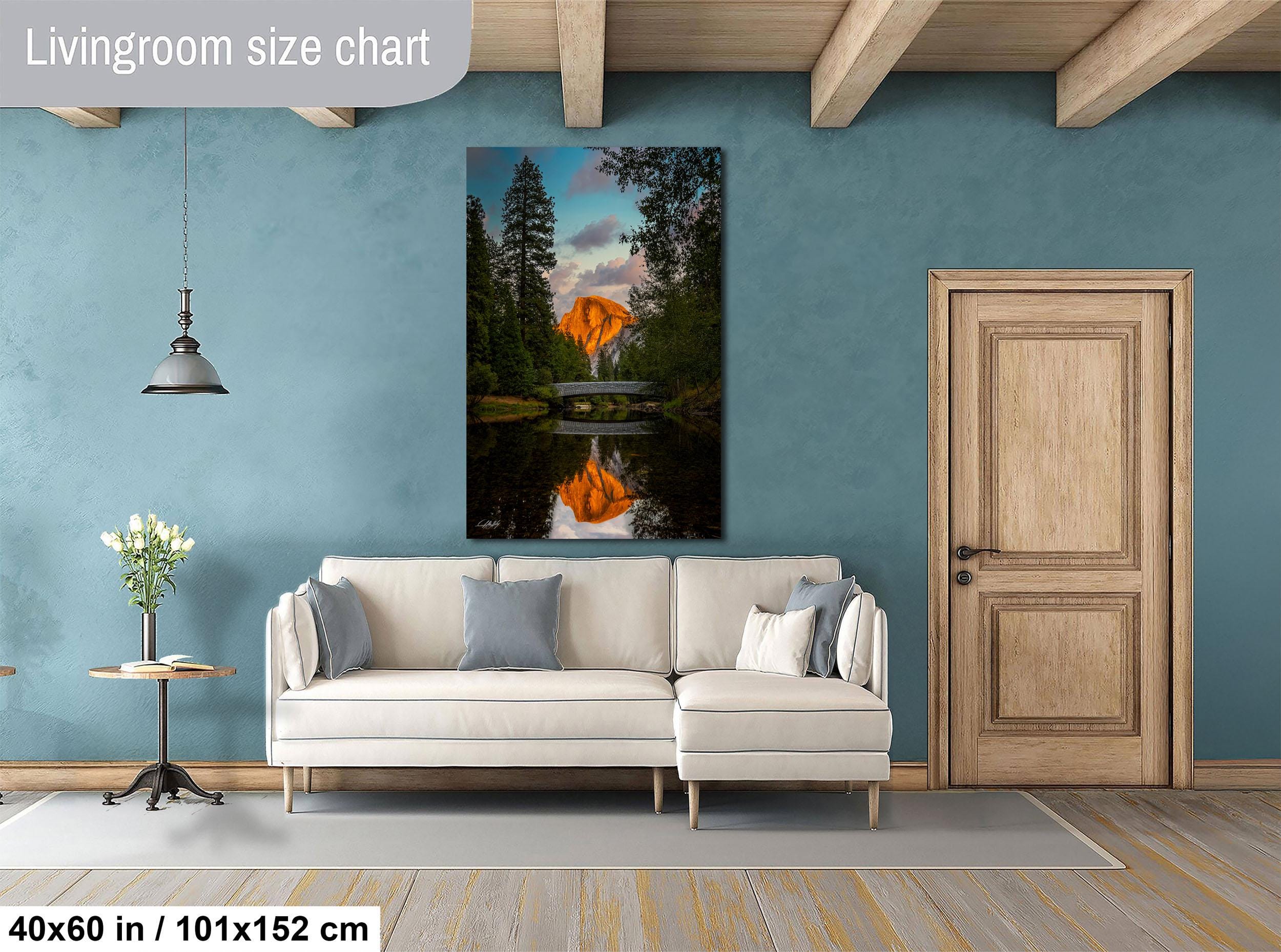 This fine art photography print brings the magic of Yosemite’s iconic landscape into your home, celebrating the glacier-carved dome and tranquil river scene bathed in golden hour light. Perfect as a custom Yosemite art gift or rustic cabin decor, it’s a stunning tribute to the national park’s timeless allure.