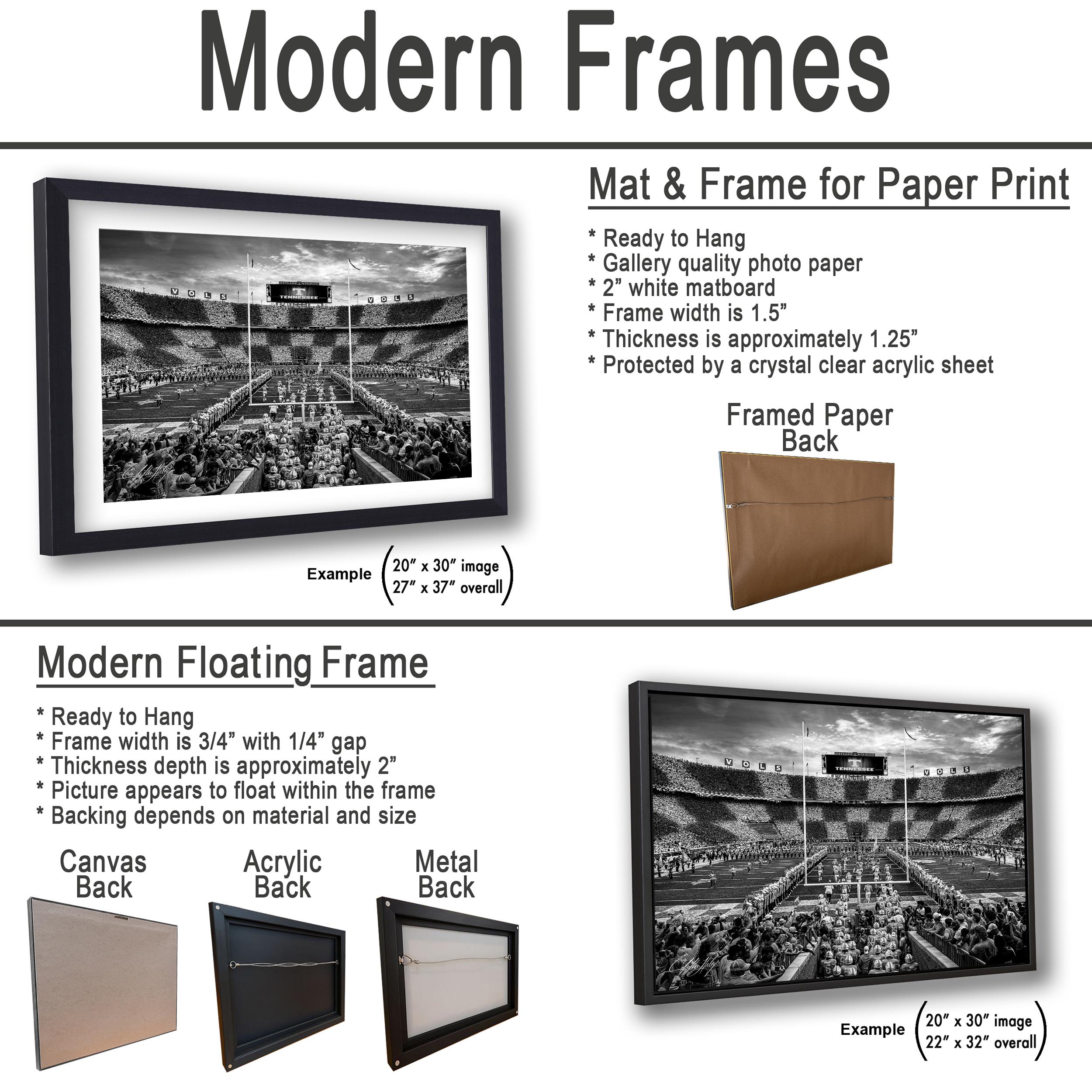 • Authentic stadium photography showcasing Neyland Stadium’s checkerboard end zones • Dimensions and materials vary by product type; choose from framed paper prints, acrylics, aluminum/metal prints with a 2" white mat border, or flush-mounted canvas prints • Artist’s signature in the bottom corner certifies the artwork’s authenticity