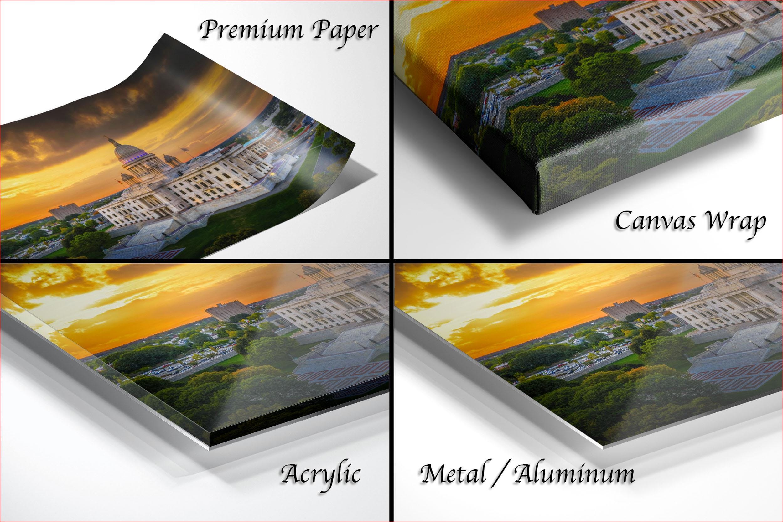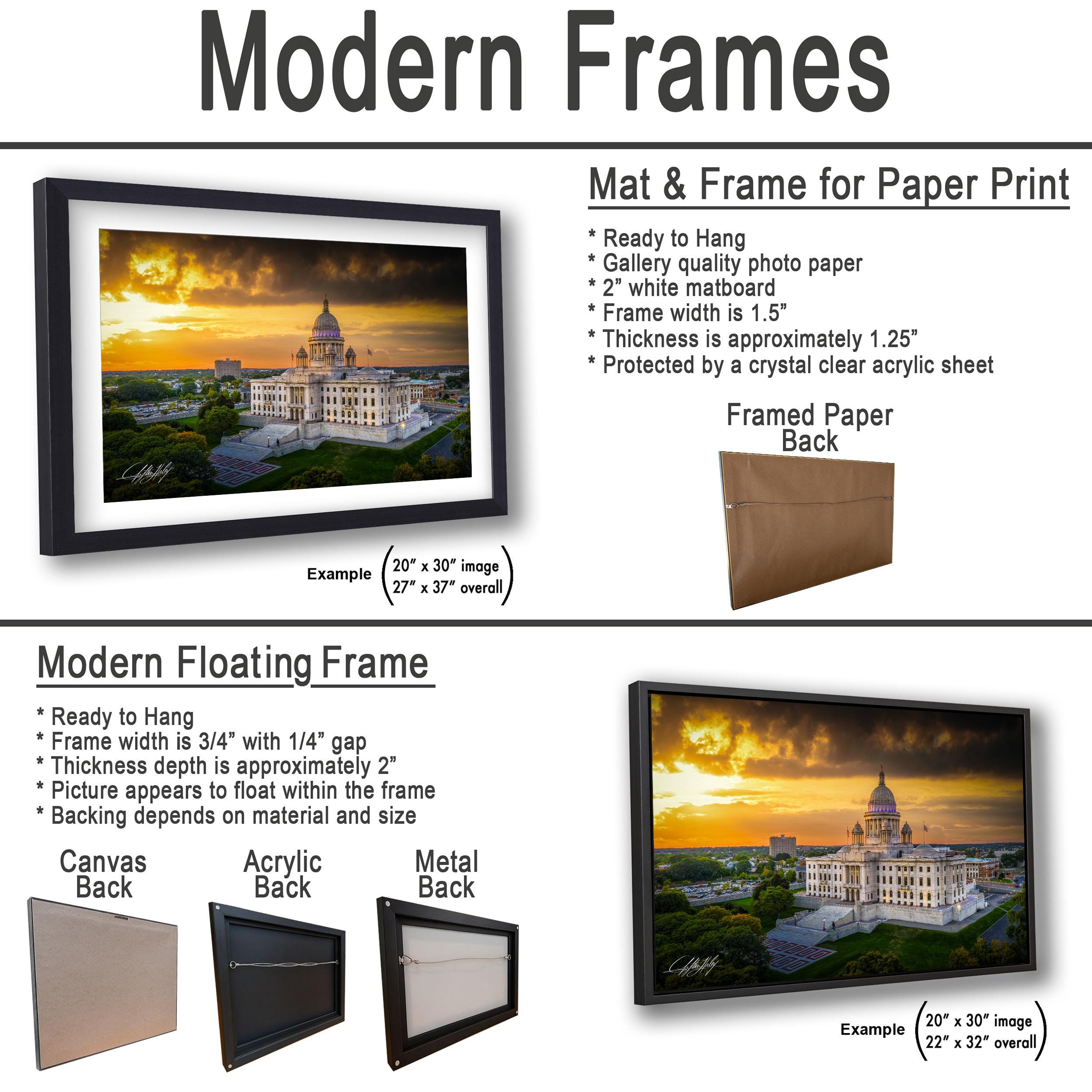 3.1) Only framed paper prints, acrylics and aluminum/metal prints will have a 2" white mat border. 3.2) Canvas prints will be a flush mounted (no mat border) to the frame.