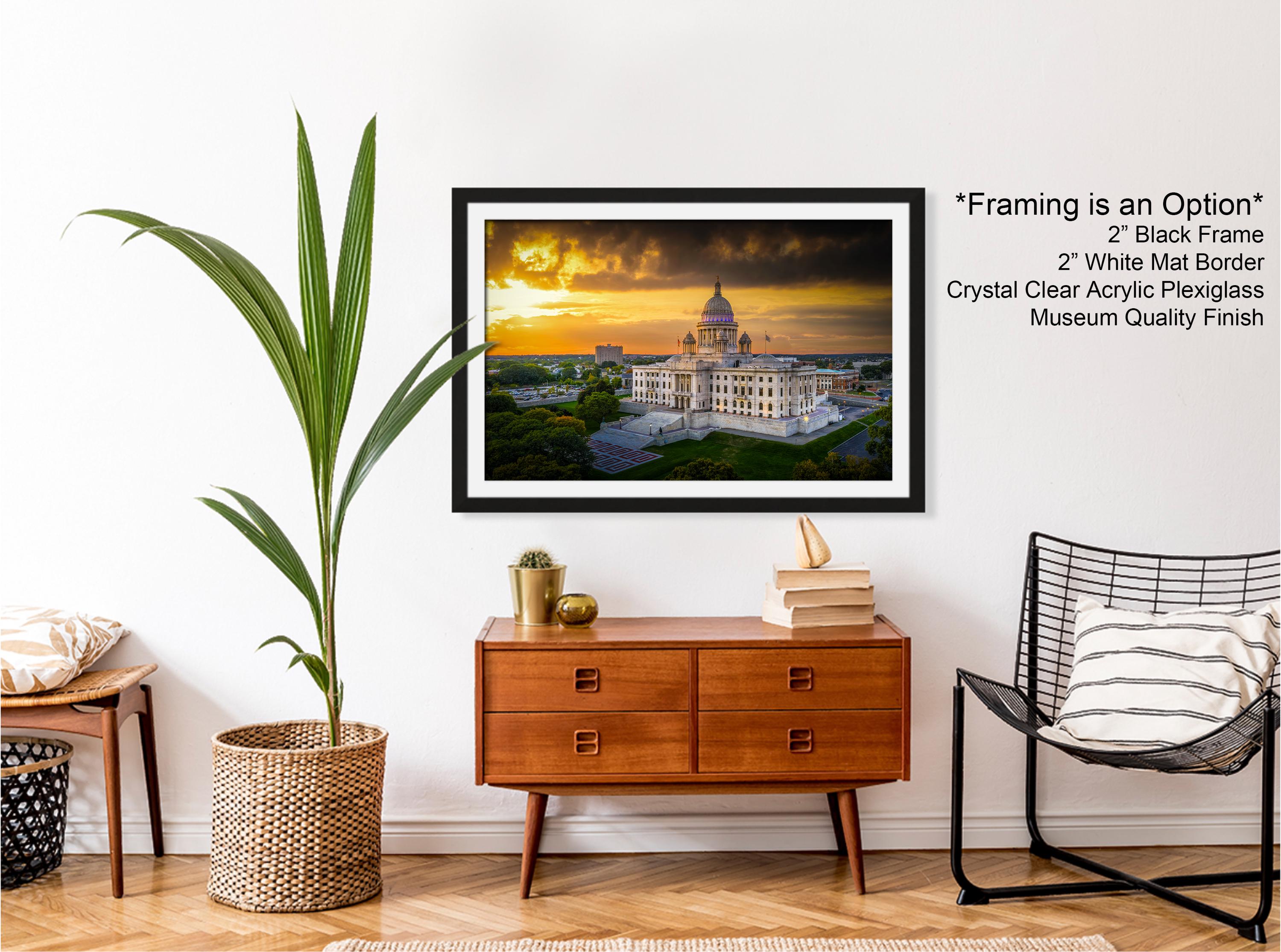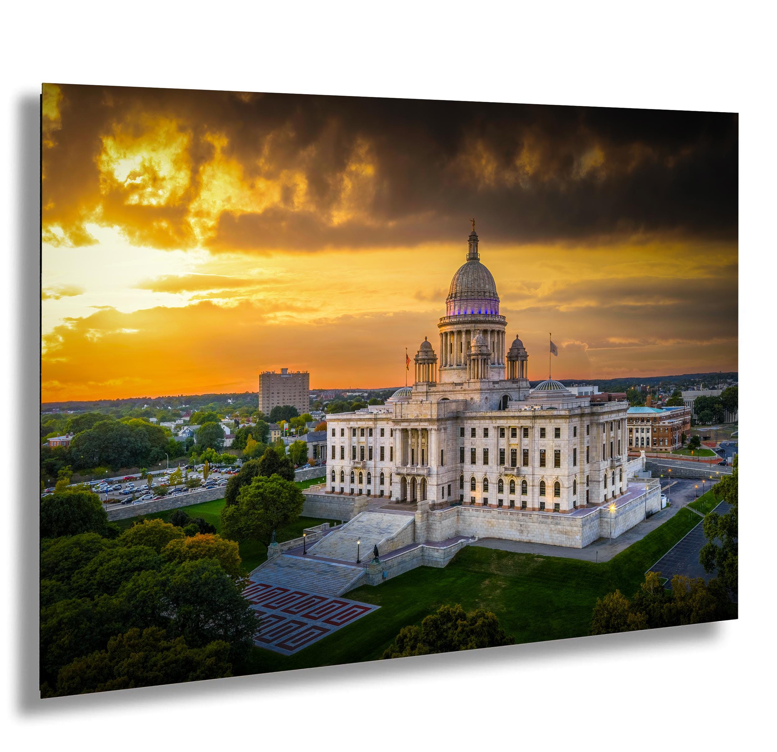 Known as “The Renaissance City,” Providence has long been a cradle of innovation and defiance, its Capitol echoing that spirit in Beaux-Arts elegance since 1904. Capturing this sunset print was no easy feat. The light danced wildly, fading fast. I raced time to frame the shadows and the story. But then it happened, the marble turned to gold, the sky burned with beauty, and I pressed the shutter. This isn’t just New England wall art, it’s a reminder of resilience, of identity carved in stone. Photographing the Capitol at sunset in Rhode Island was a chance to feel the pulse of a people who’ve always stood tall.