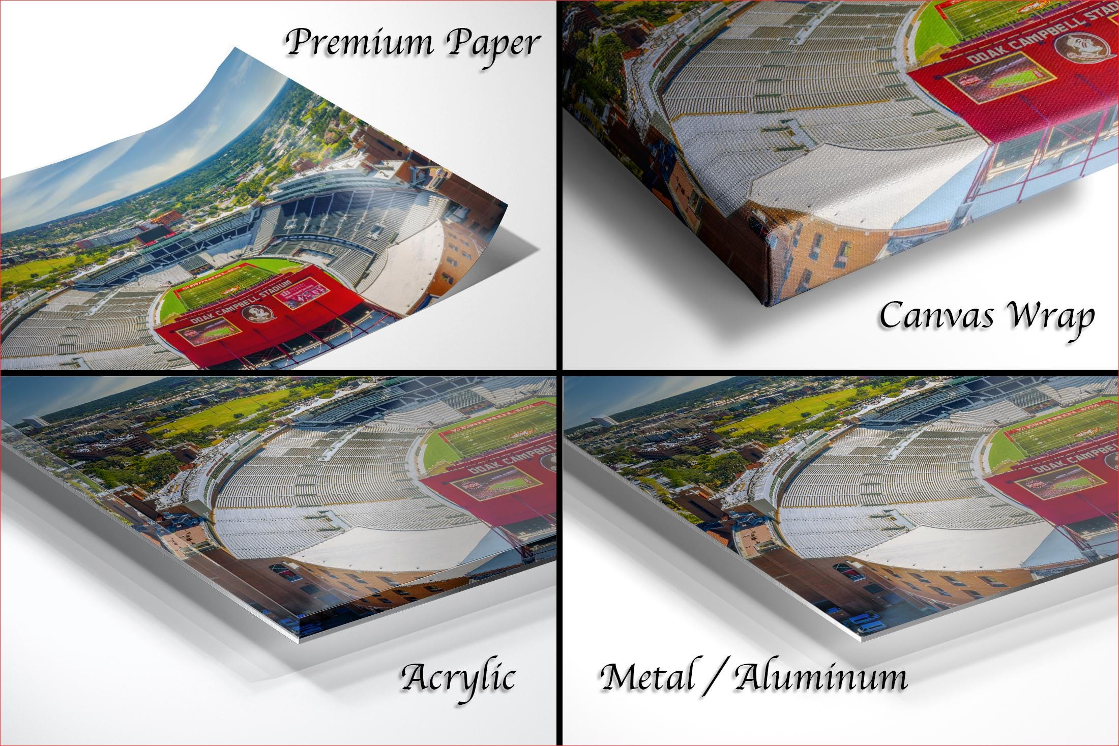 3.1) Only framed paper prints, acrylics and aluminum/metal prints will have a 2" white mat border. 3.2) Canvas prints will be a flush mounted (no mat border) to the frame.