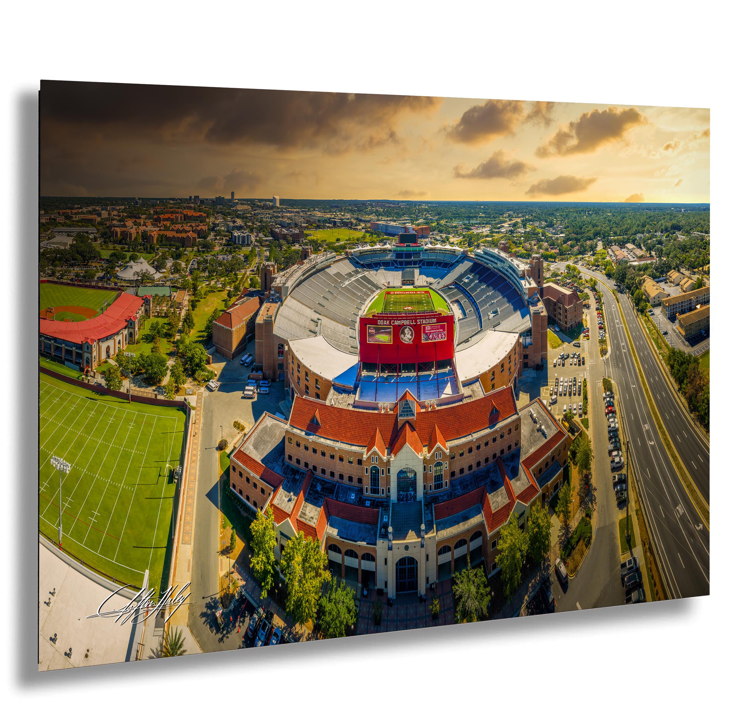 Opened in 1950, this “castle of the South” now stands as a monument to greatness, woven into the fabric of Florida State University. The stadium—part battleground, part cathedral—reflects the heartbeat of a community built on legacy. It was an incredible experience, photographing Doak Campbell at sunset and immersing myself in the vibrant energy of Tallahassee. This piece invites you to bring home that same spirit, to remember, to dream, and to belong.
