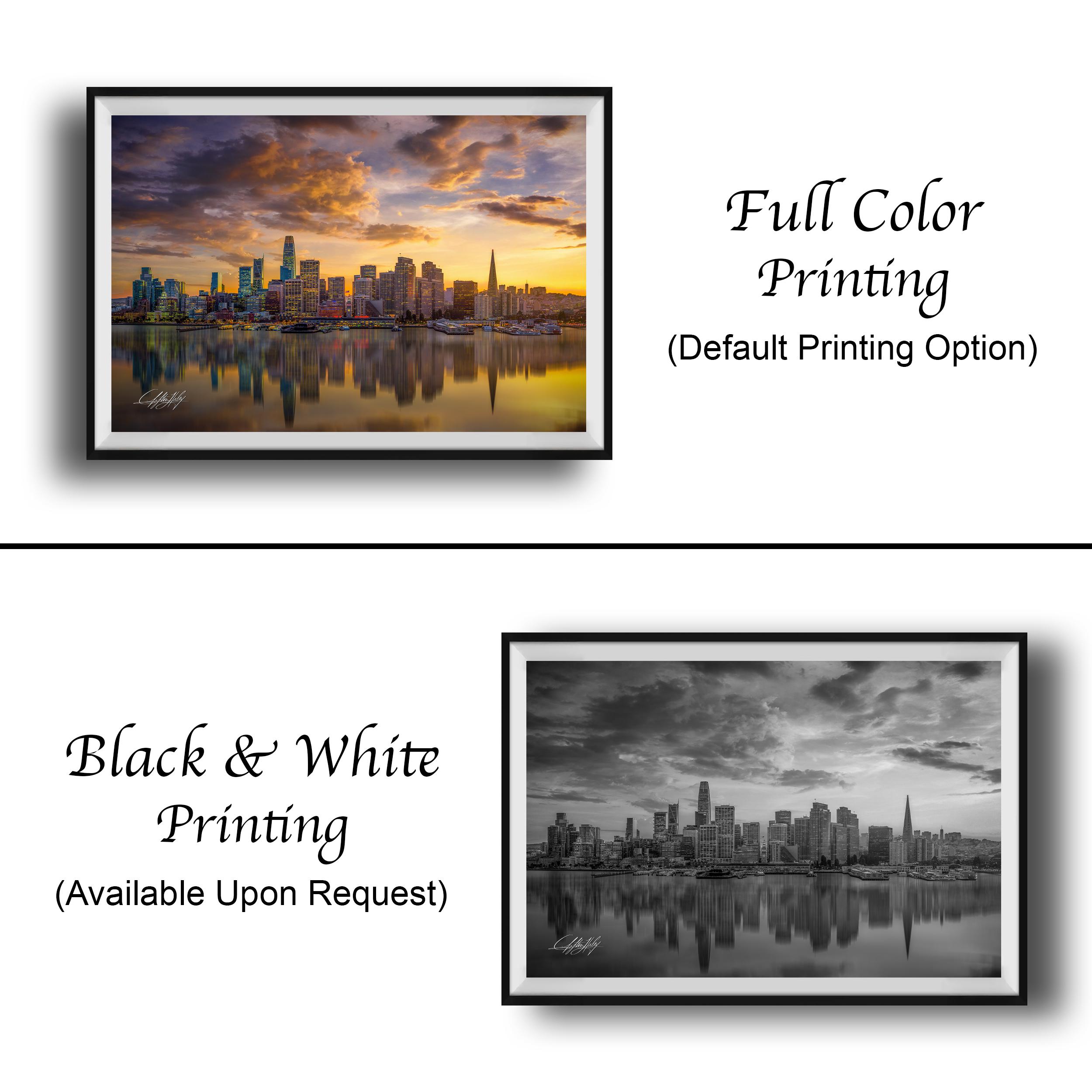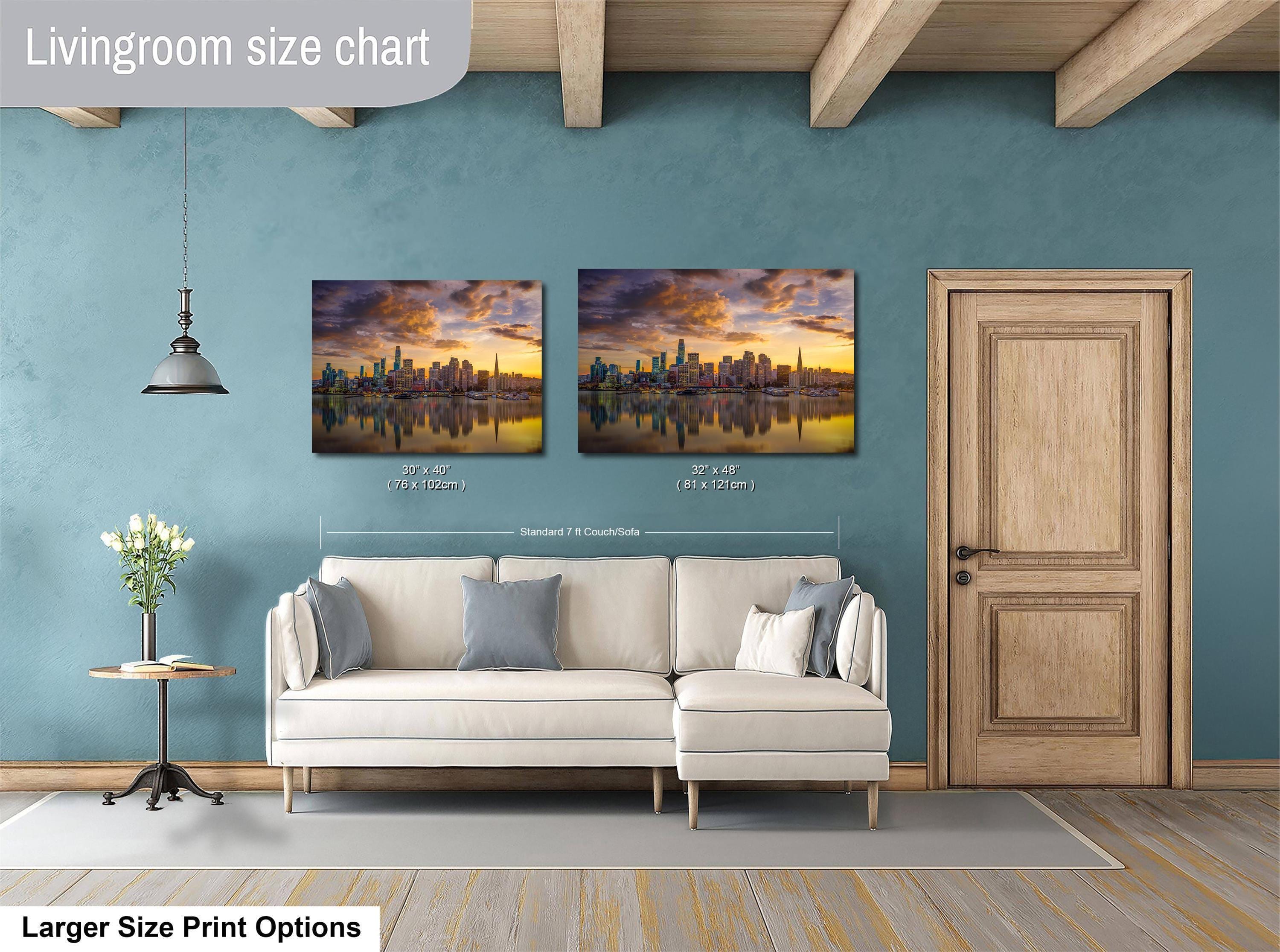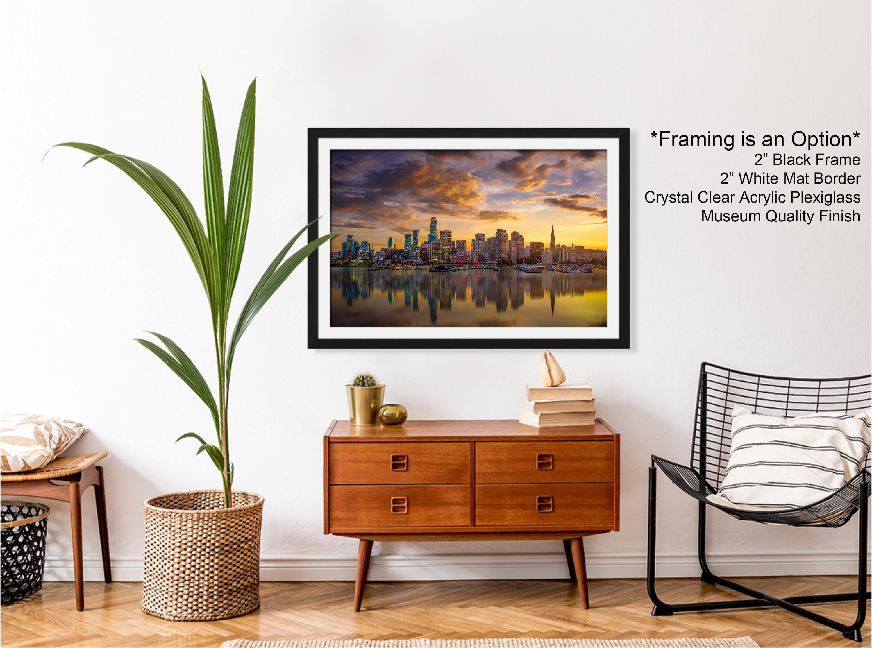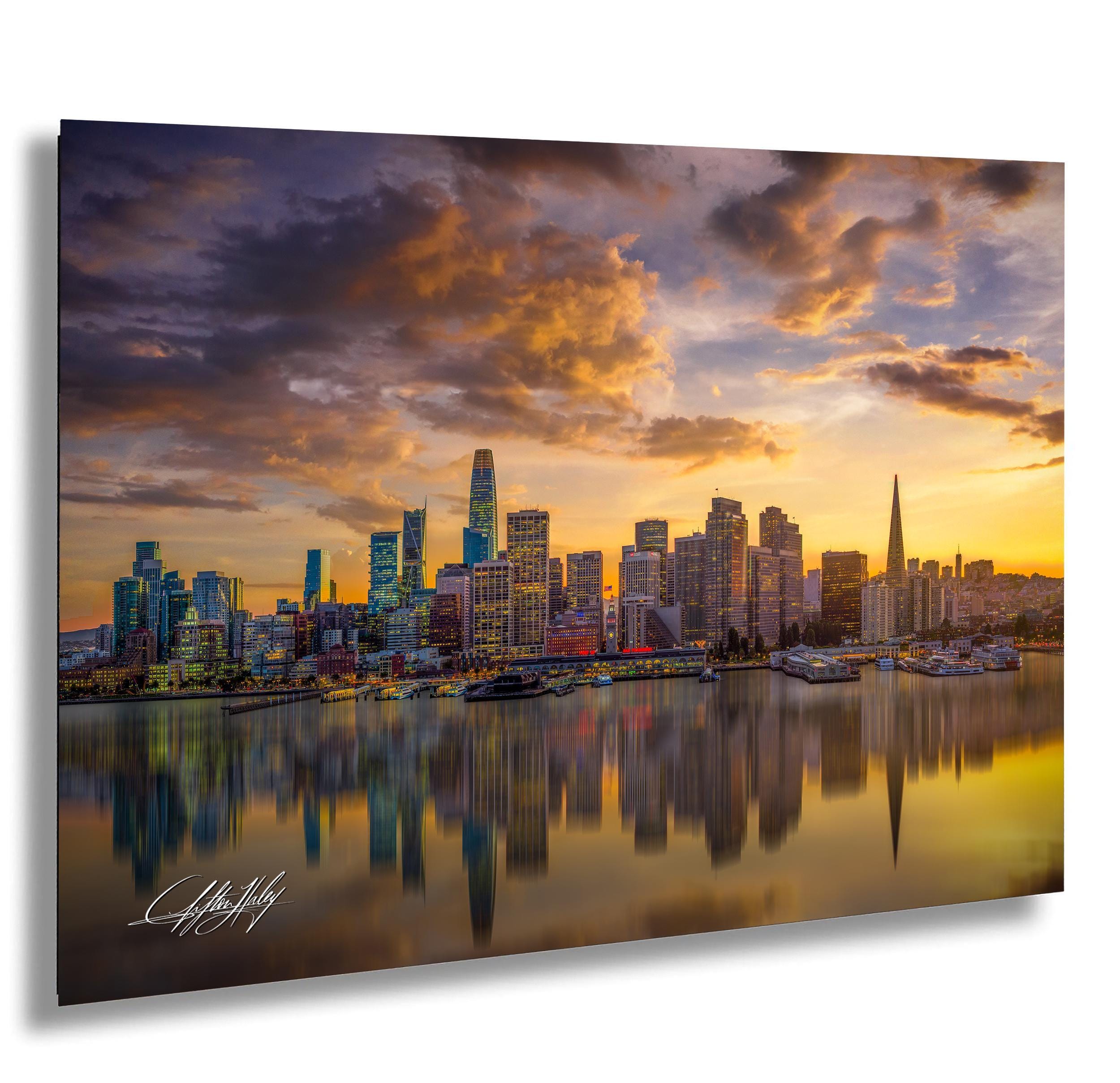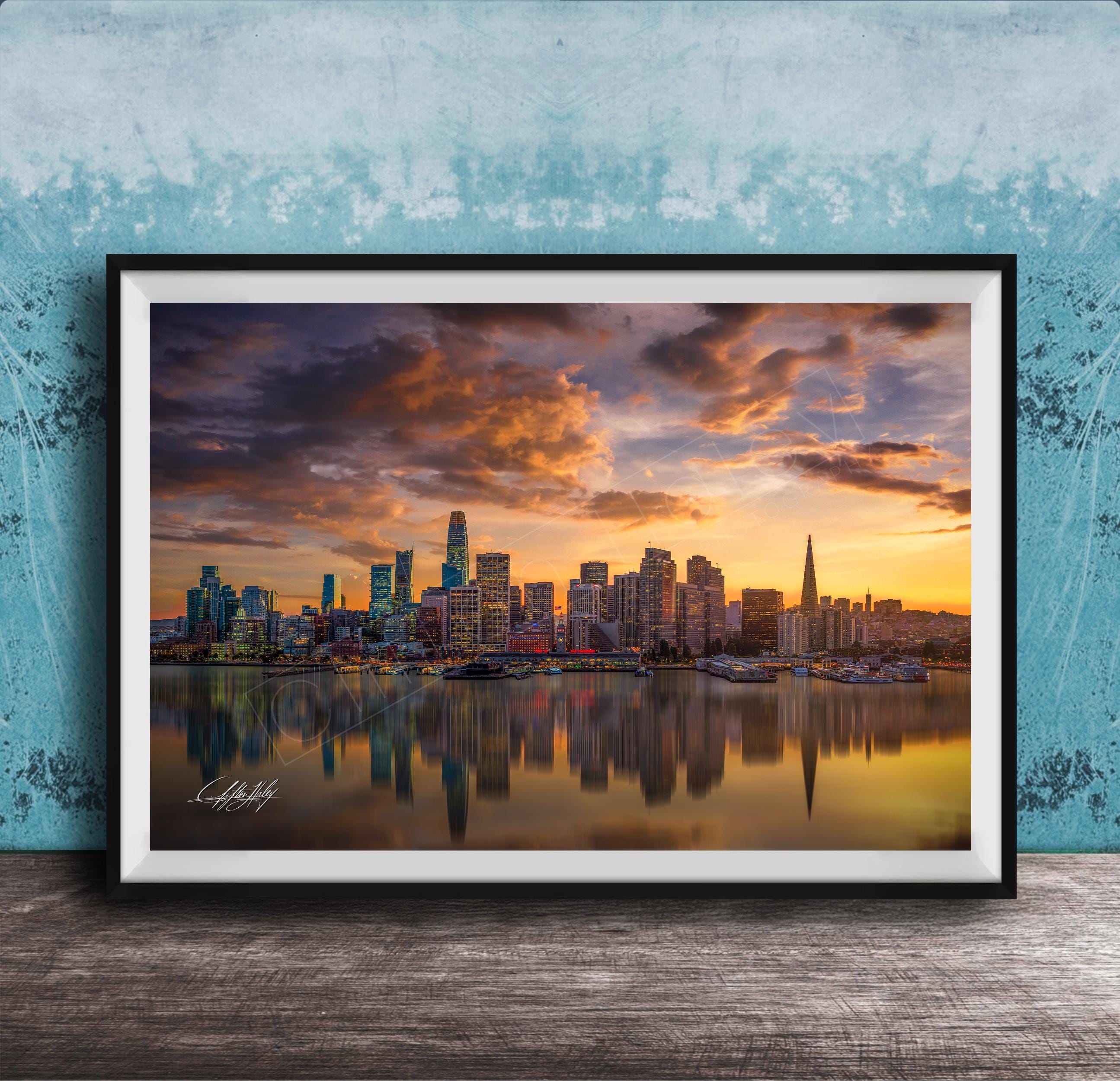 Experience the magic of the Bay Area home decor with this exquisite portrayal of the Port of San Francisco at golden hour. This made to order art captures the liquid gold skyline as it transforms the city into a glowing masterpiece. Perfect for those who cherish unique made to order pieces that bring the spirit of the city into your living space.