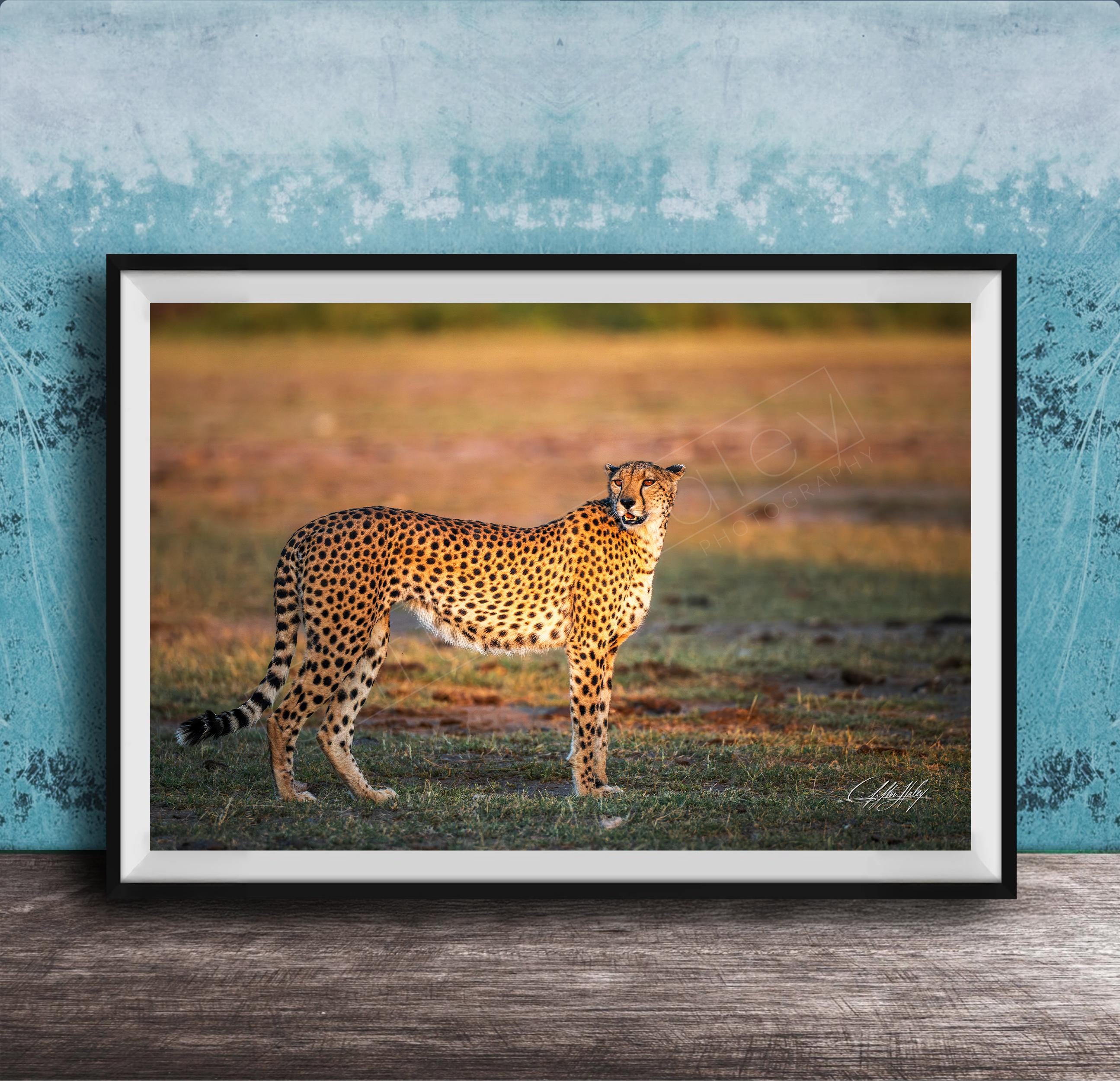 This cheetah wild animal art print brings safari art and vibrant home accent to your space, inspired by Kenya’s breathtaking wildlife scenes.