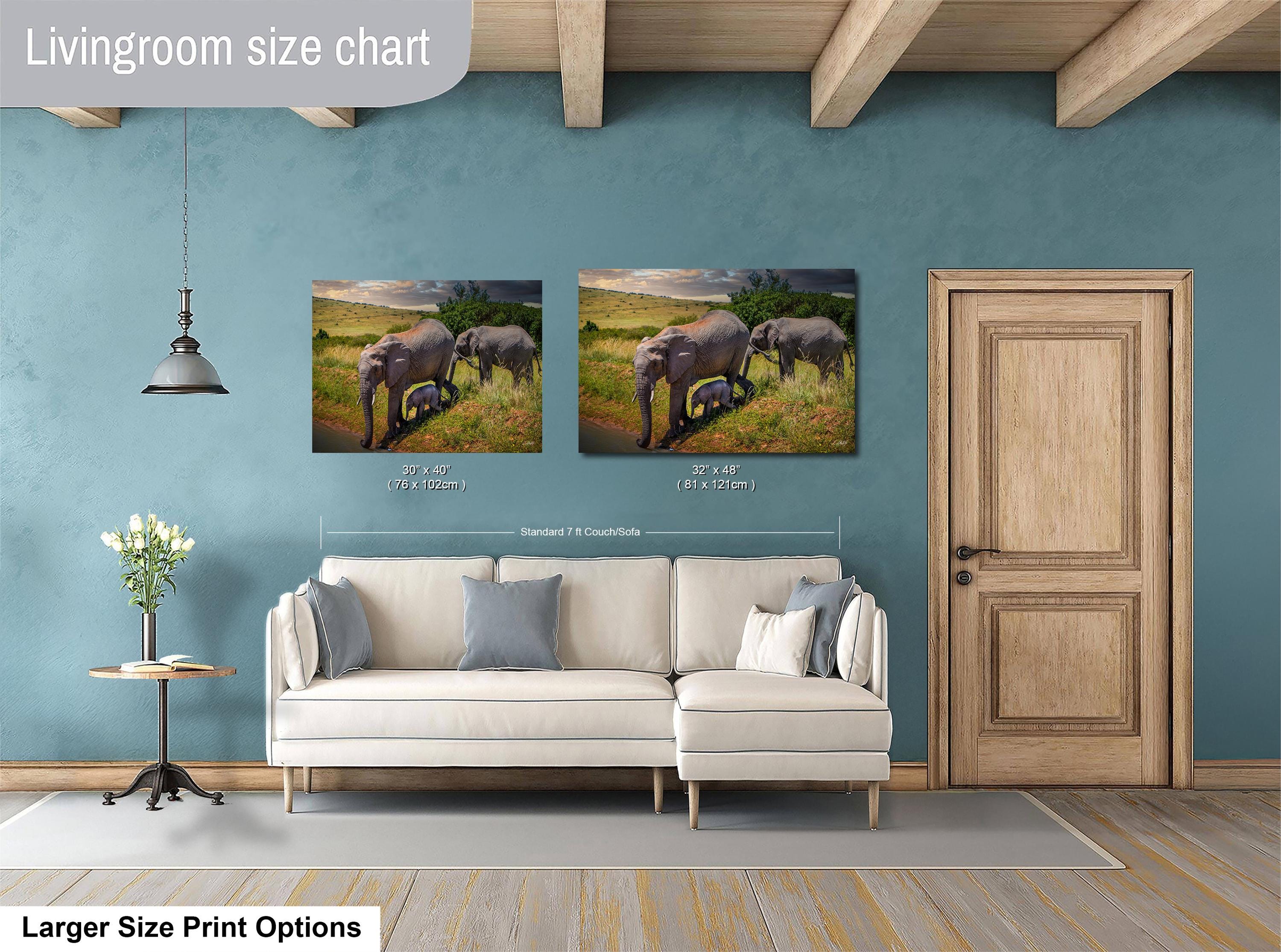 Immerse yourself in a stunning boho safari decor piece that reflects Maasai culture art and the majesty of Ndovu elephants. The golden light print evokes the magic of a sunset safari scene, perfect as a mother elephant gift or a heartfelt tribute to wildlife.