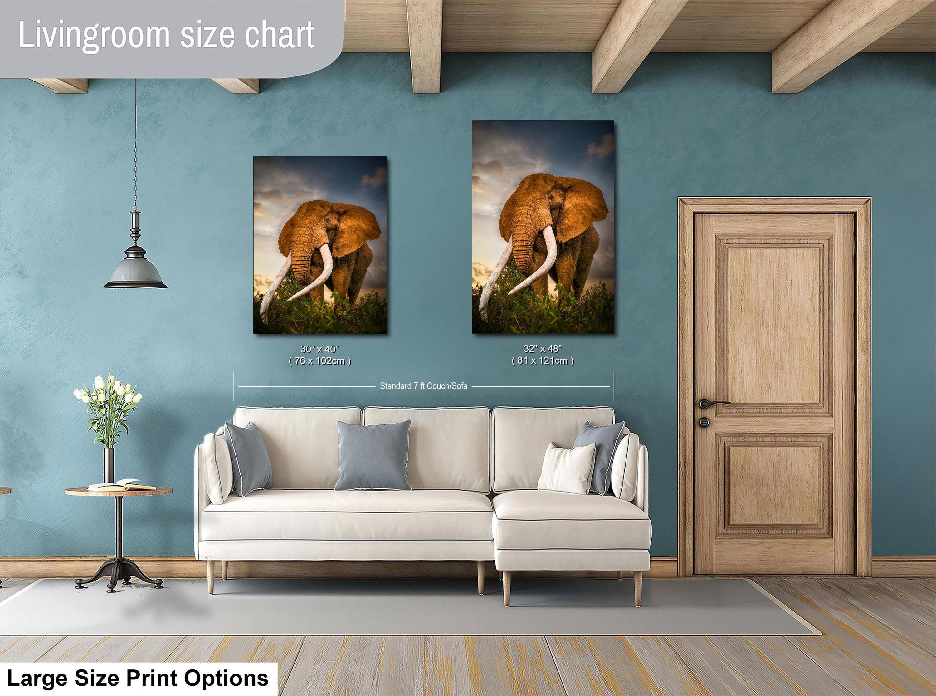 This exclusive wildlife canvas print brings the grandeur of Africa’s legendary elephants into your home, perfect for lovers of maximalist boho art and safari-inspired interiors. Each piece is made to order, ensuring a unique and personal touch that celebrates nature’s resilience and beauty.