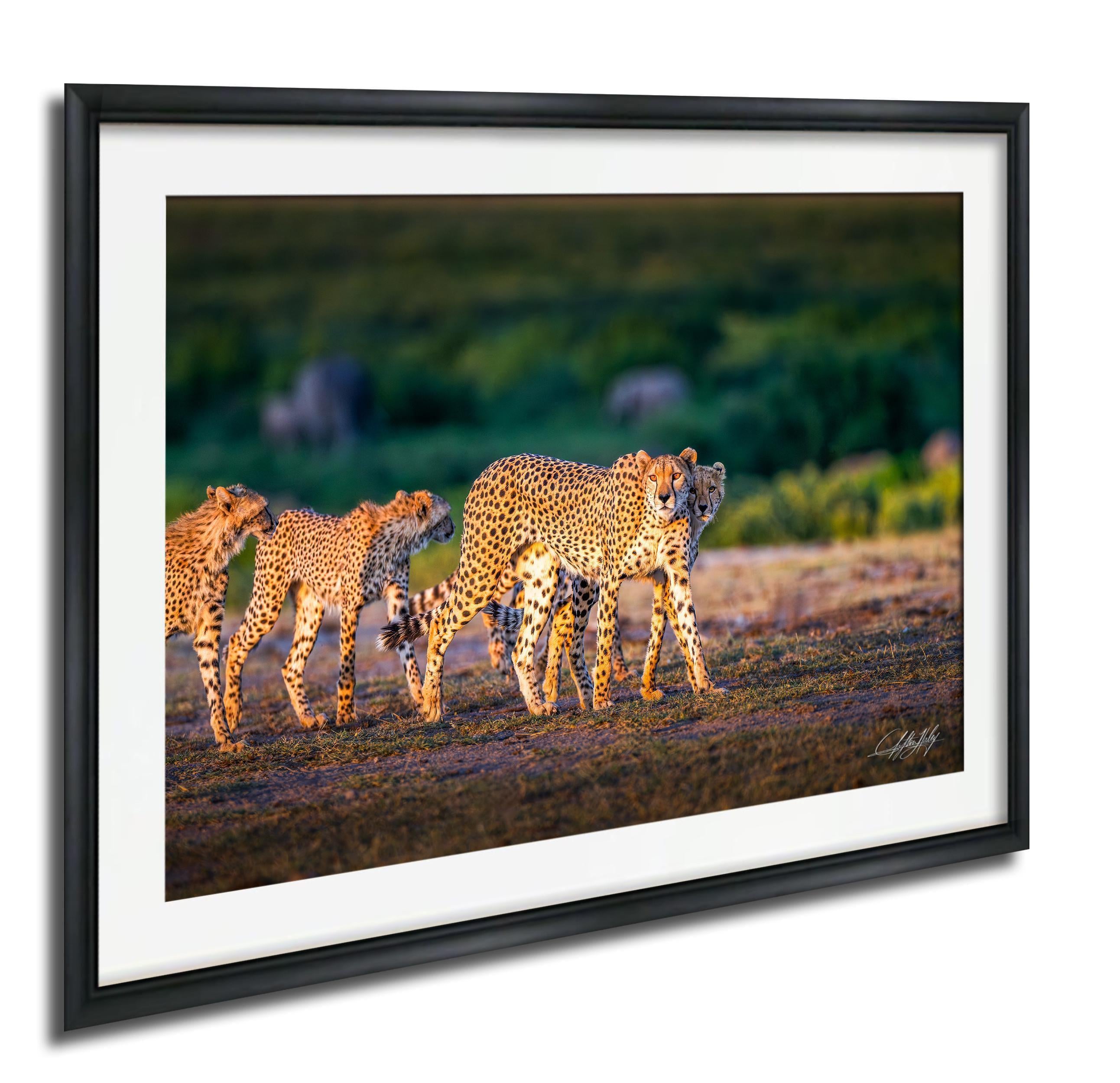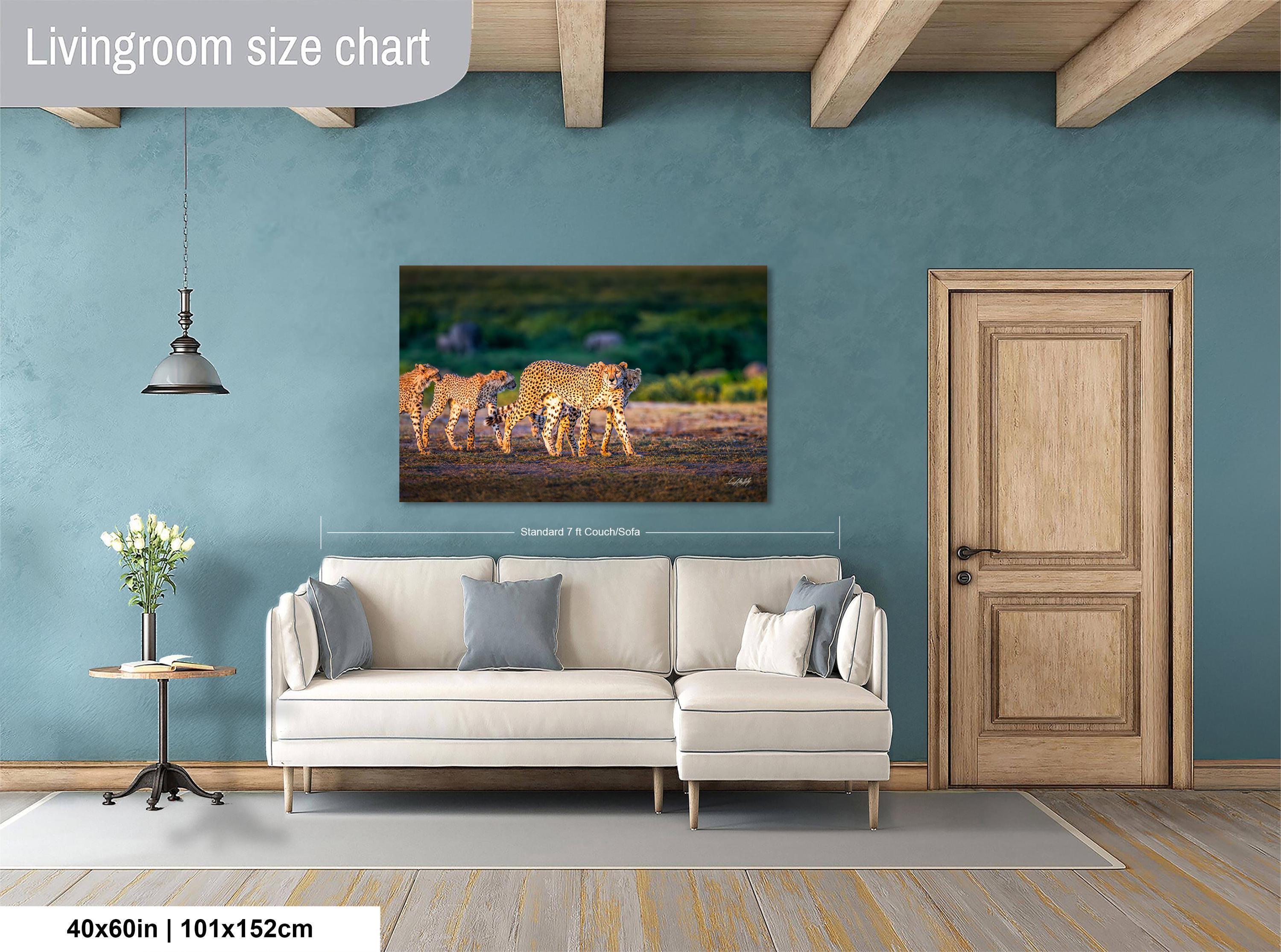 Witness the majesty of the cheetah family captured in this luxury animal print, a perfect boho wall decor piece that evokes the spirit of the African savanna. Inspired by the Maasai Mara, this artwork celebrates the swift elegance and protective bond of Kenya’s iconic predators.