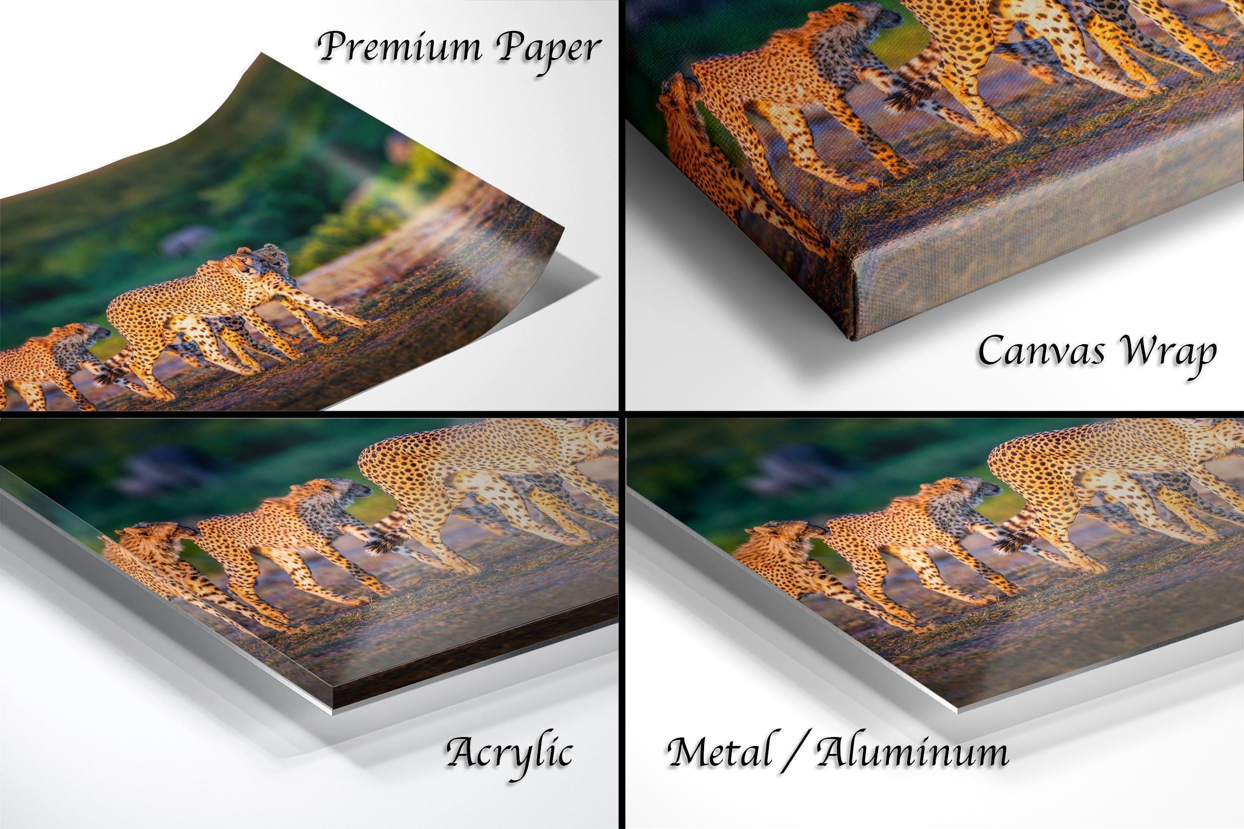 This cheetah wild animal art print brings safari art and vibrant home accent to your space, inspired by Kenya’s breathtaking wildlife scenes.