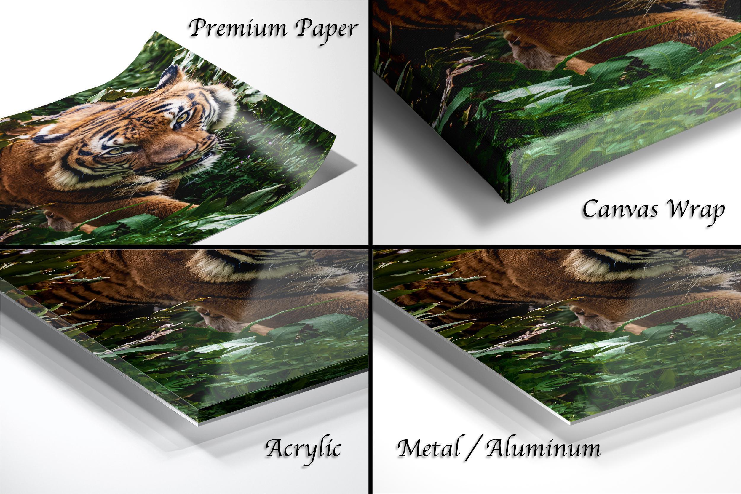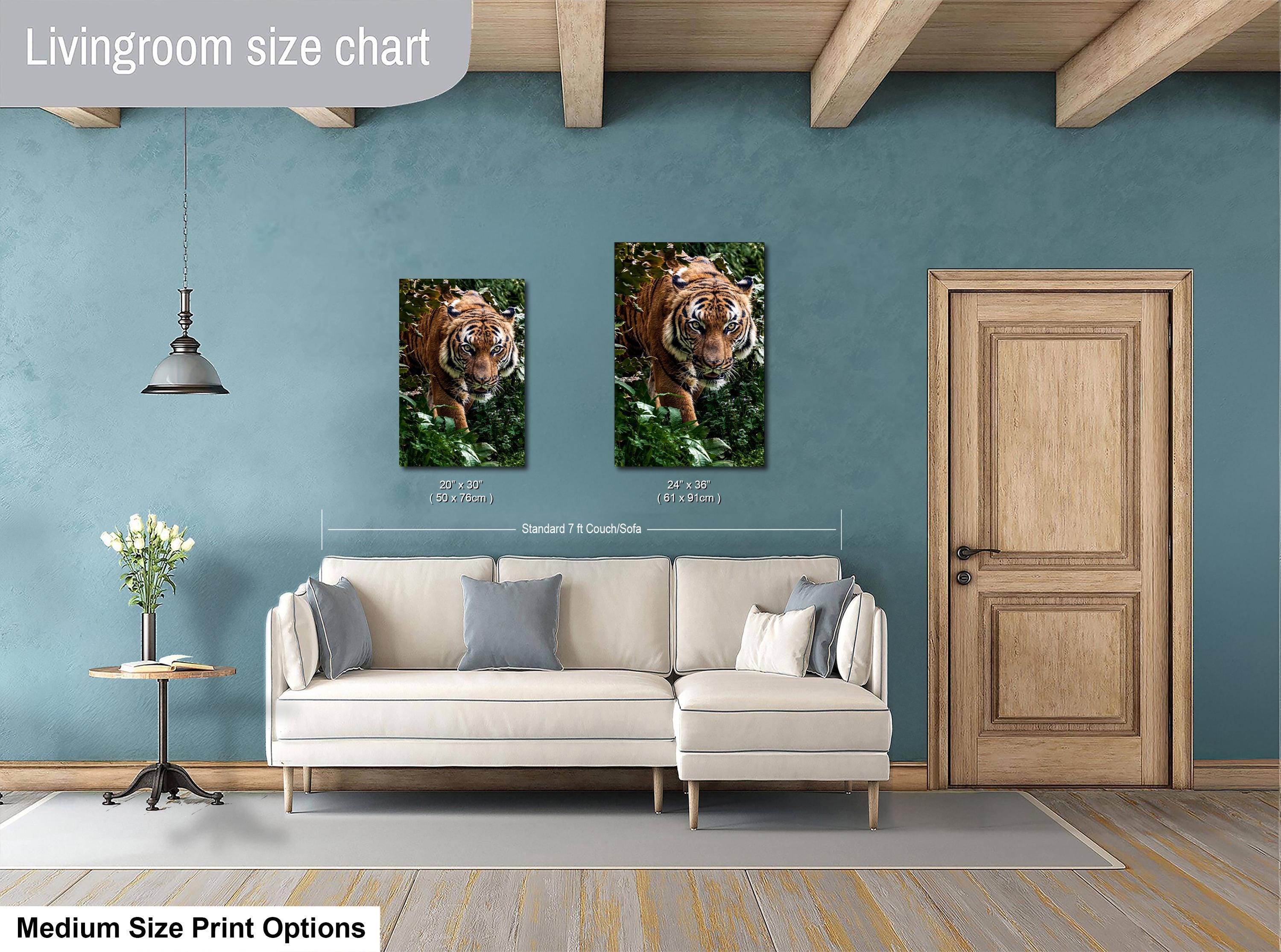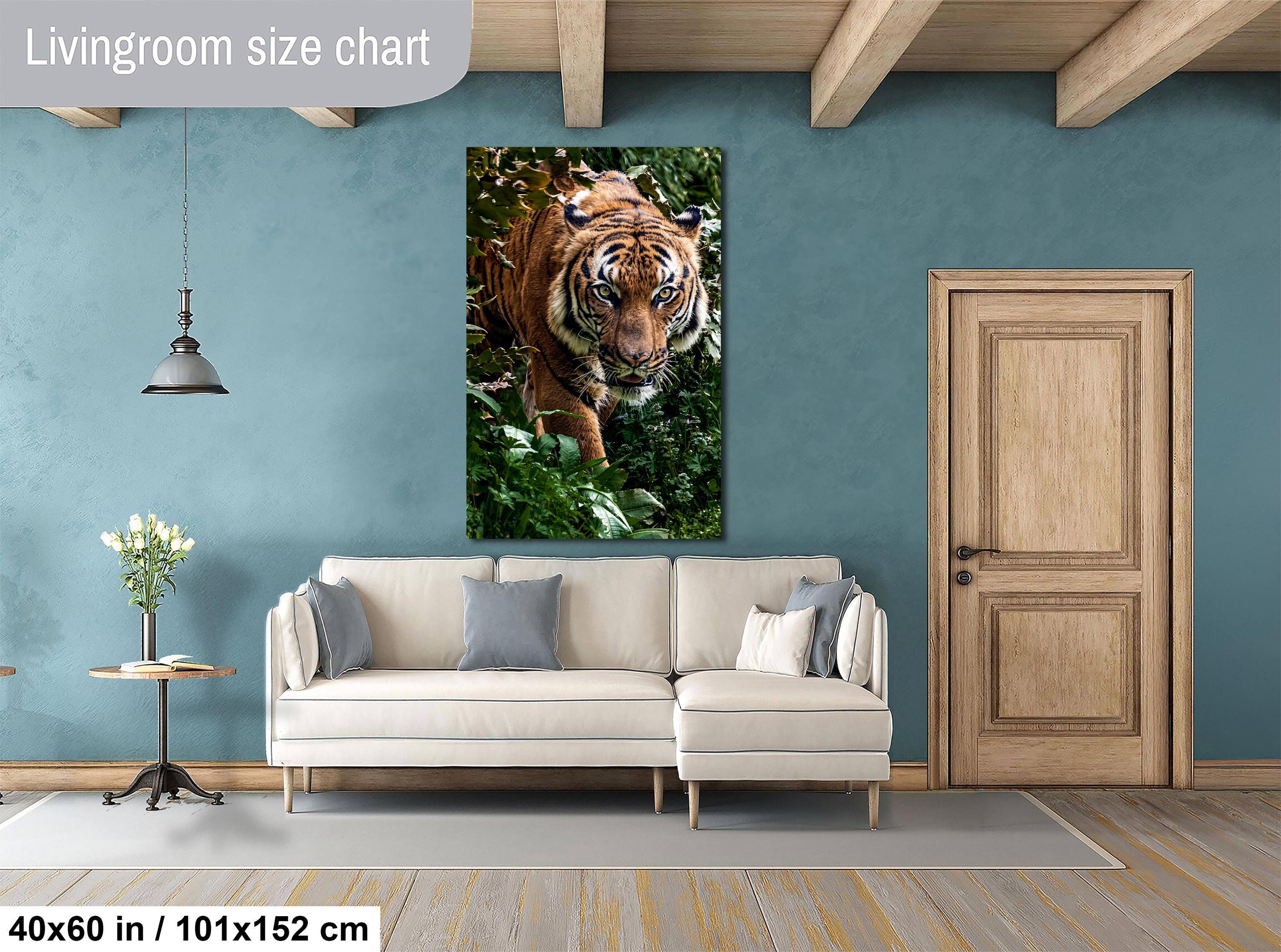 Immerse yourself in the vibrant world of tropical decor with this stunning Sumatra tiger print, where the bold orange stripes of the majestic tiger come alive against a lush jungle backdrop. This artist signed print captures the spirit of exotic animal decor, perfect for those who cherish nature lover presents or seek to add a boho tropical vibe to their space. Each piece is a celebration of wild beauty, crafted to bring a unique touch of bohemian jungle art into your home.
